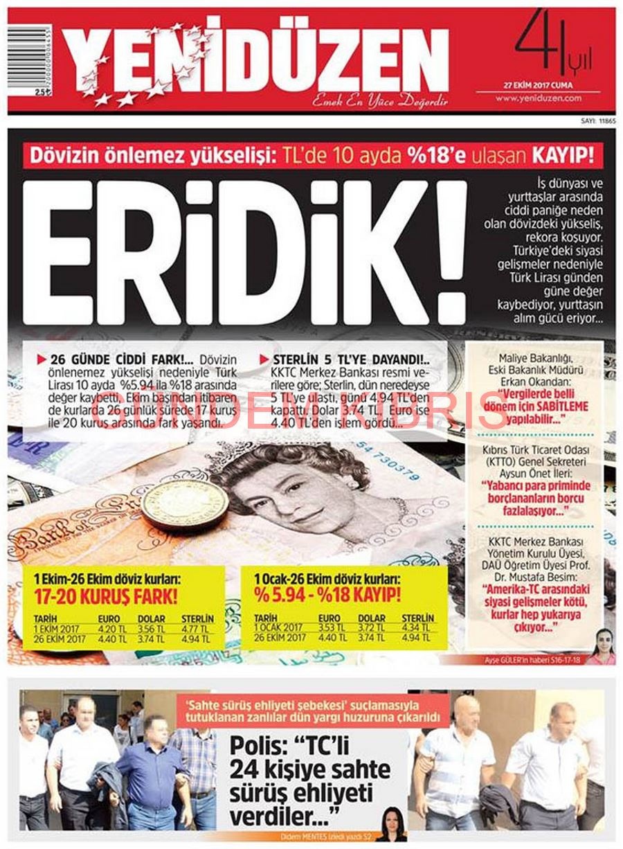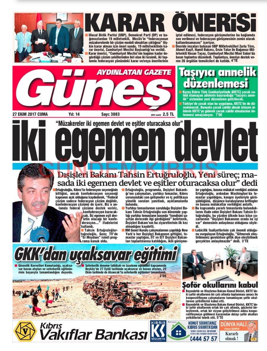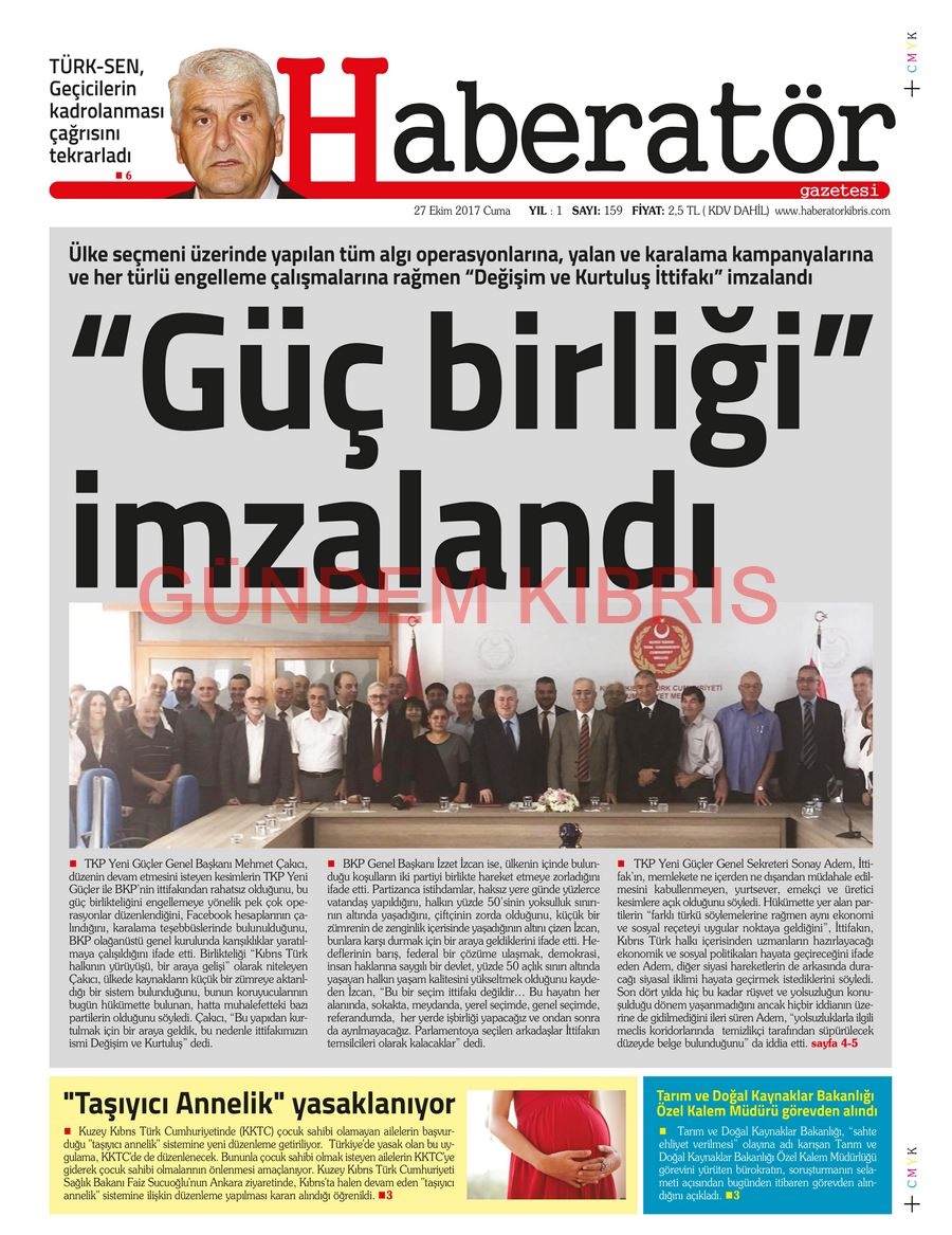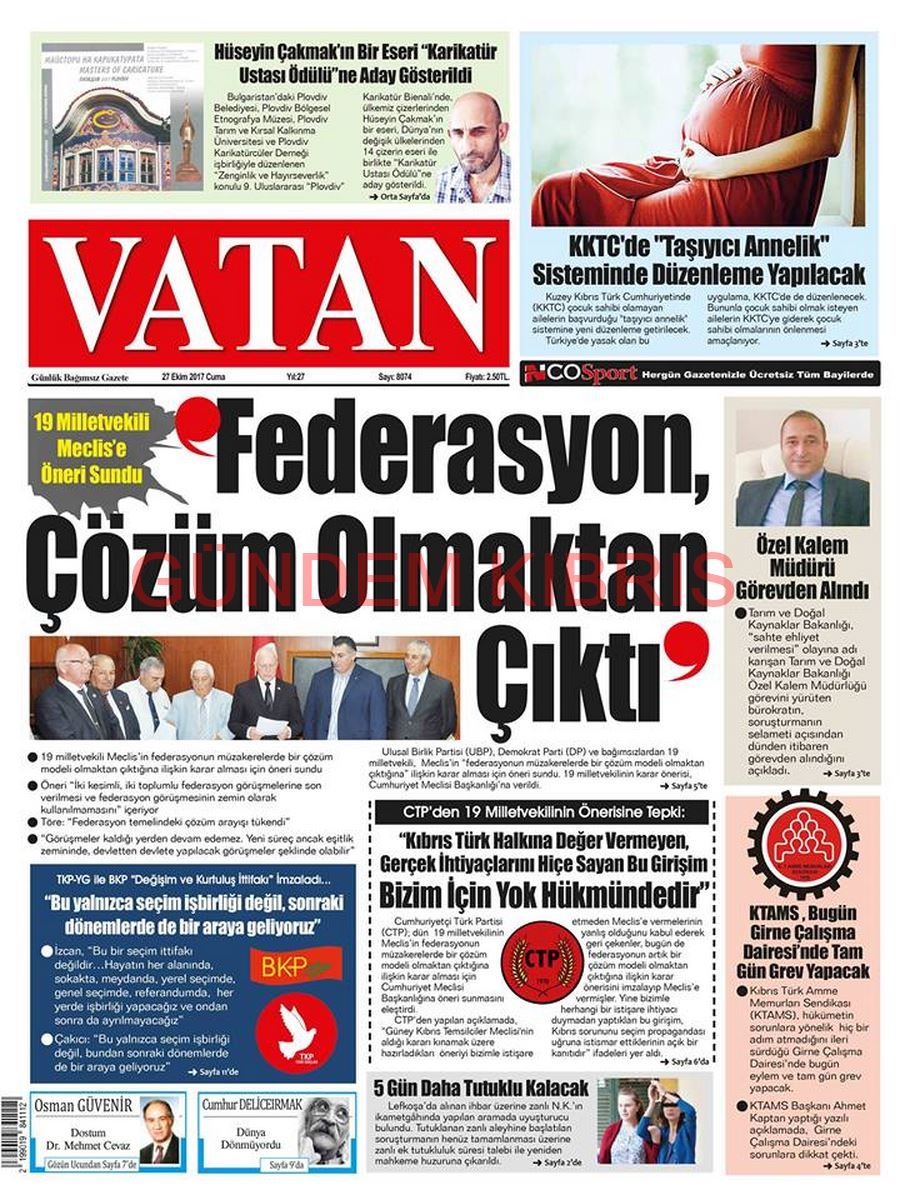 KKTC Gazete Manşetleri 27 Ekim 2017