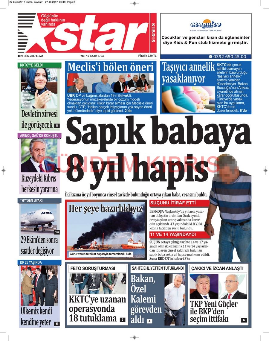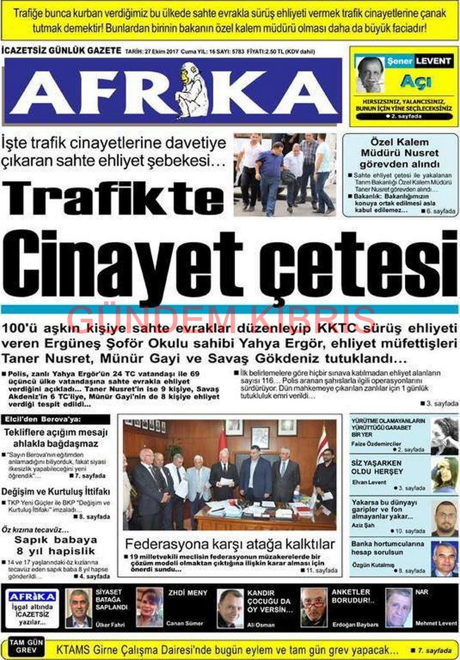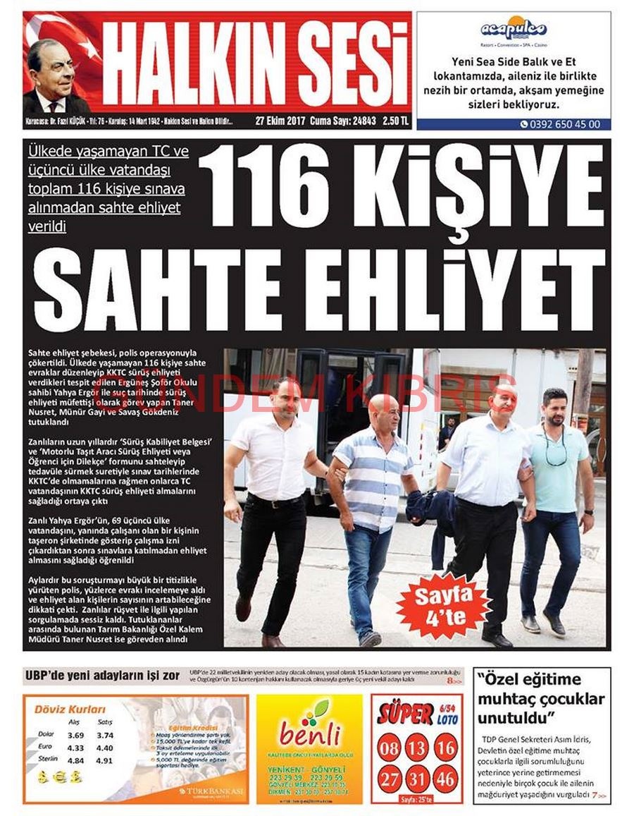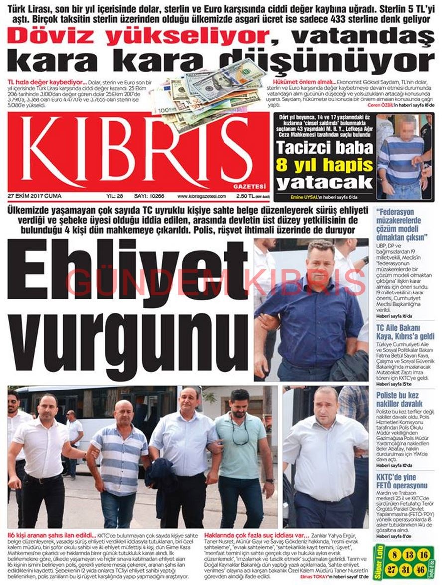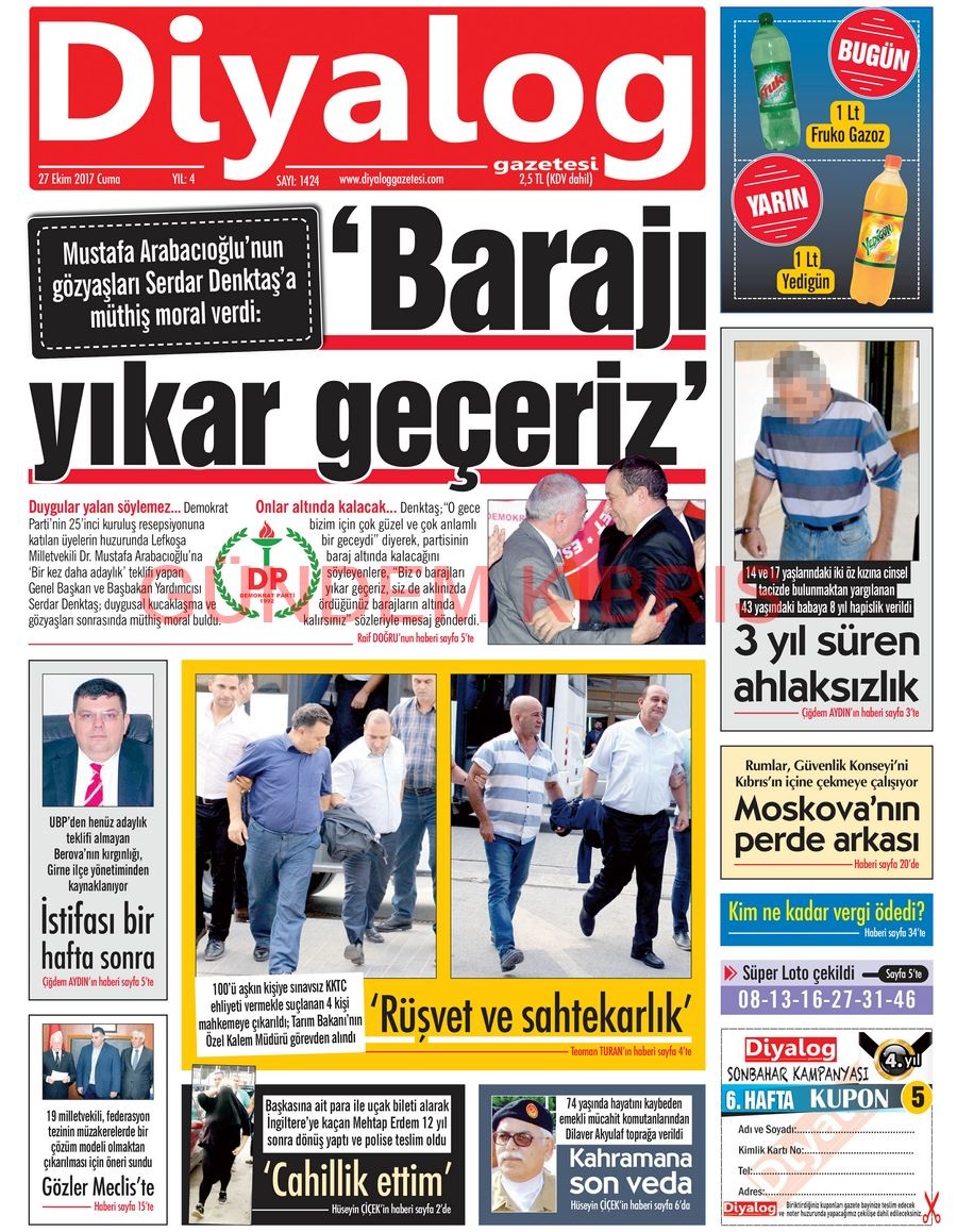 KKTC Gazete Manşetleri 27 Ekim 2017