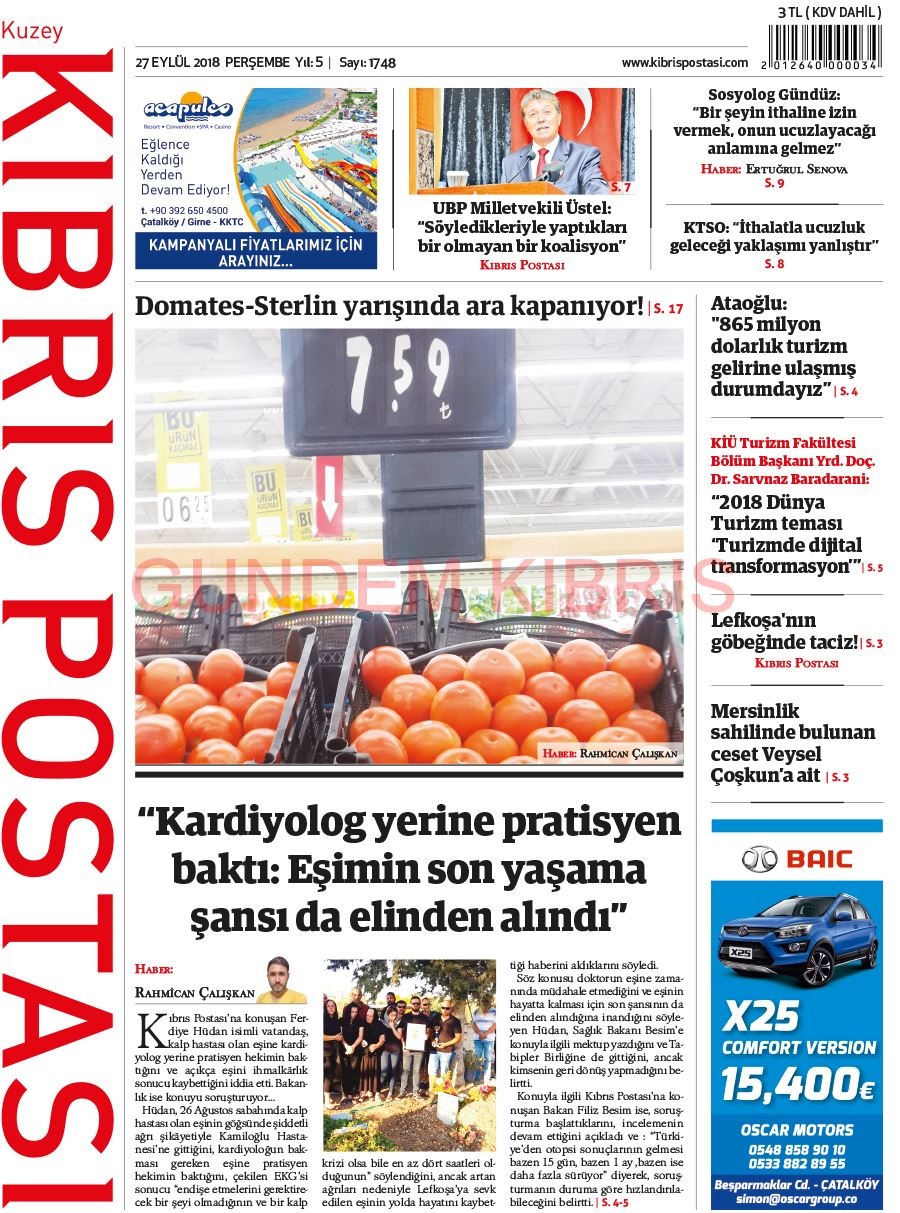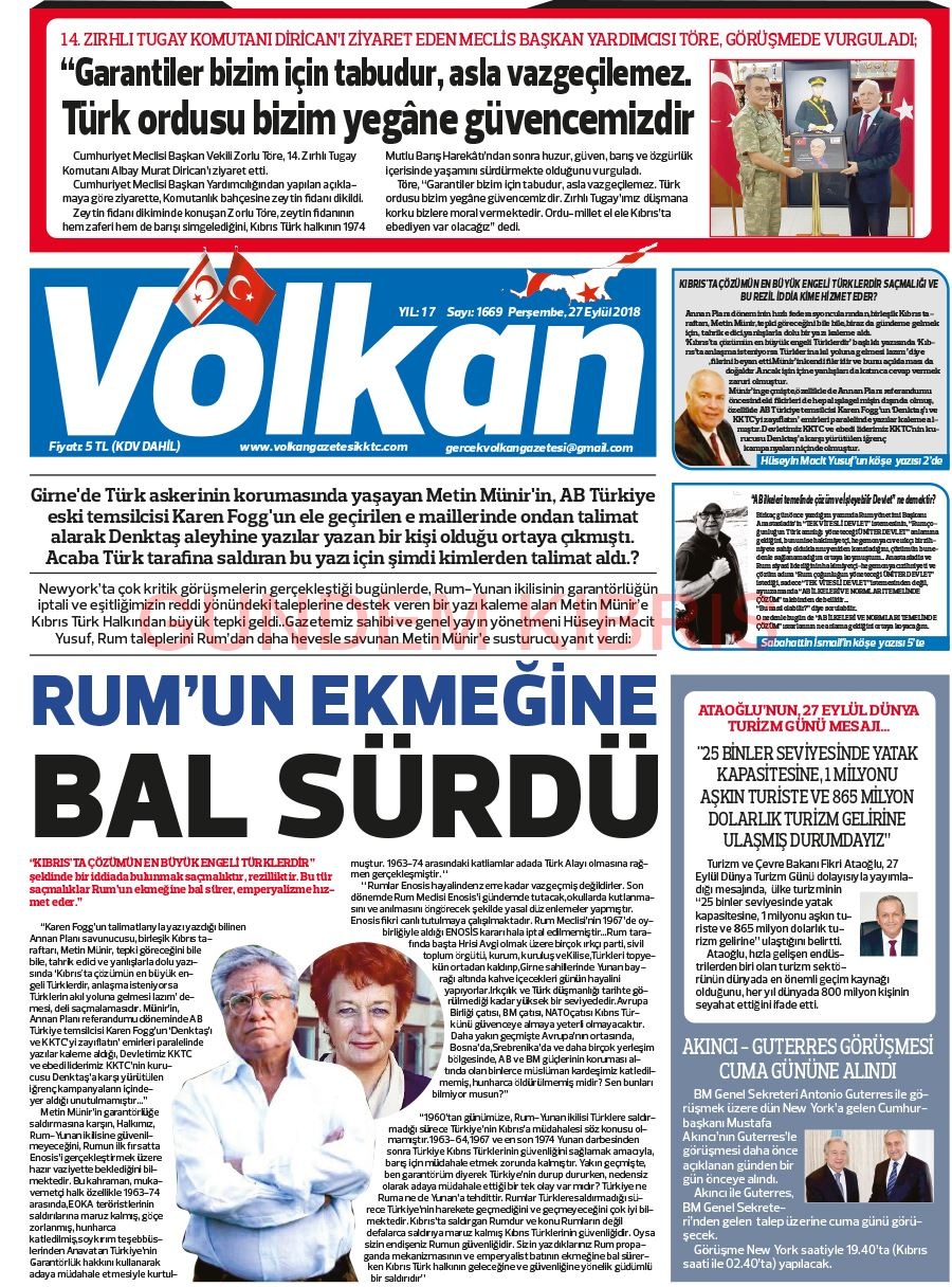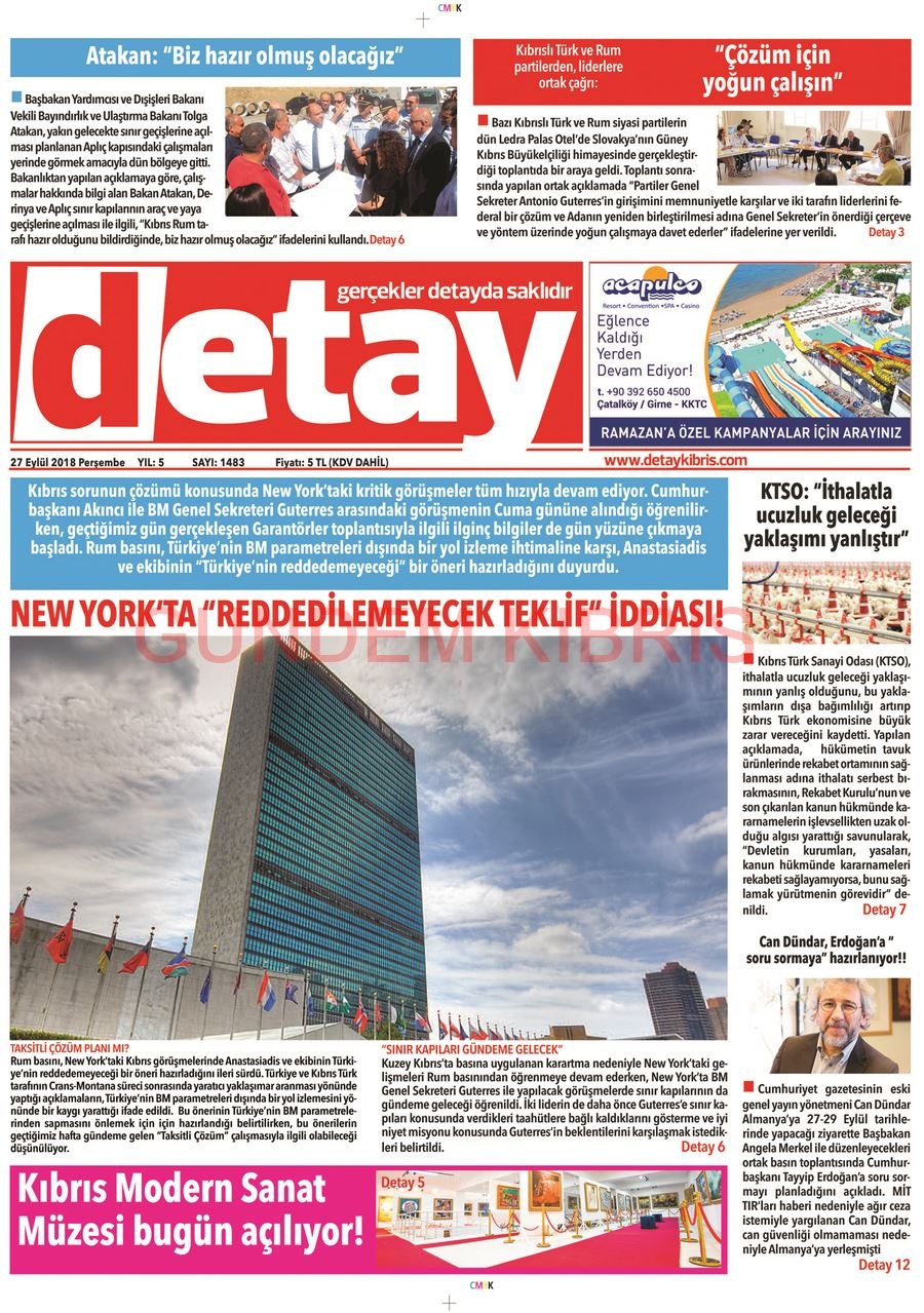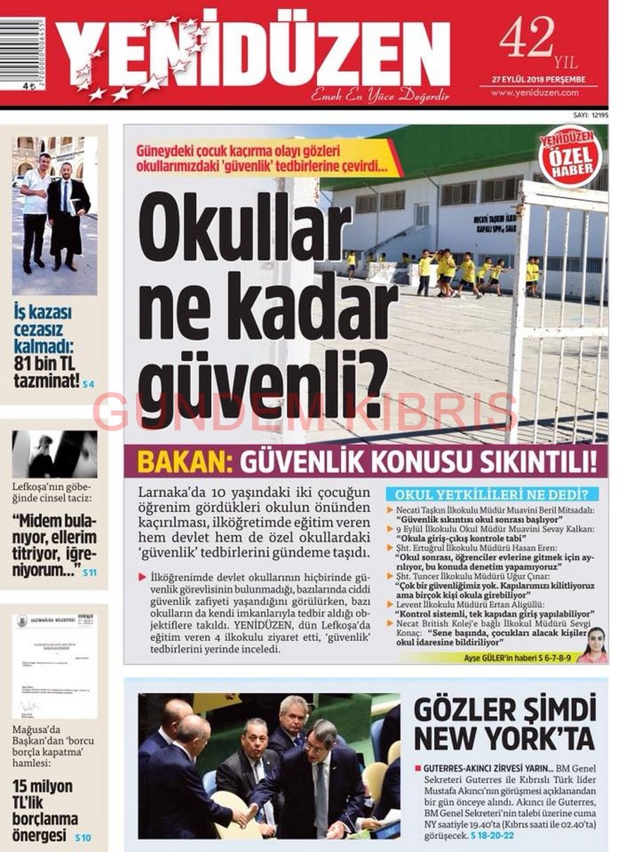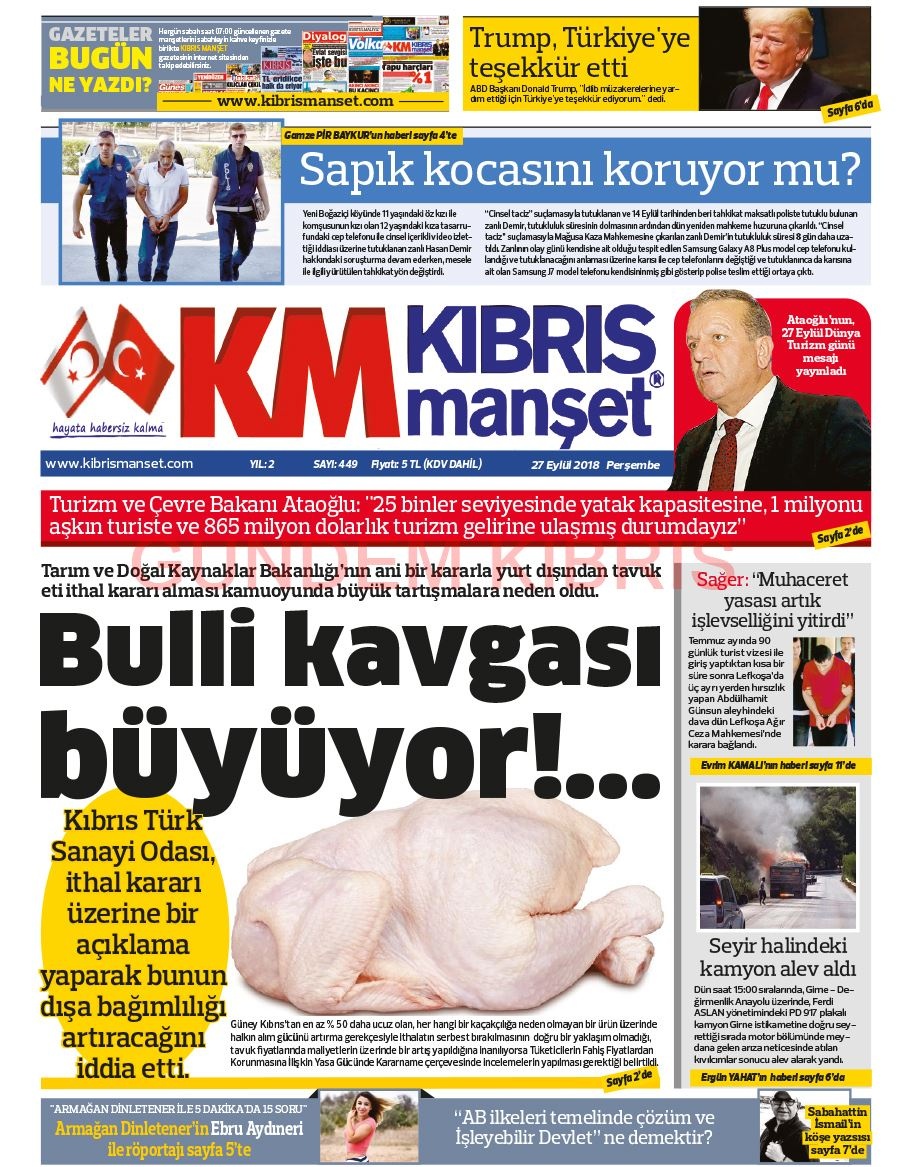 KKTC Gazete Manşetleri 27 Eylül 2018