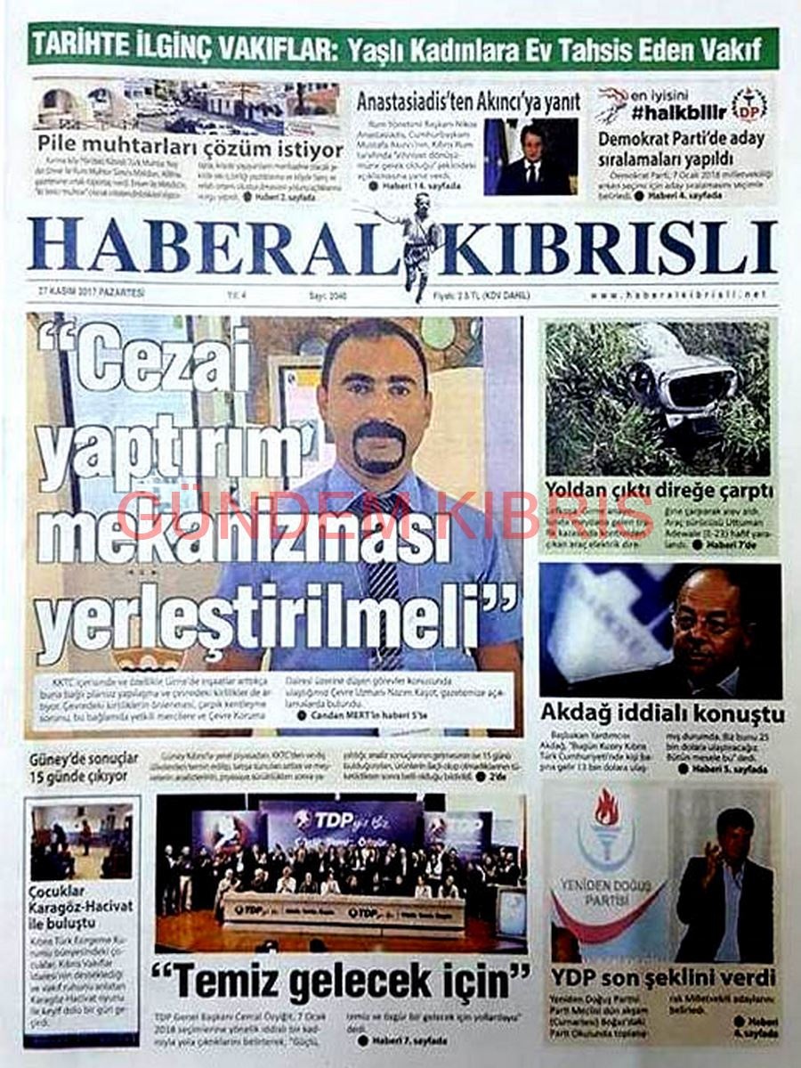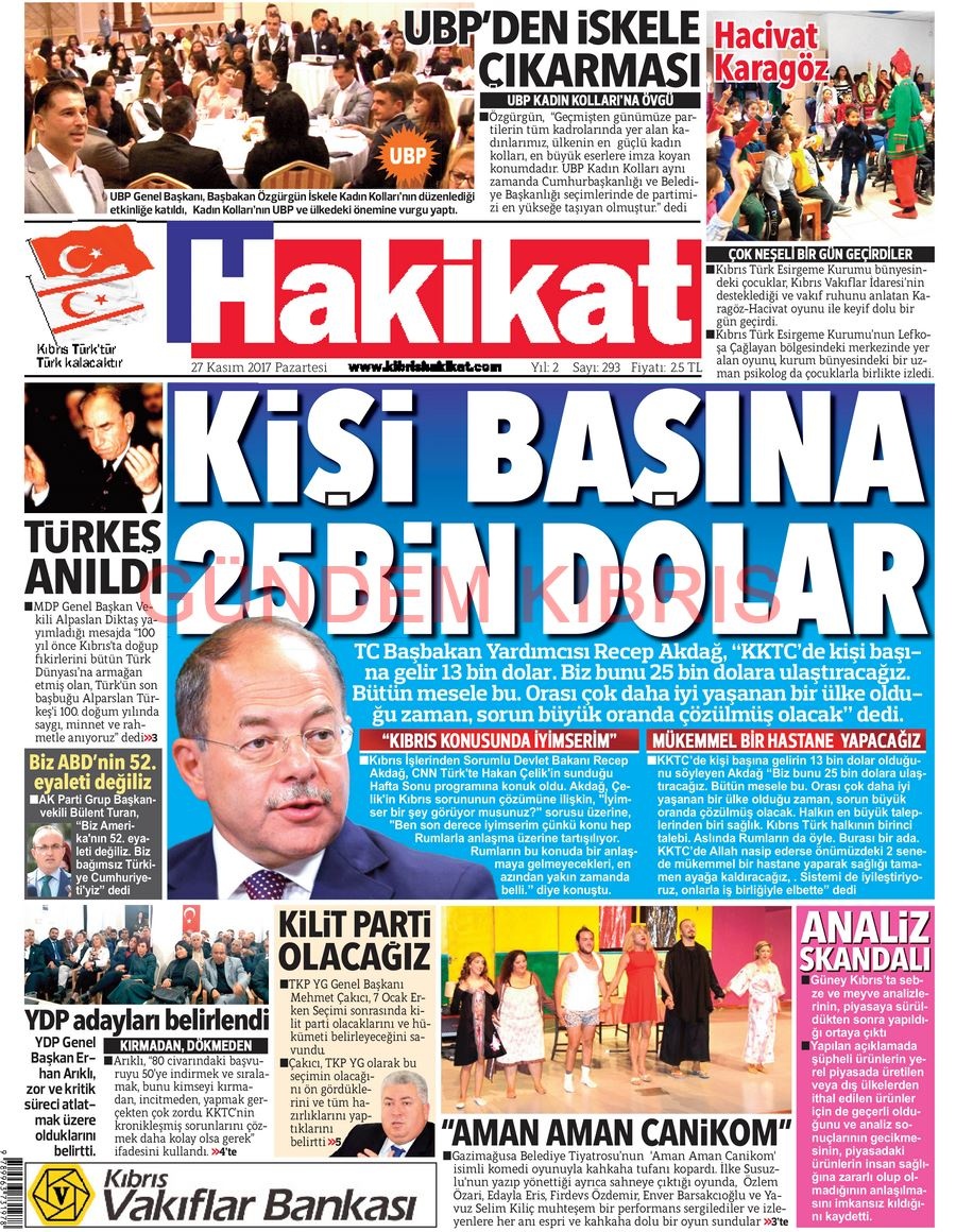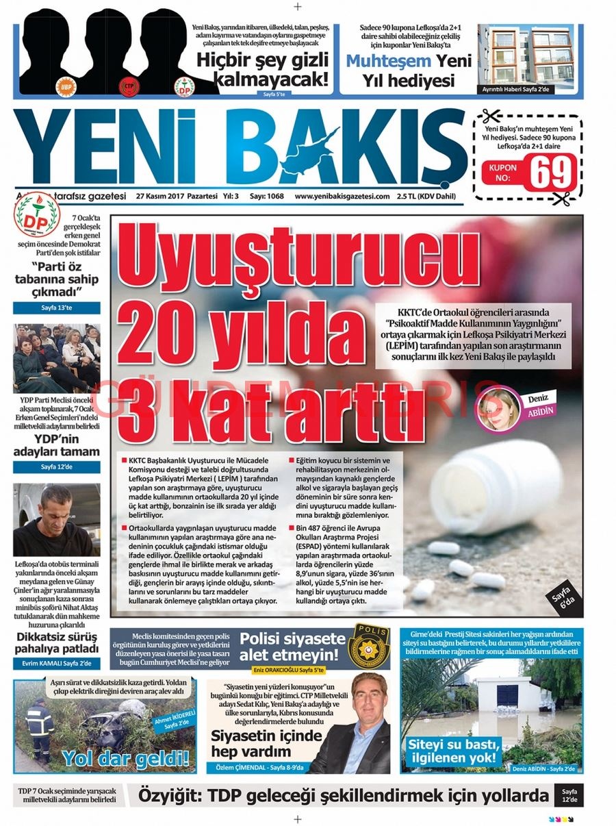 KKTC Gazete Manşetleri 27 Kasım 2017
