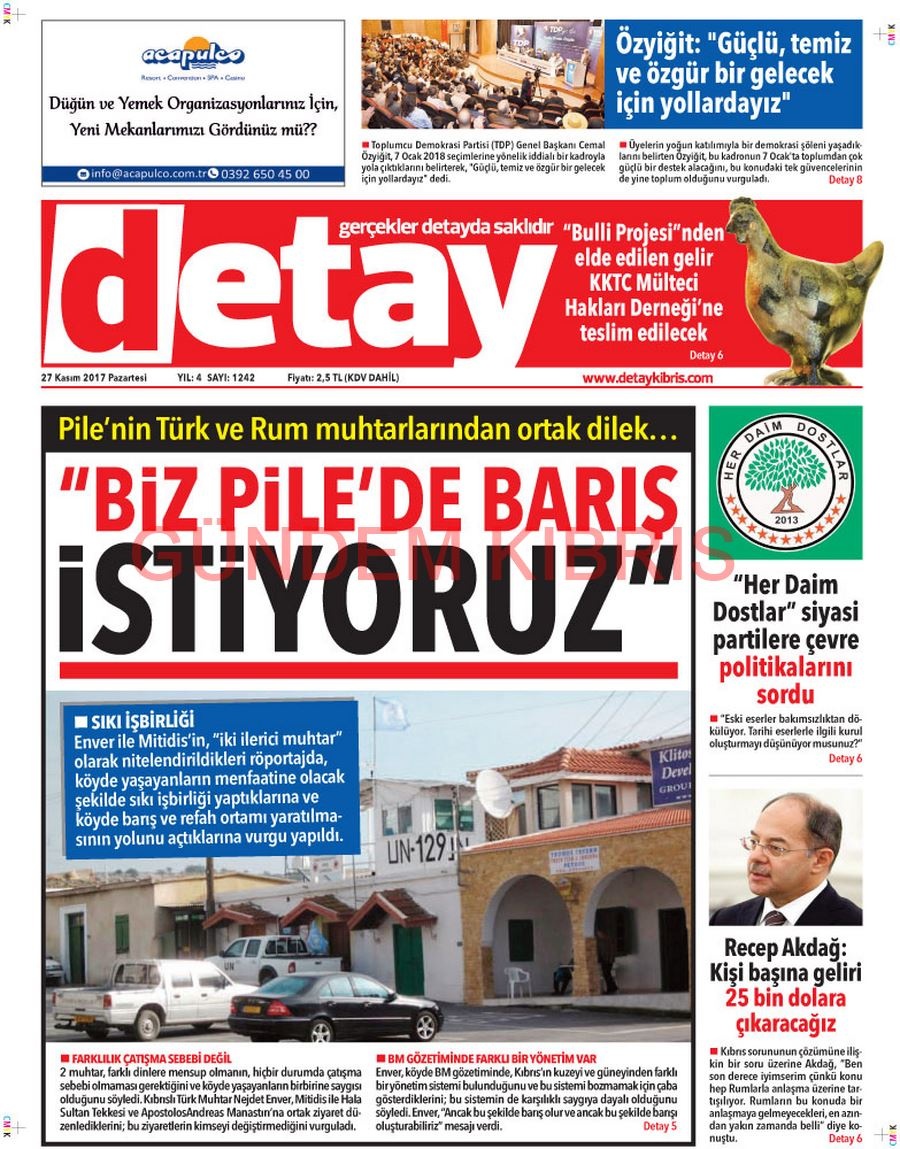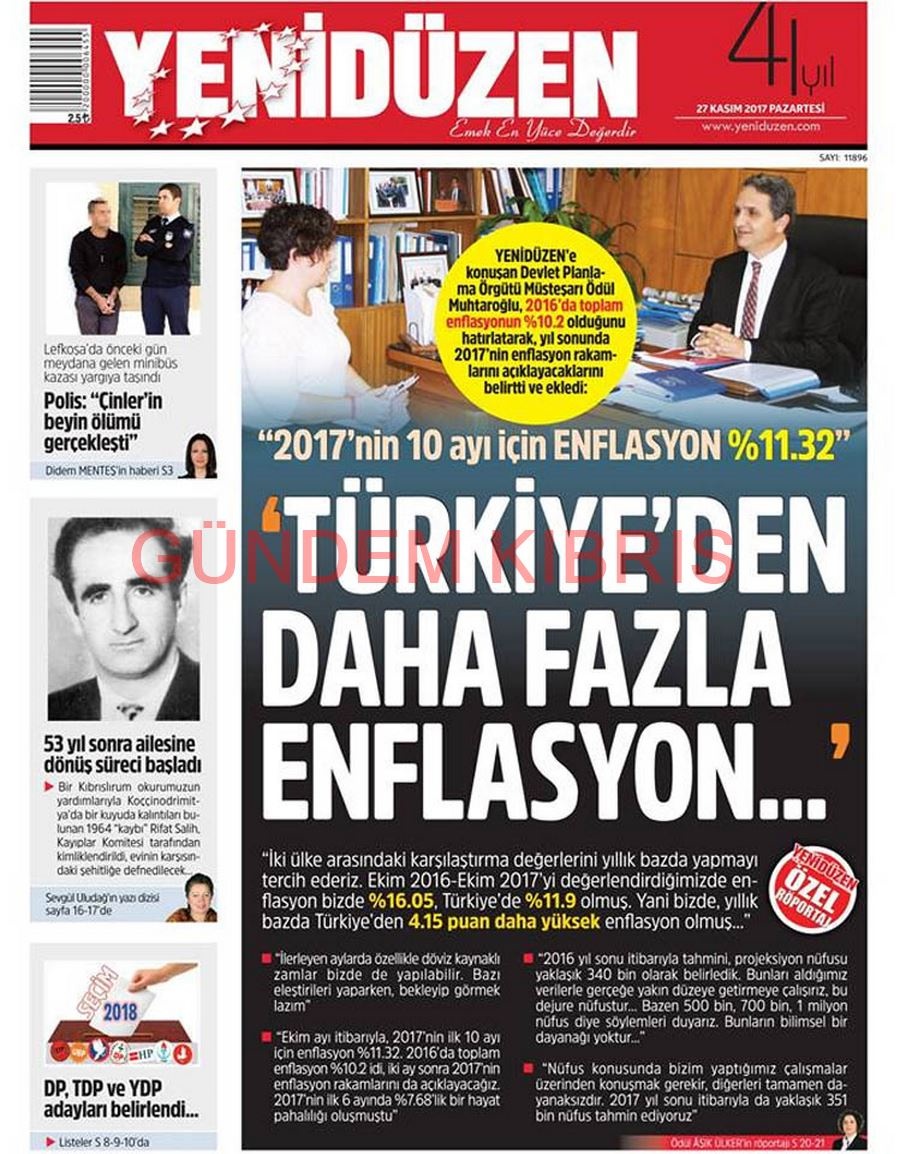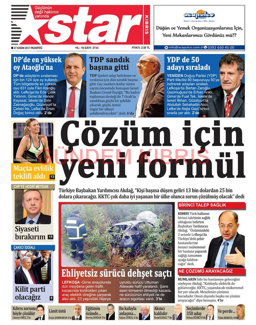 KKTC Gazete Manşetleri 27 Kasım 2017