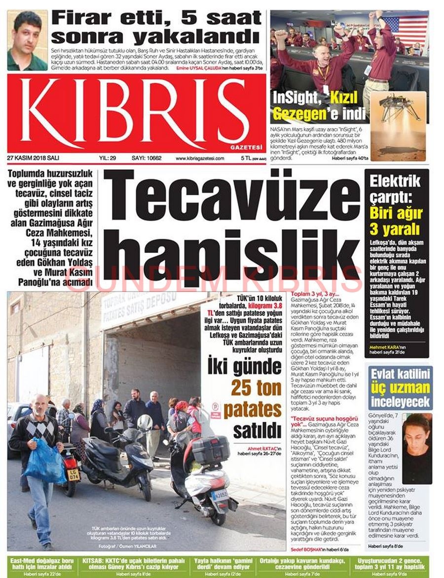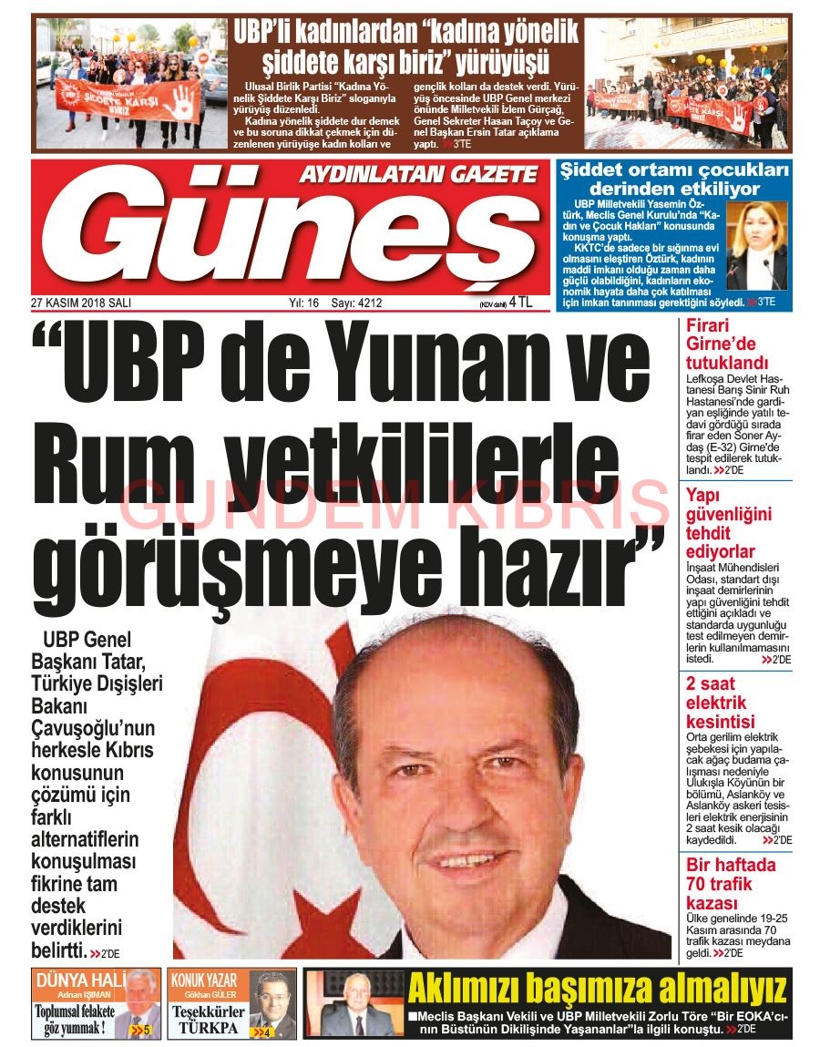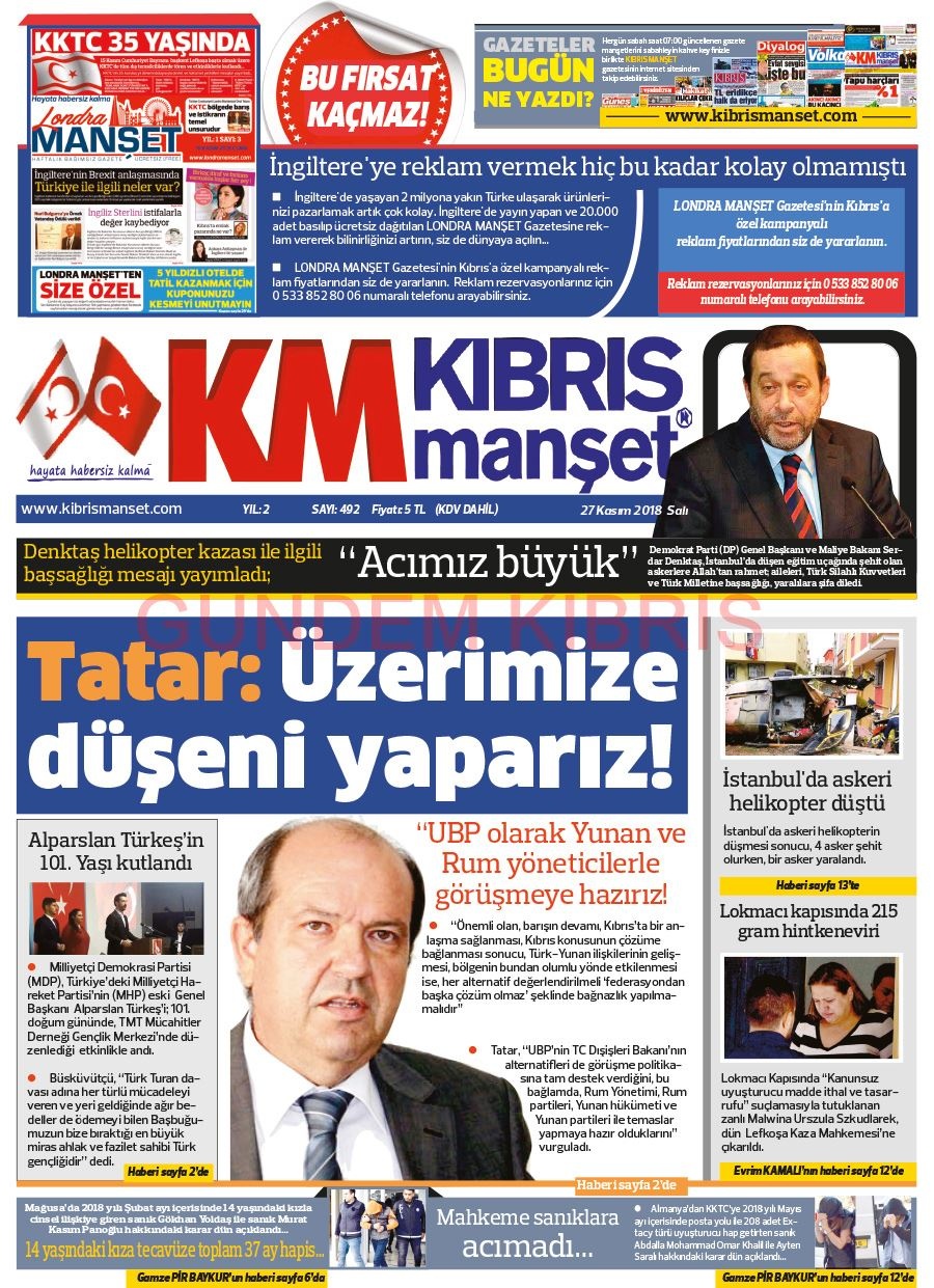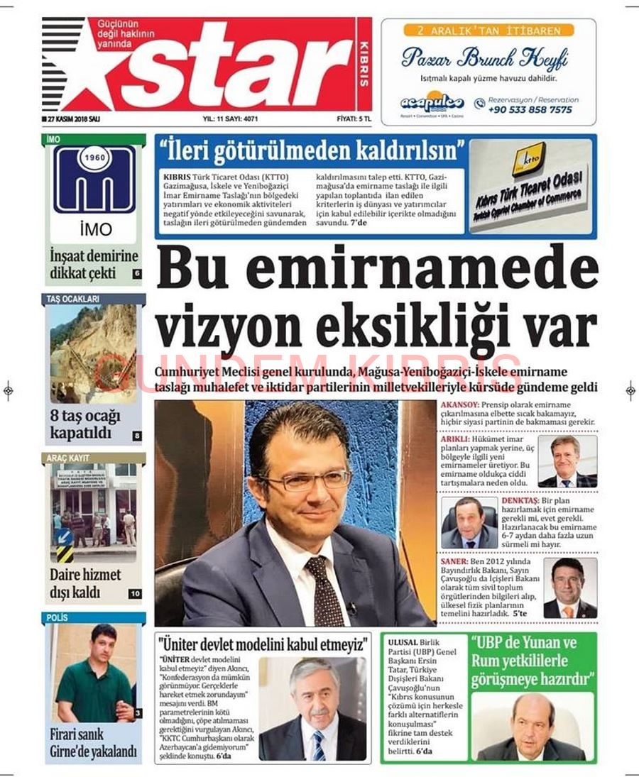 KKTC Gazete Manşetleri 27 Kasım 2018