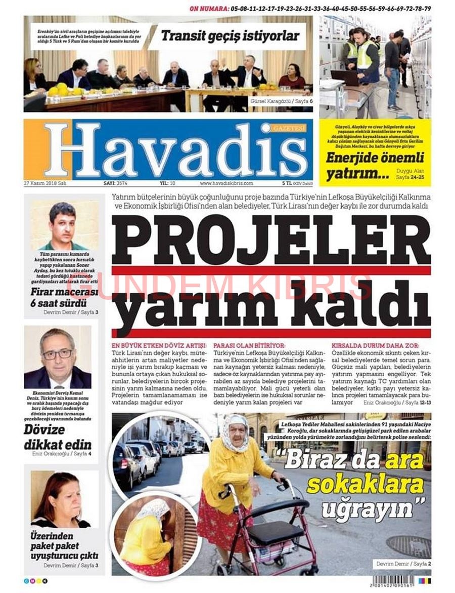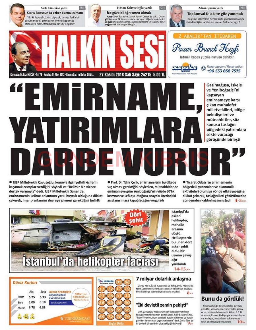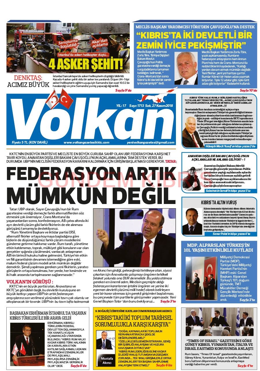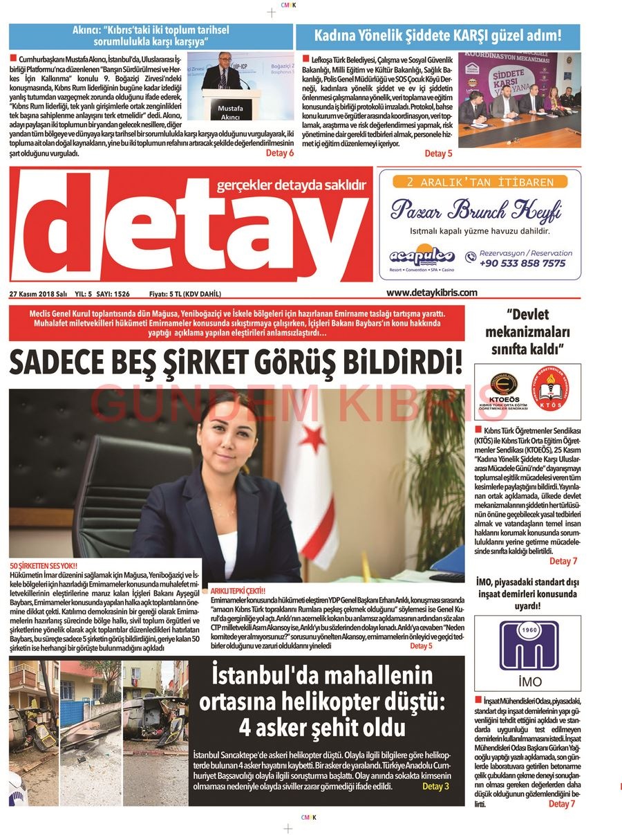 KKTC Gazete Manşetleri 27 Kasım 2018