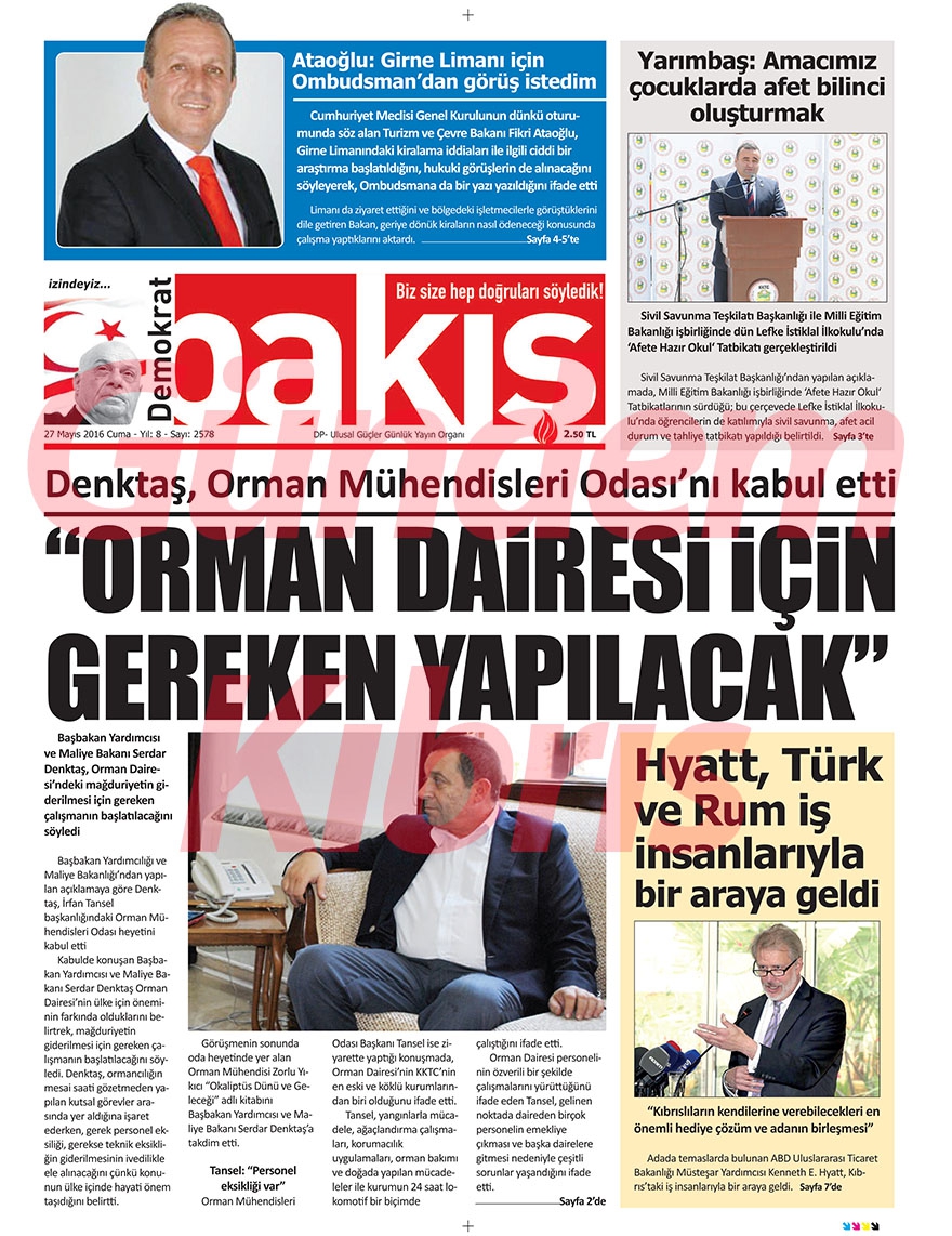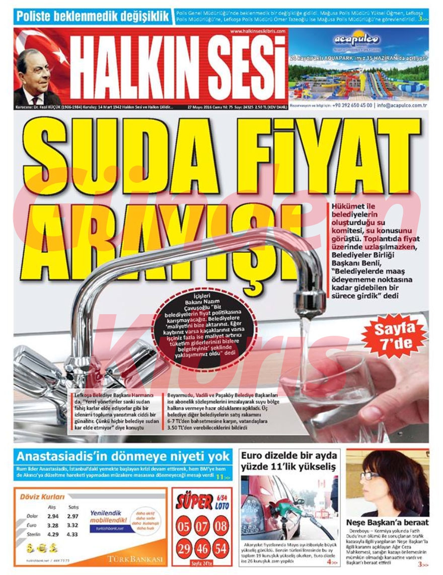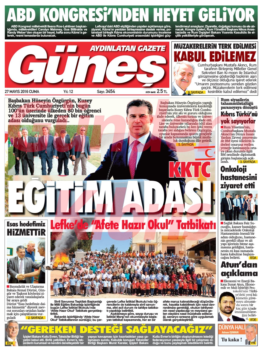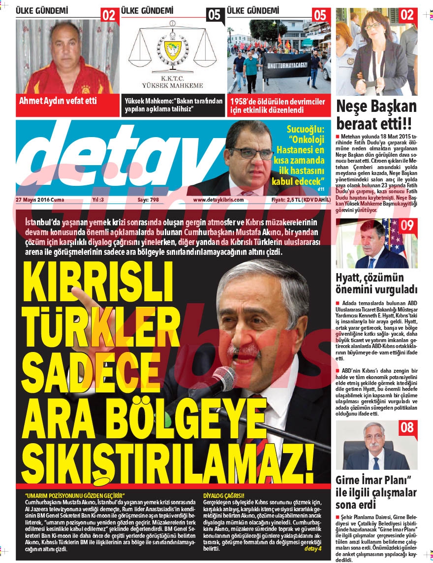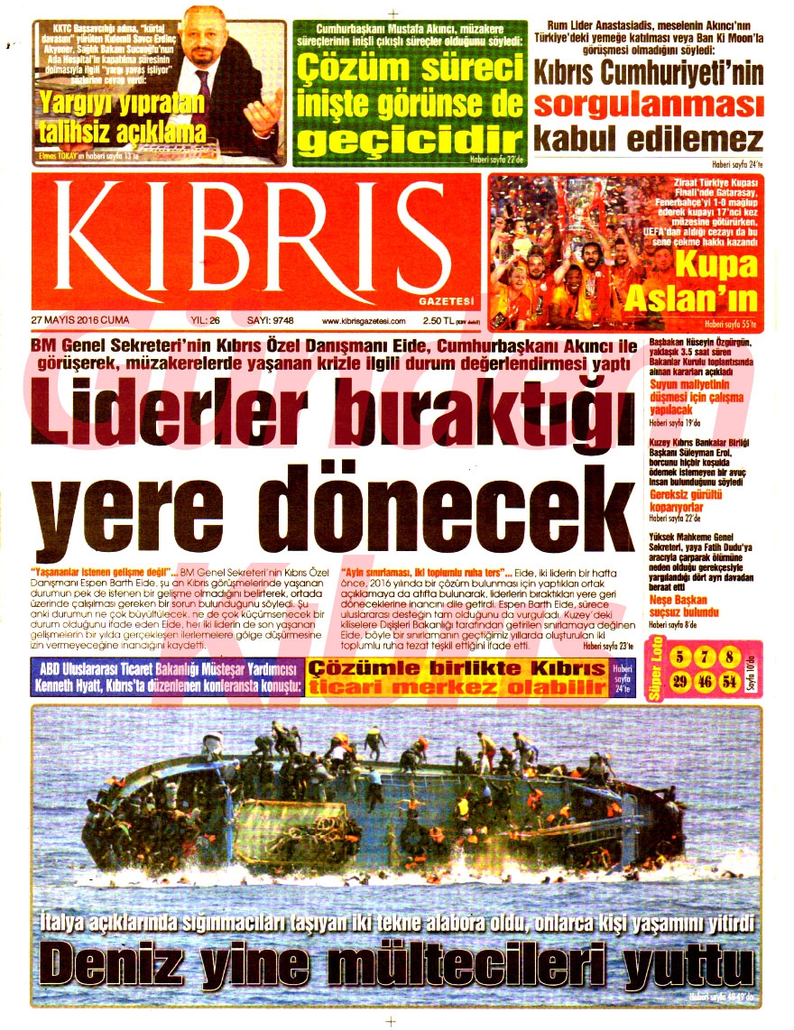 KKTC Gazete Manşetleri 27 Mayıs 2016
