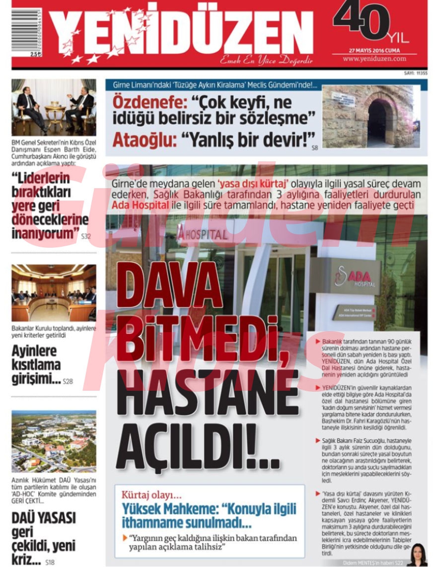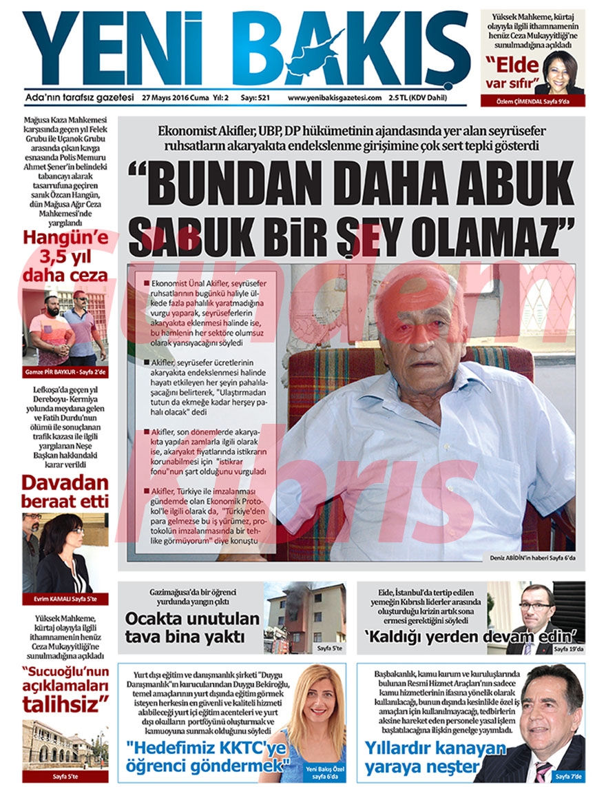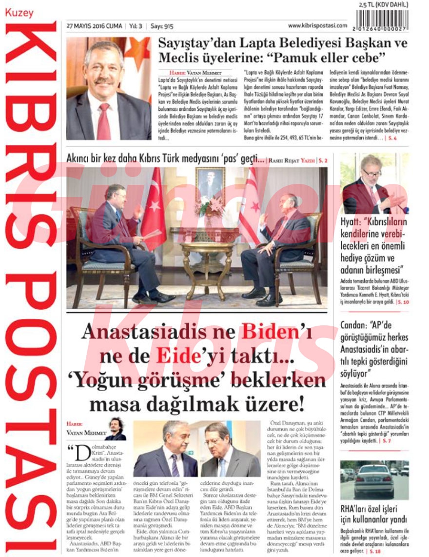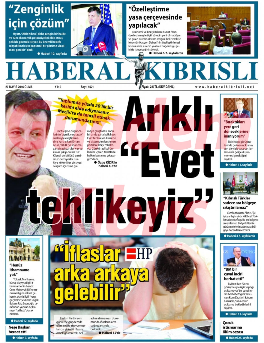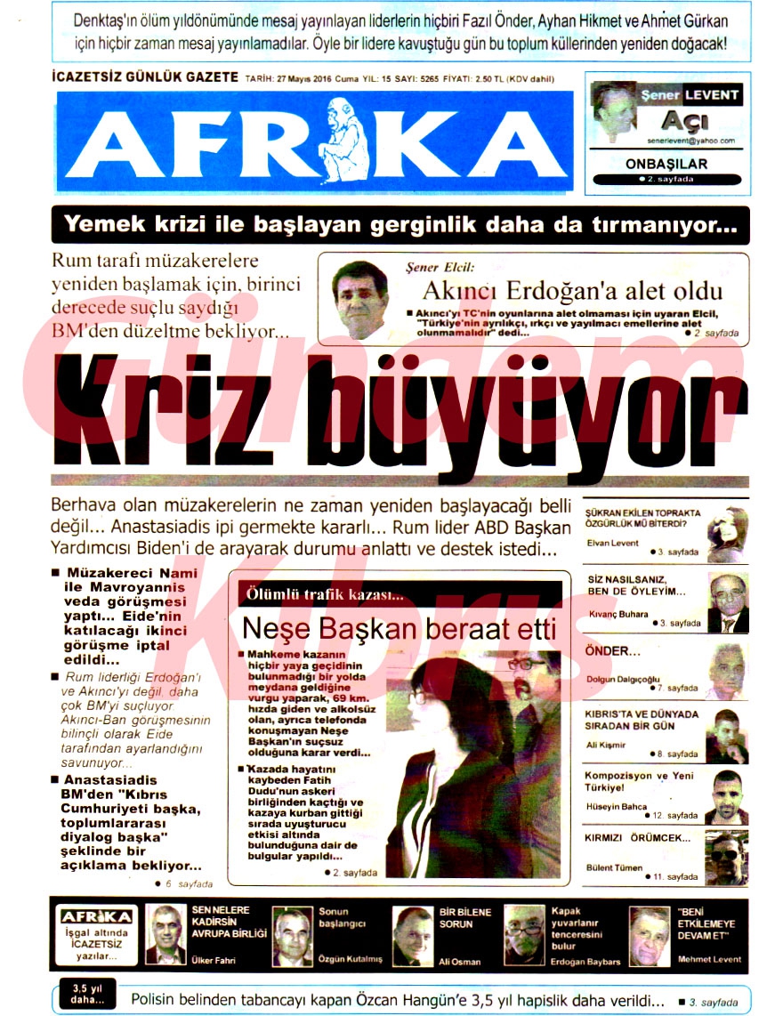 KKTC Gazete Manşetleri 27 Mayıs 2016