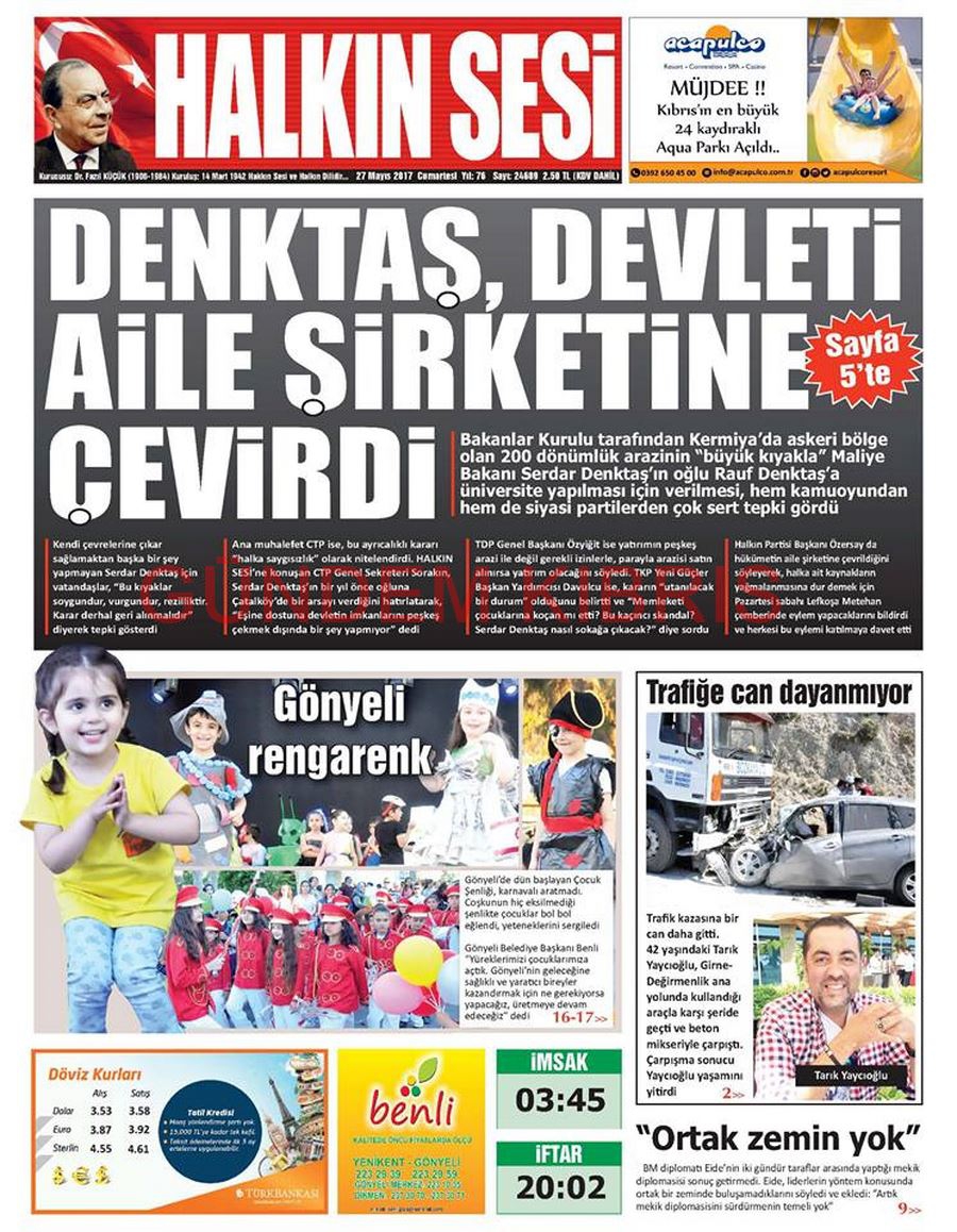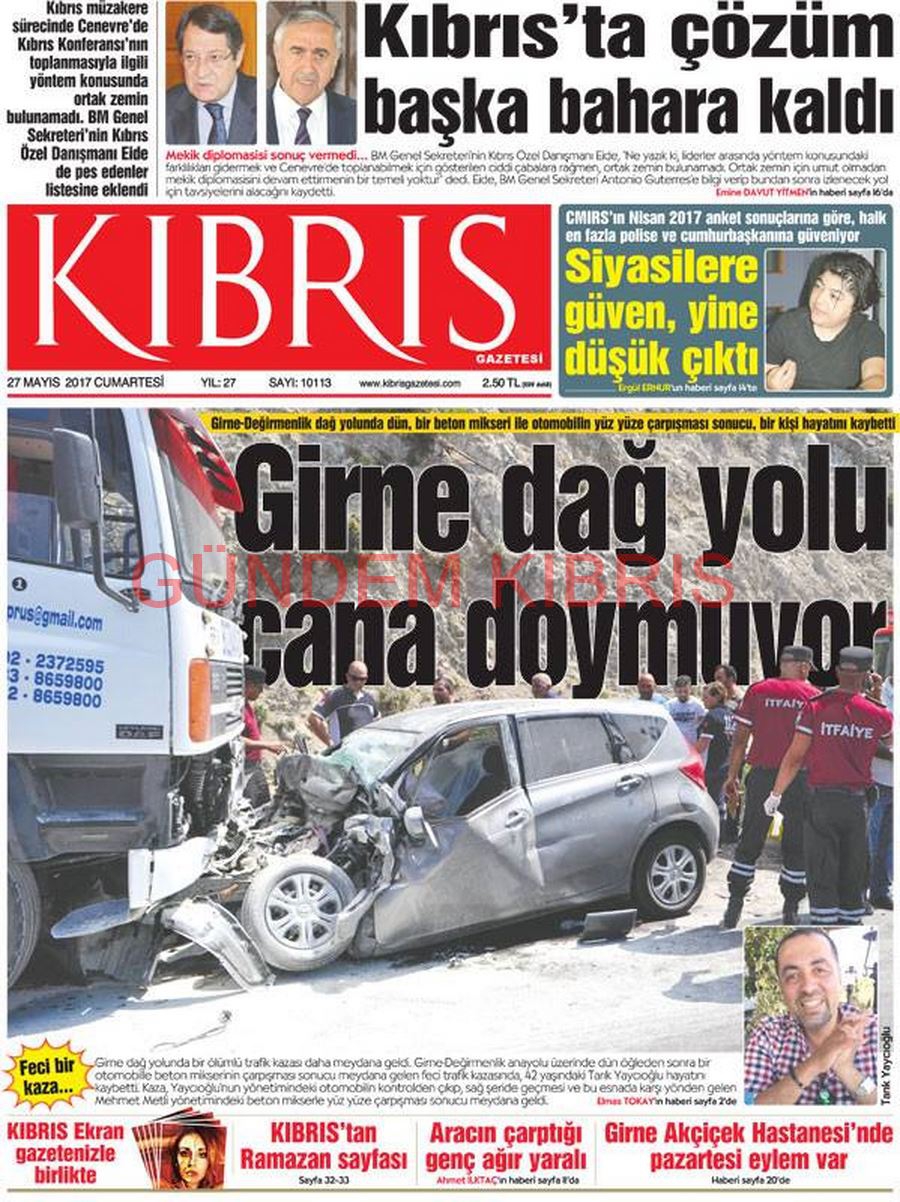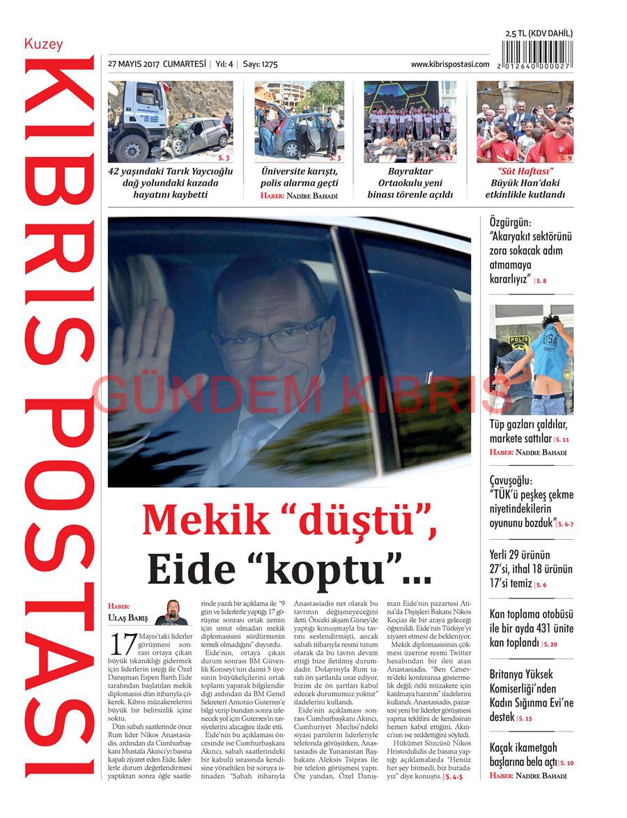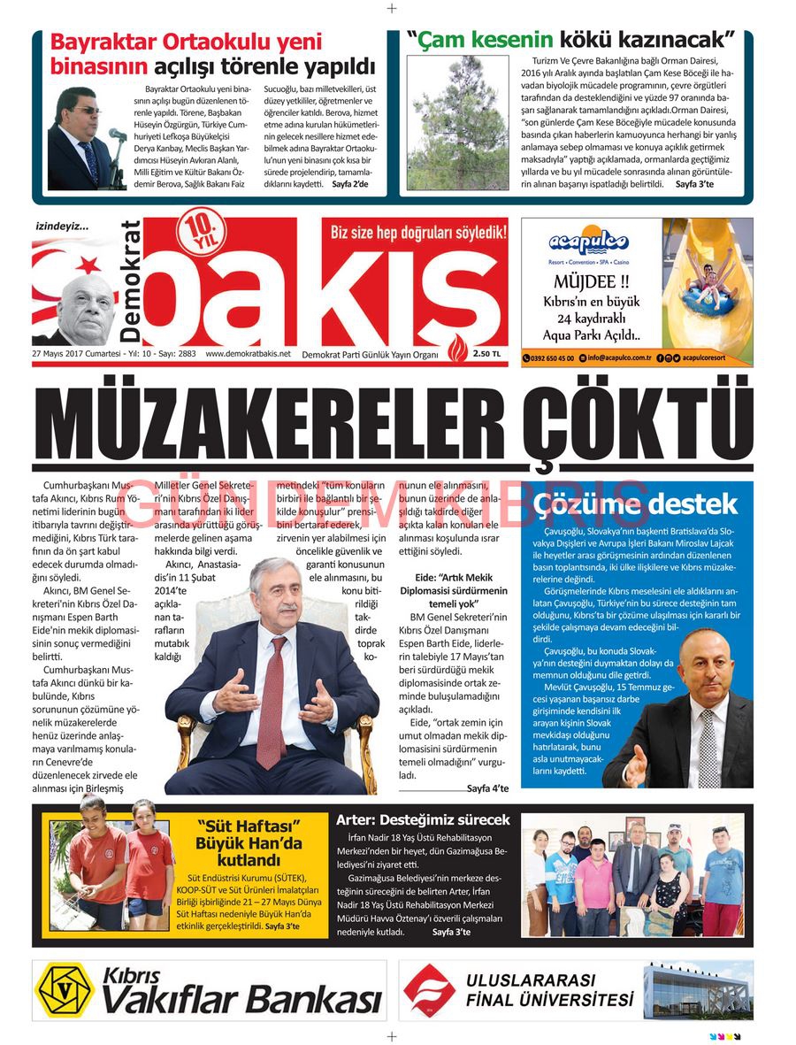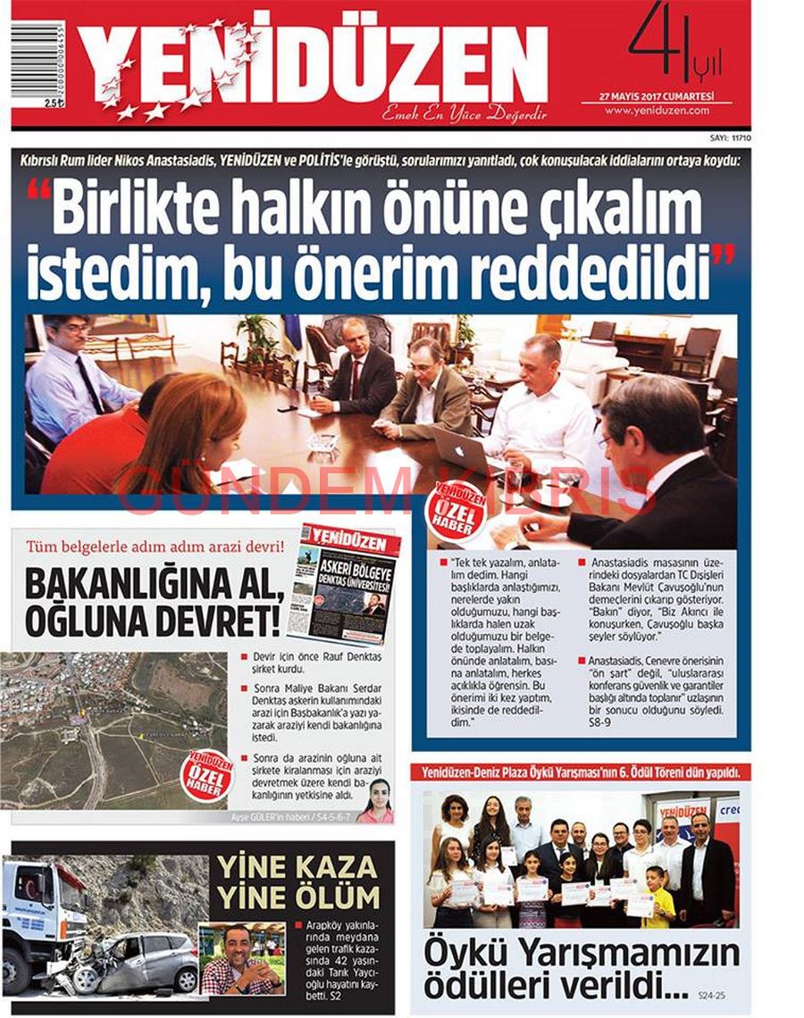 KKTC Gazete Manşetleri 27 Mayıs 2017