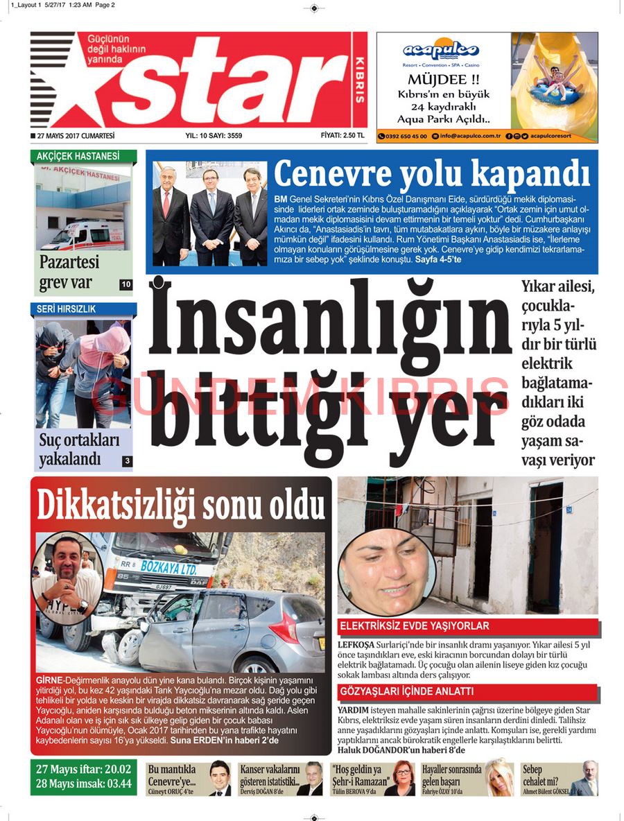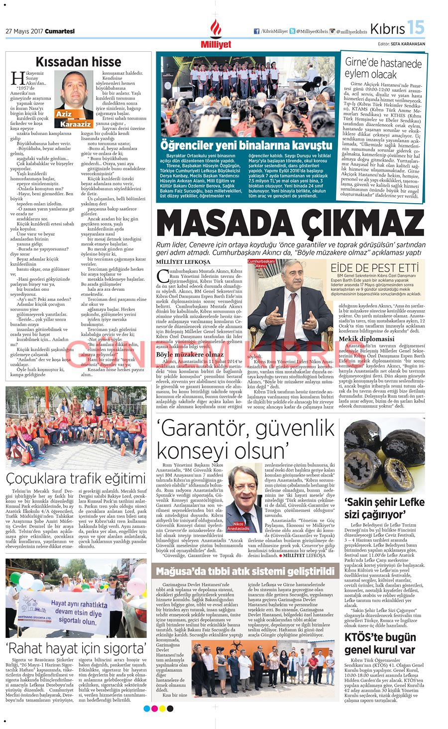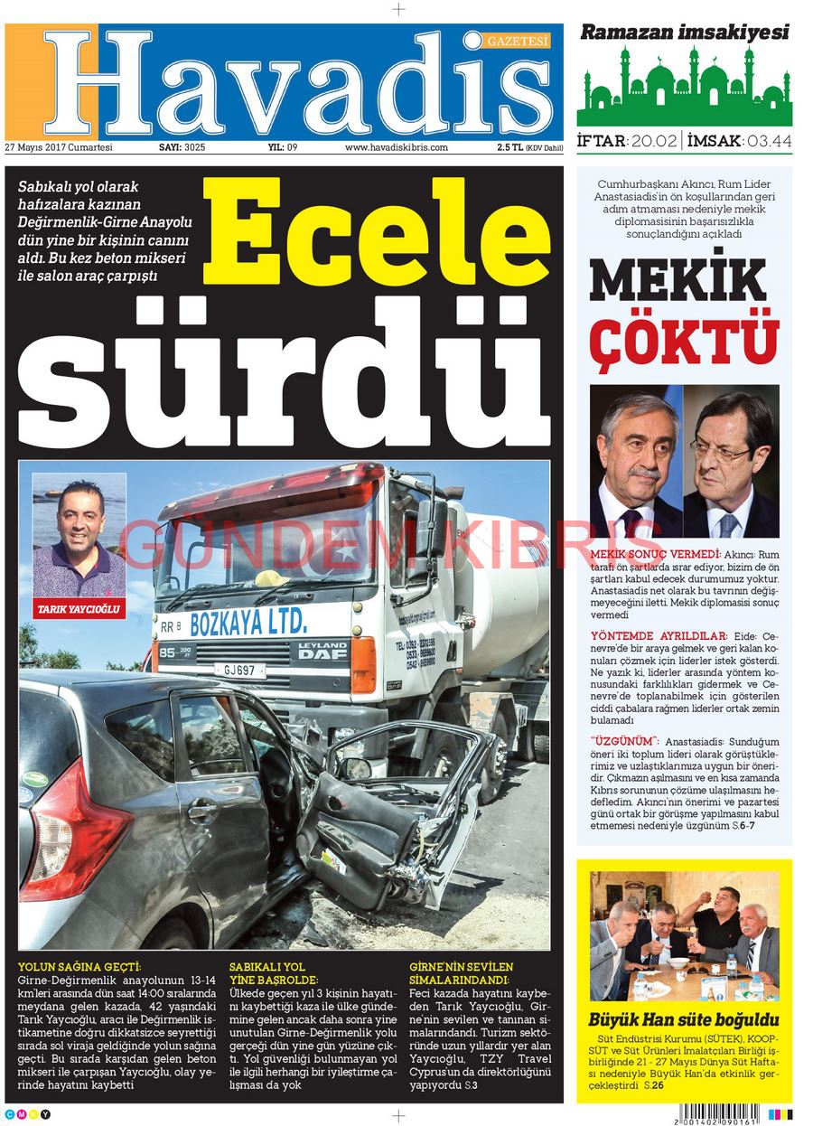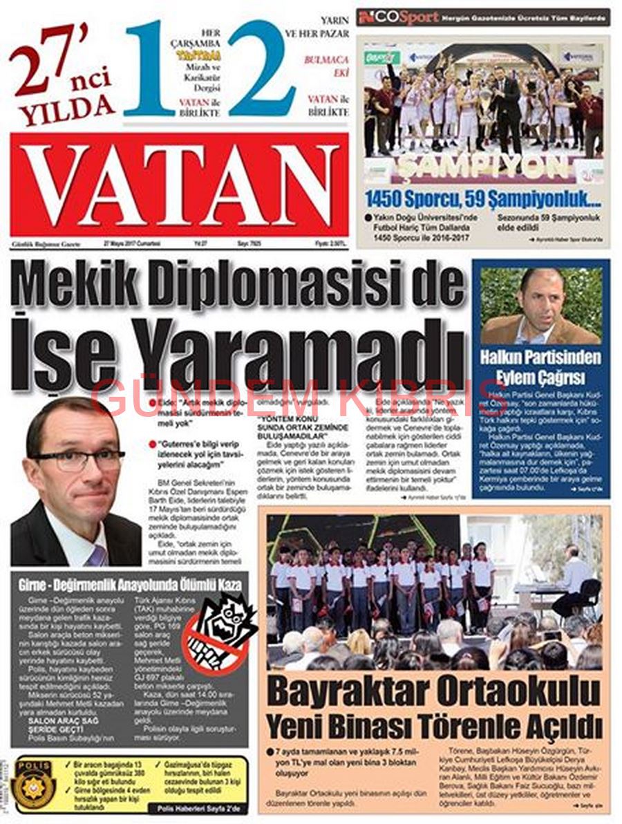 KKTC Gazete Manşetleri 27 Mayıs 2017
