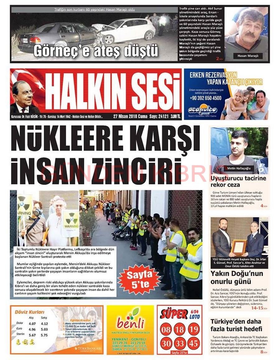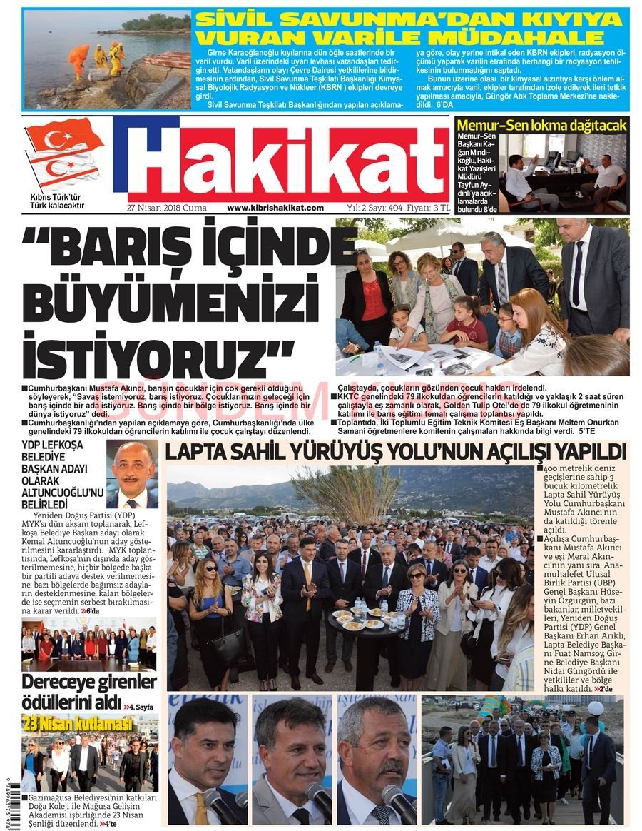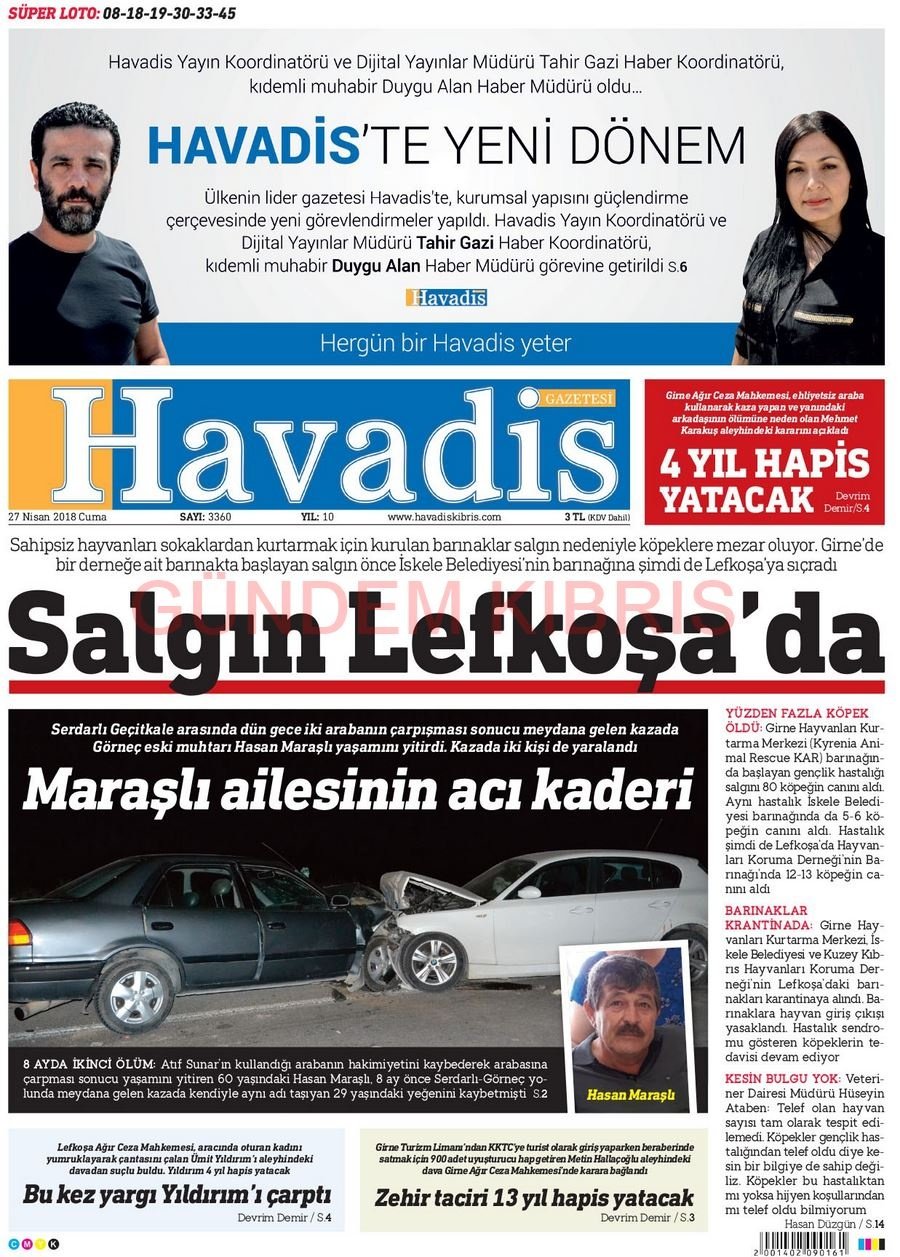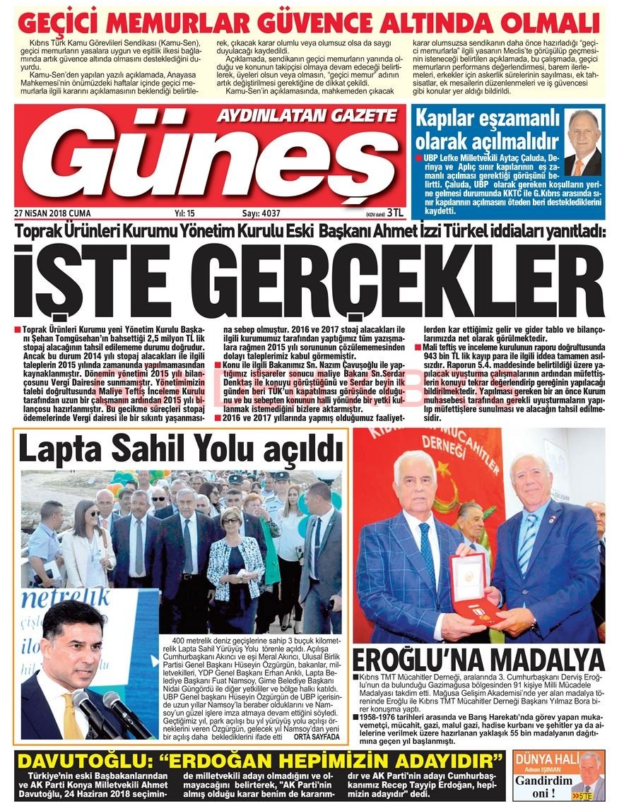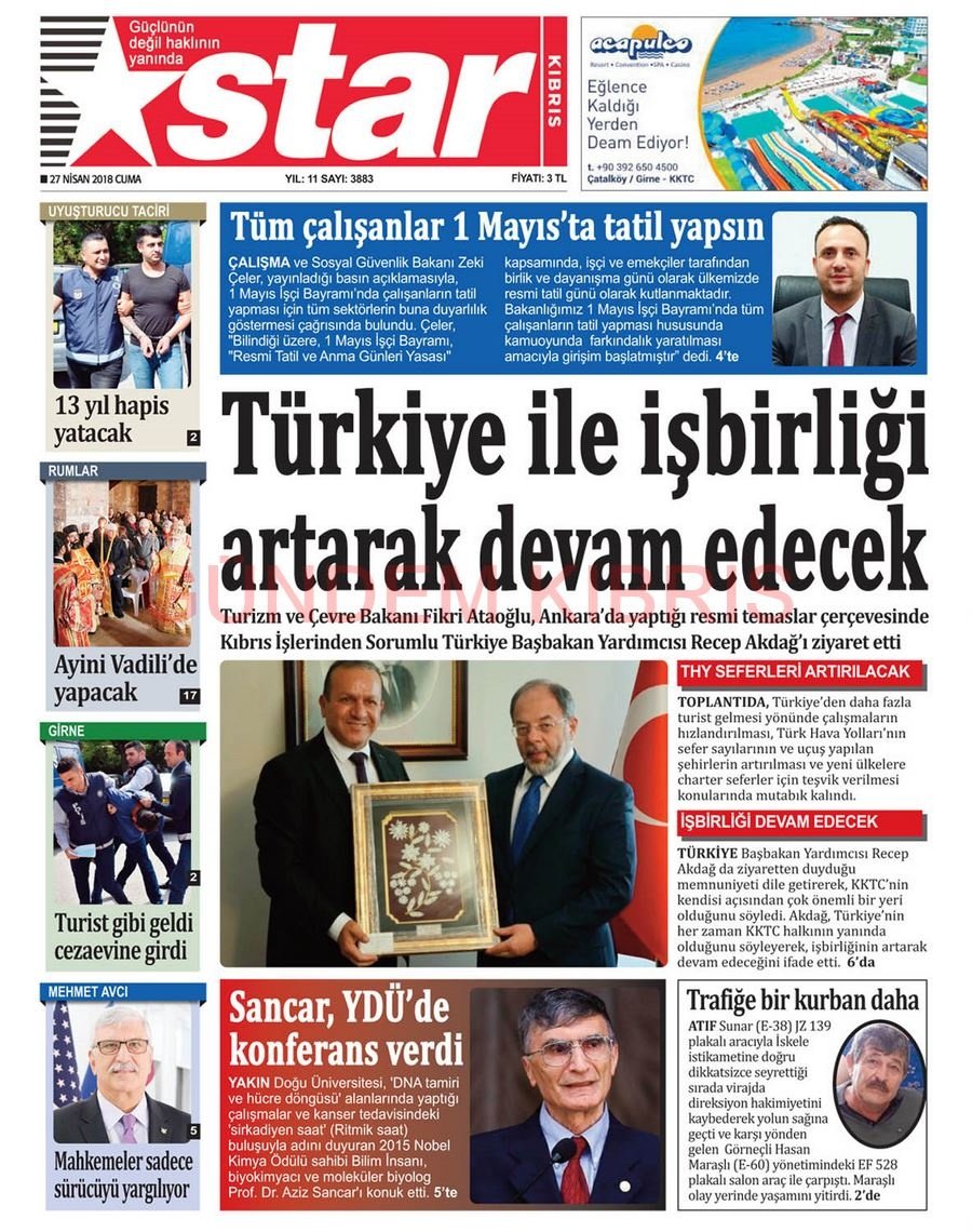 KKTC Gazete Manşetleri 27 Nisan 2018