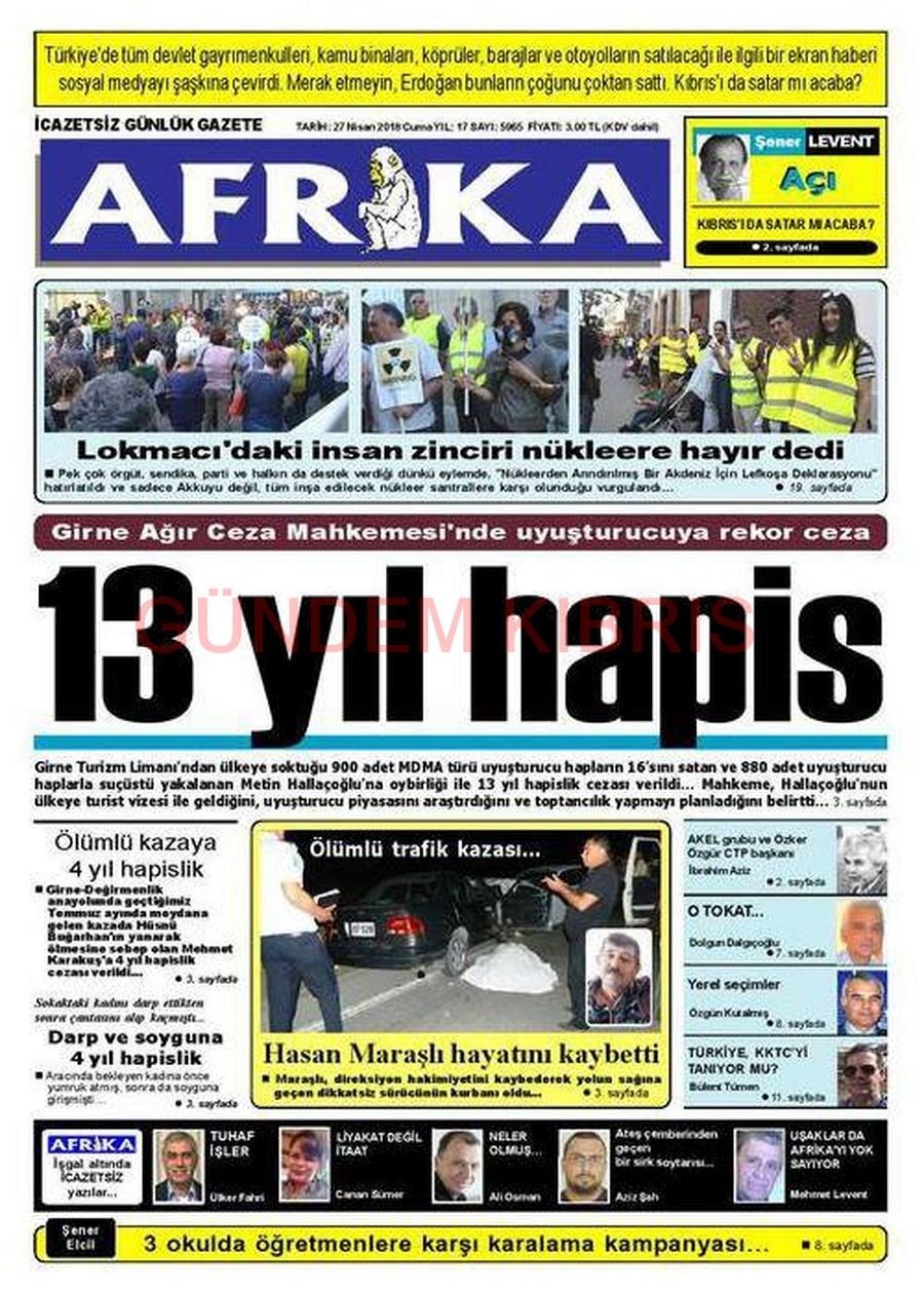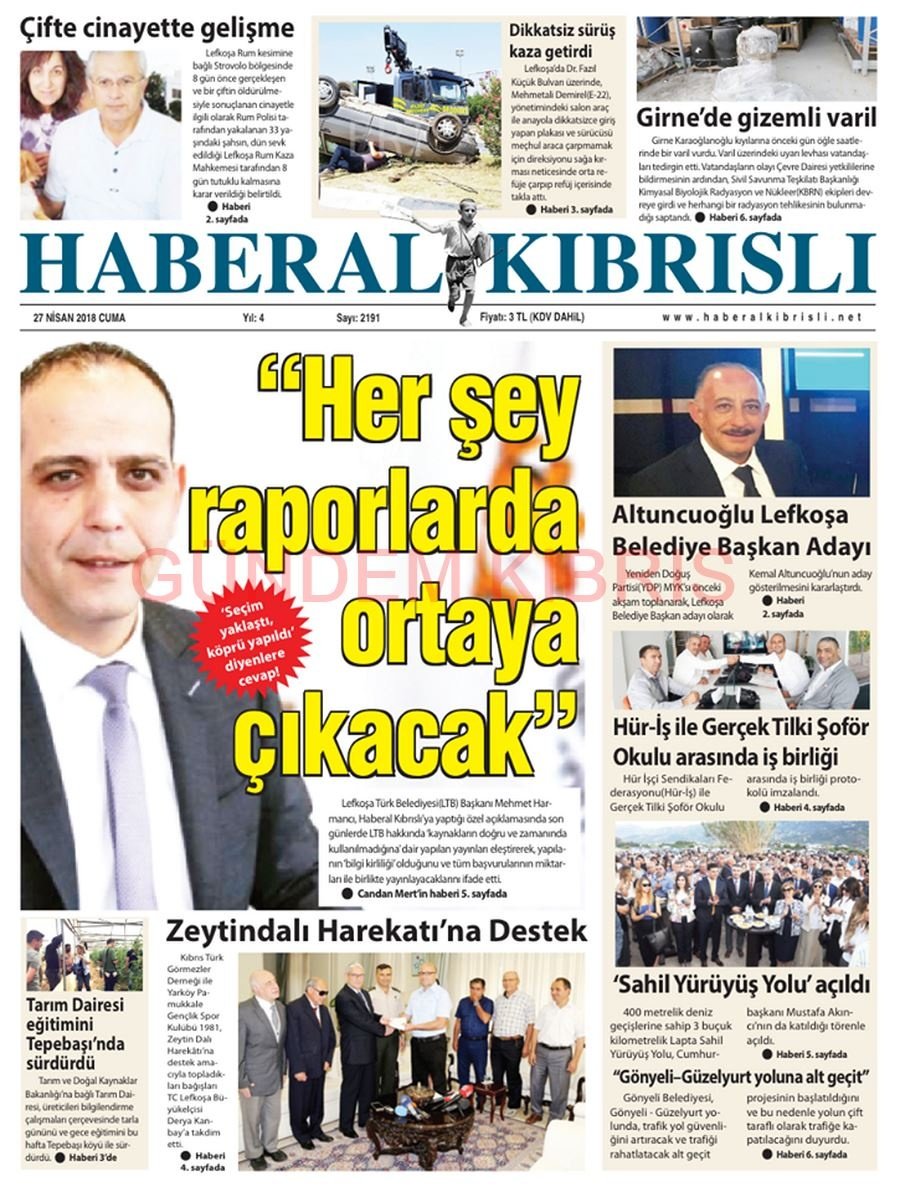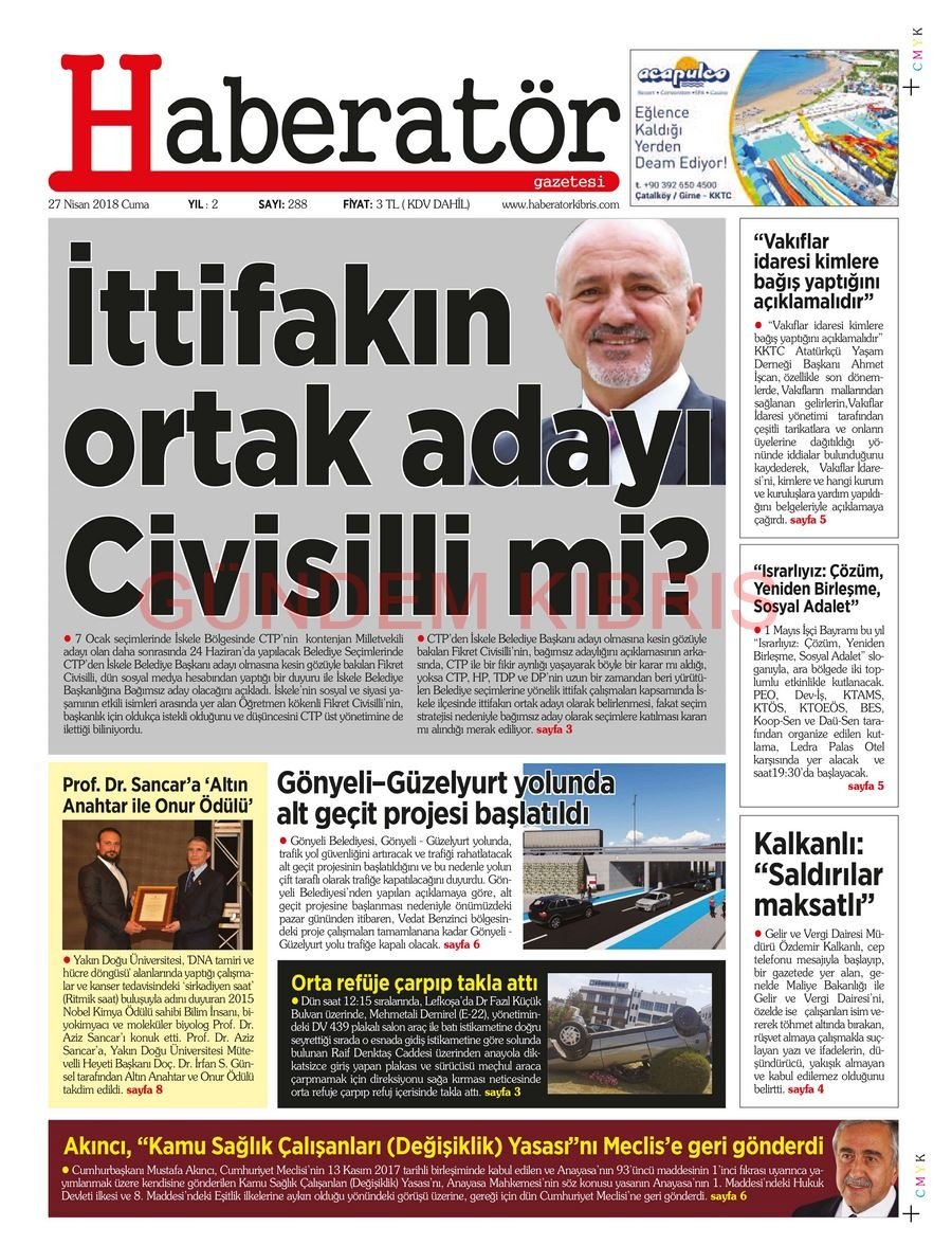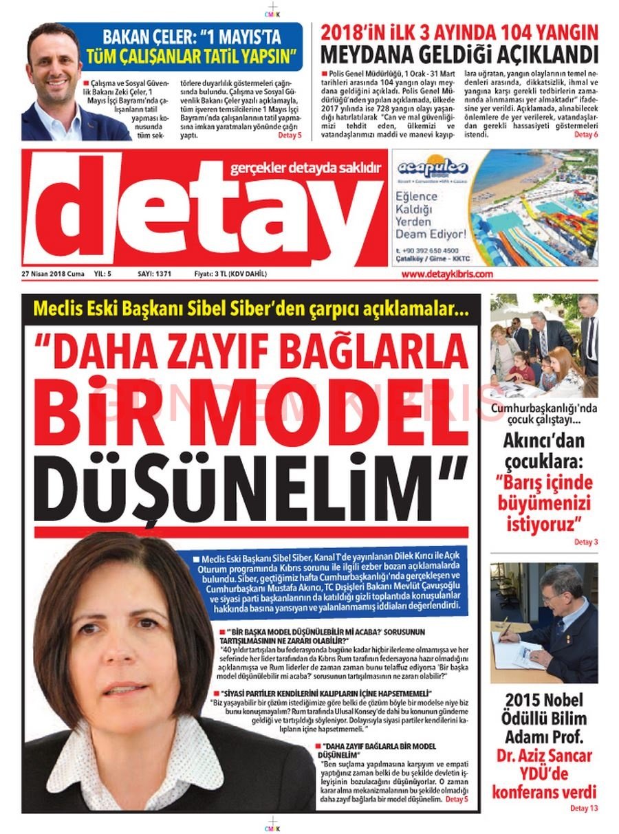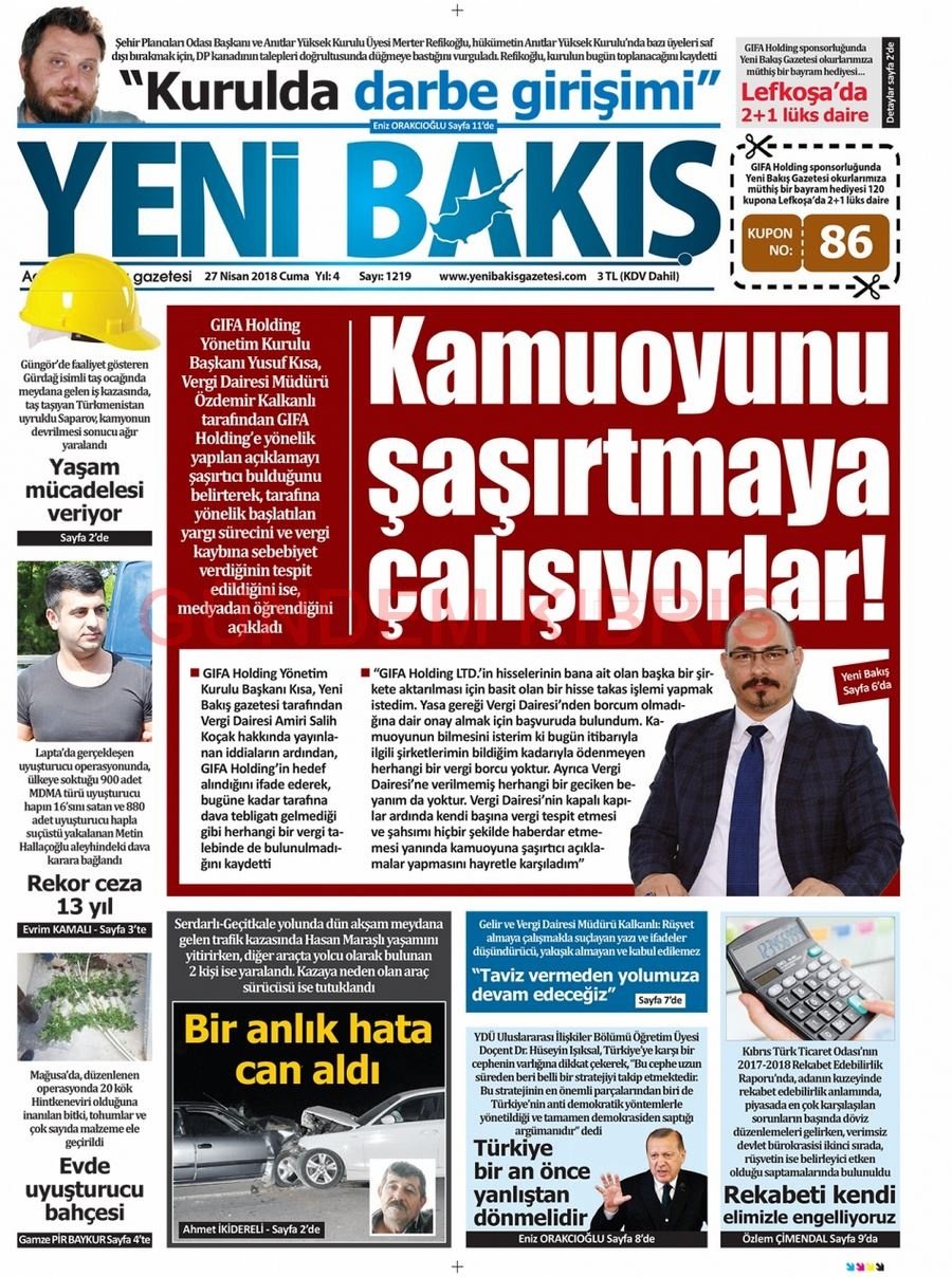 KKTC Gazete Manşetleri 27 Nisan 2018