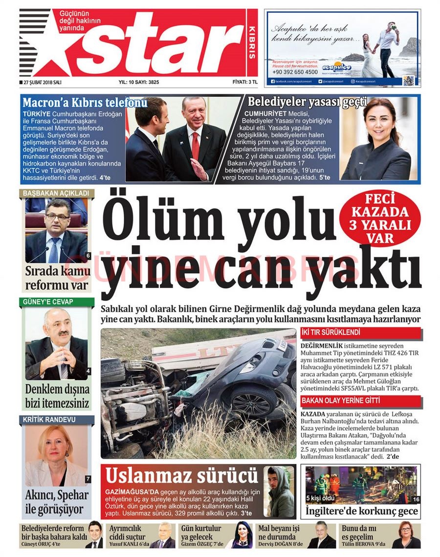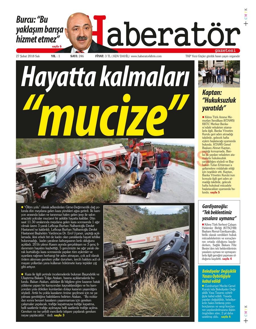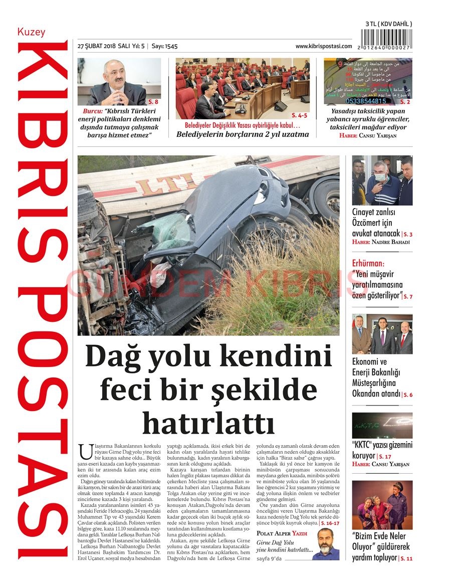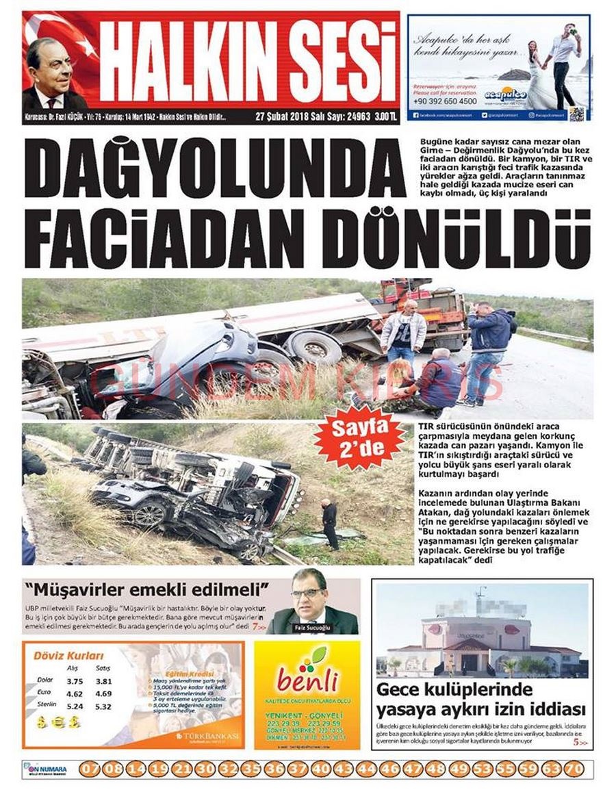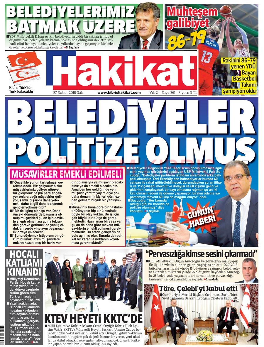 KKTC Gazete Manşetleri 27 Şubat 2018