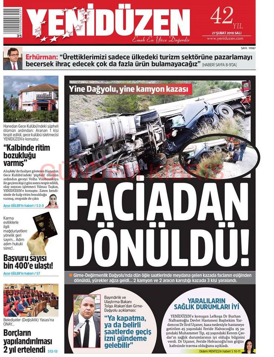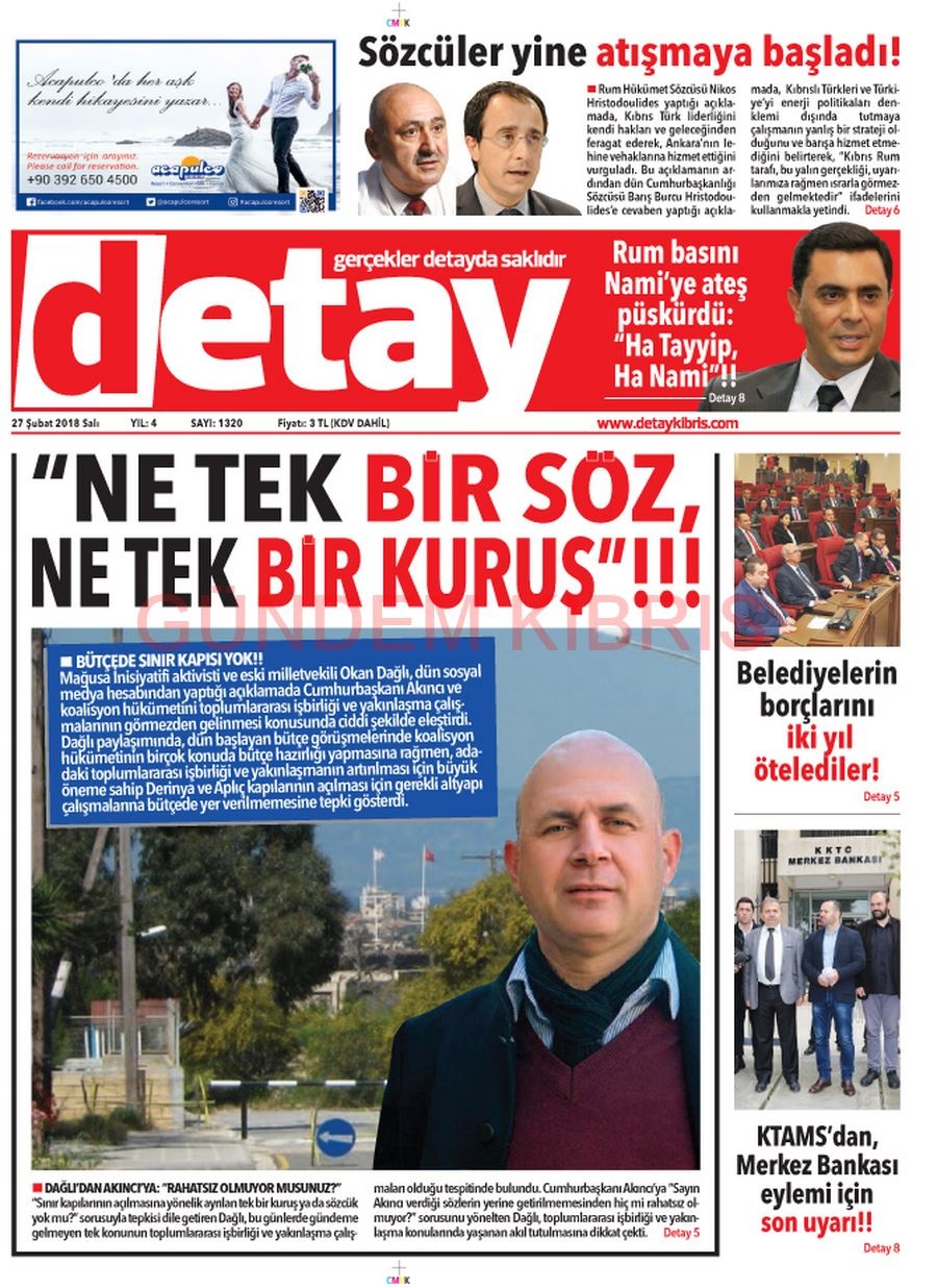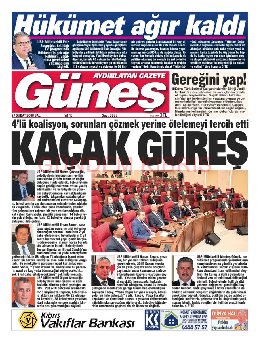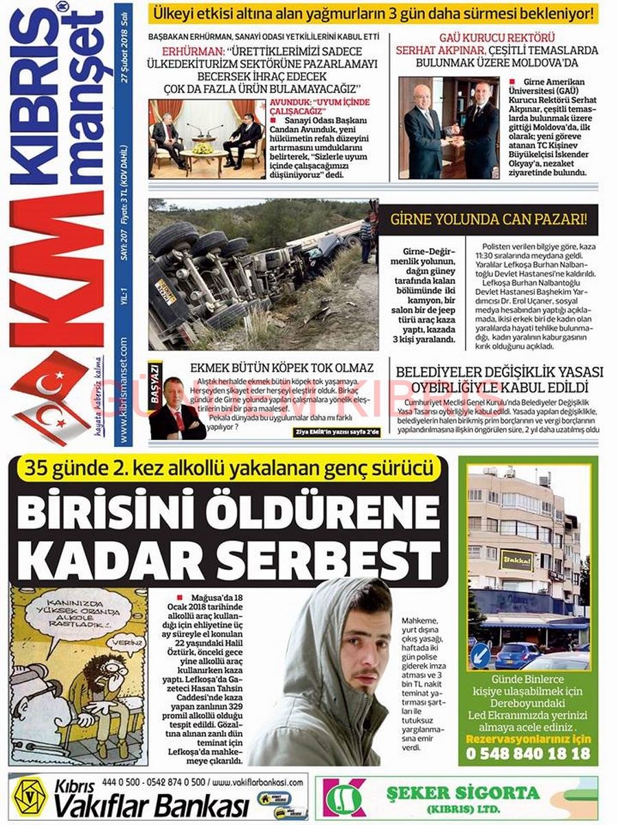 KKTC Gazete Manşetleri 27 Şubat 2018