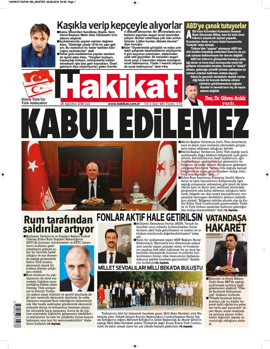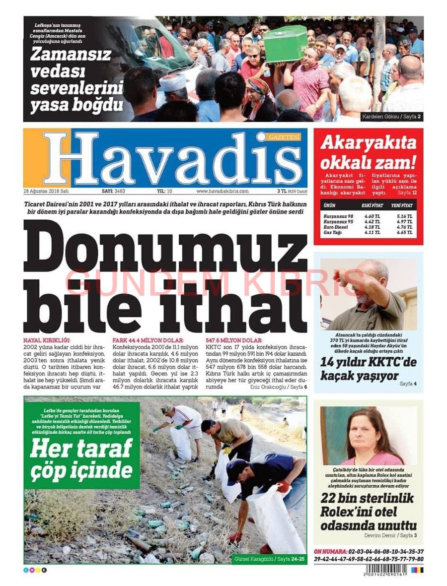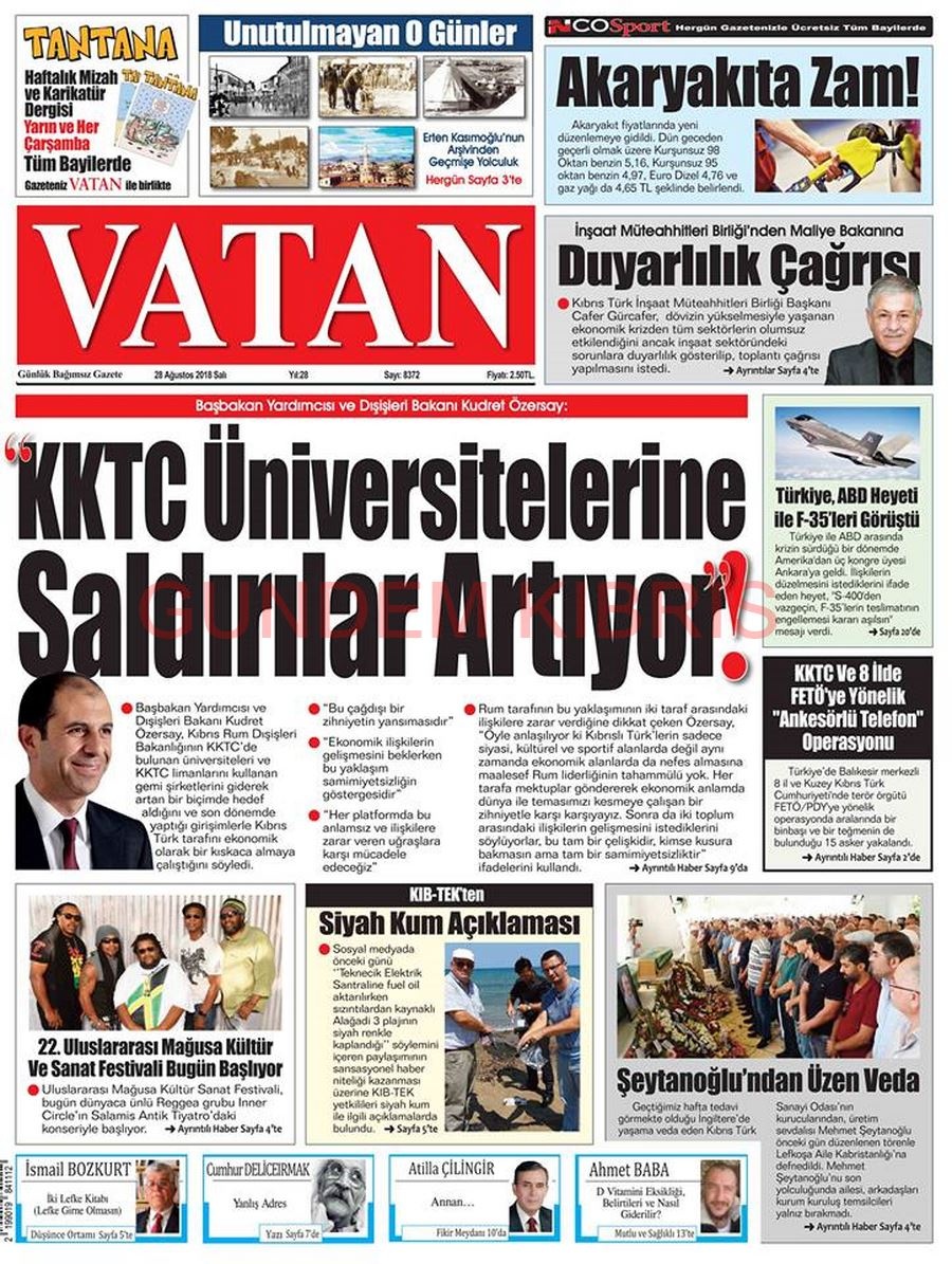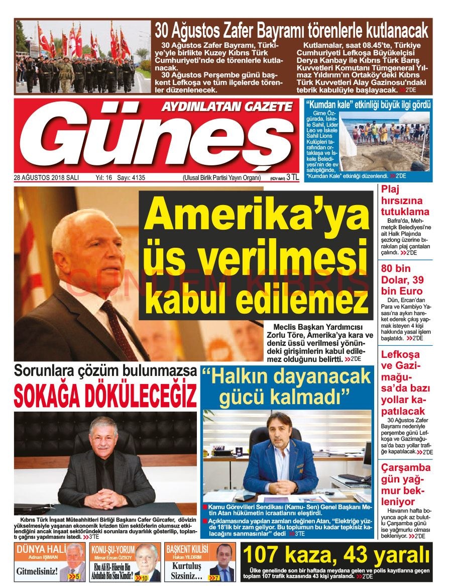 KKTC Gazete Manşetleri 28 Ağustos 2018