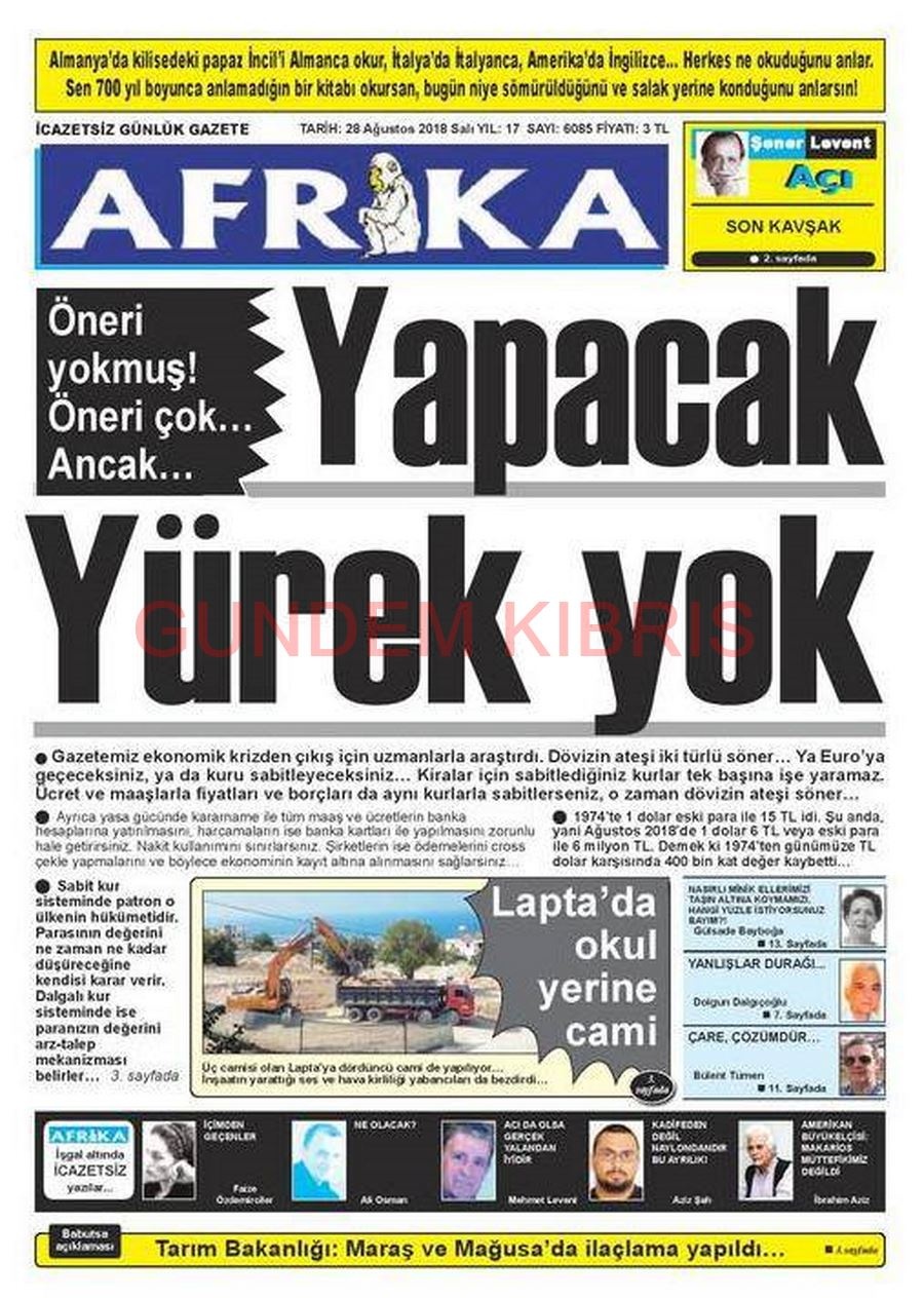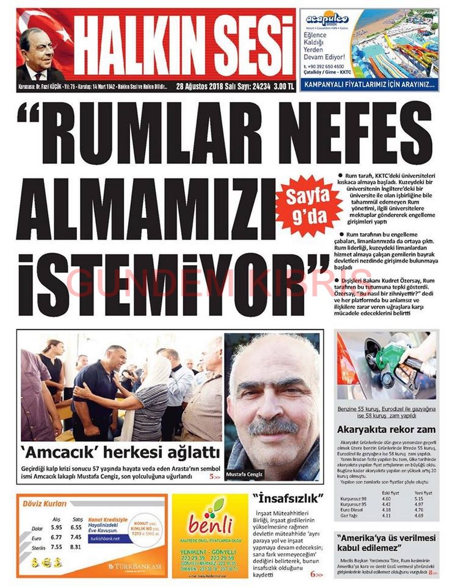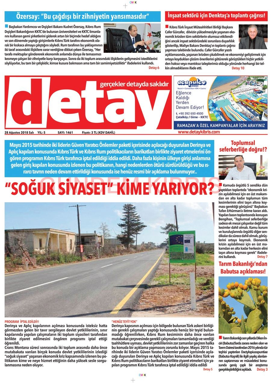 KKTC Gazete Manşetleri 28 Ağustos 2018