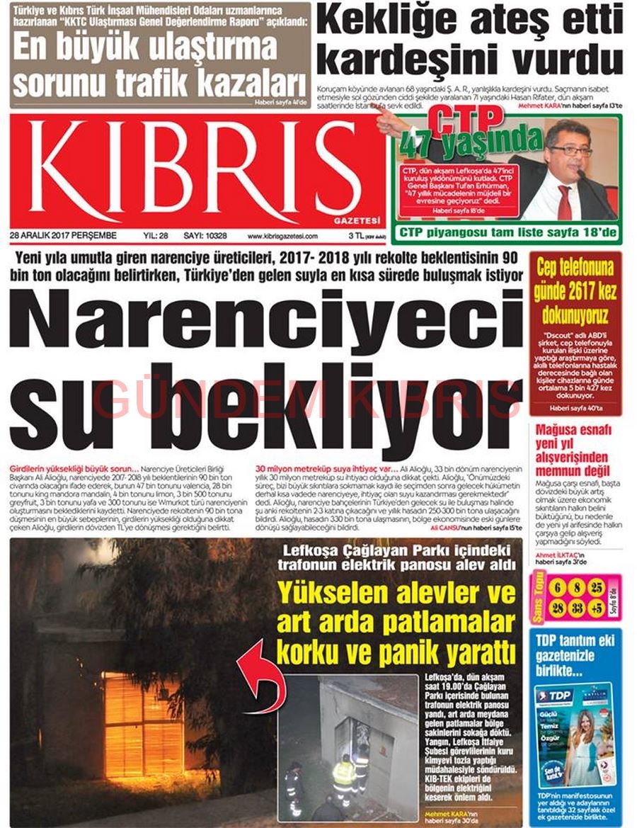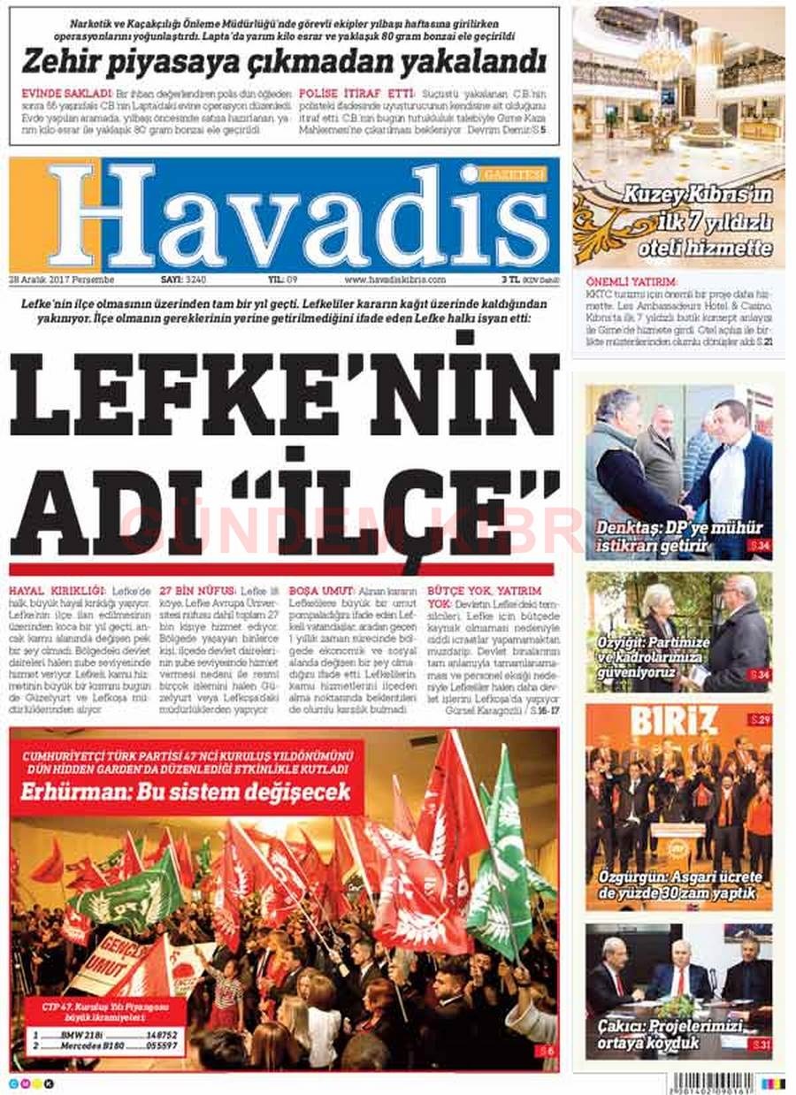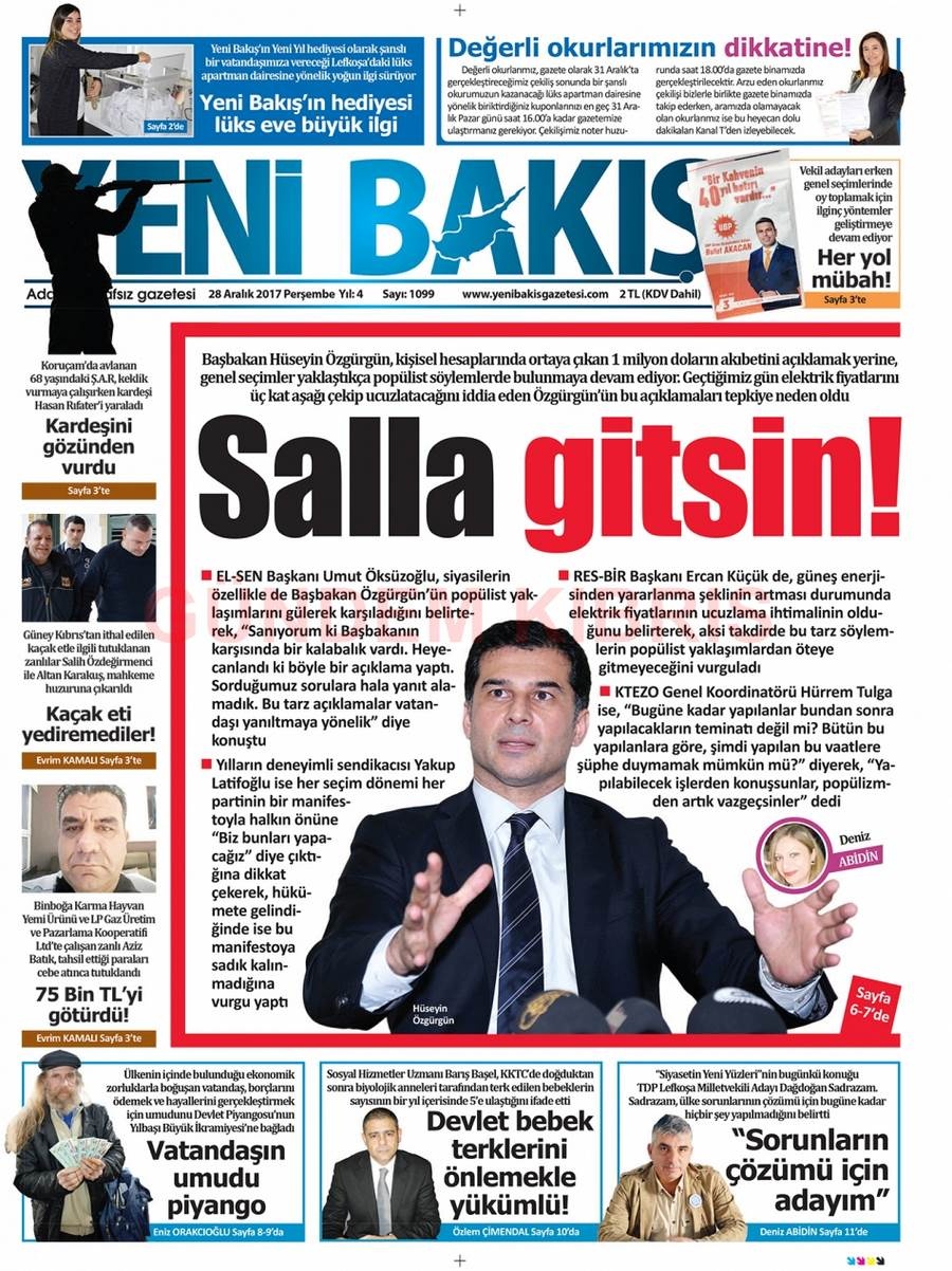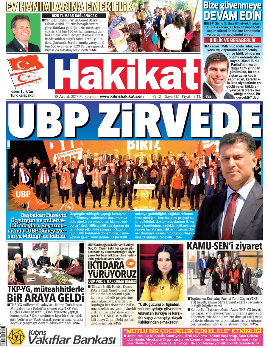 KKTC Gazete Manşetleri 28 Aralık 2017