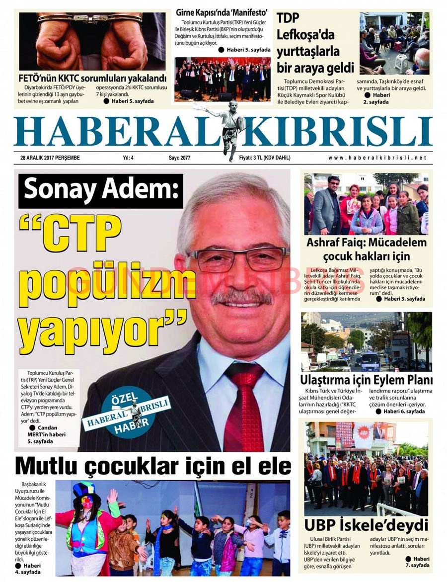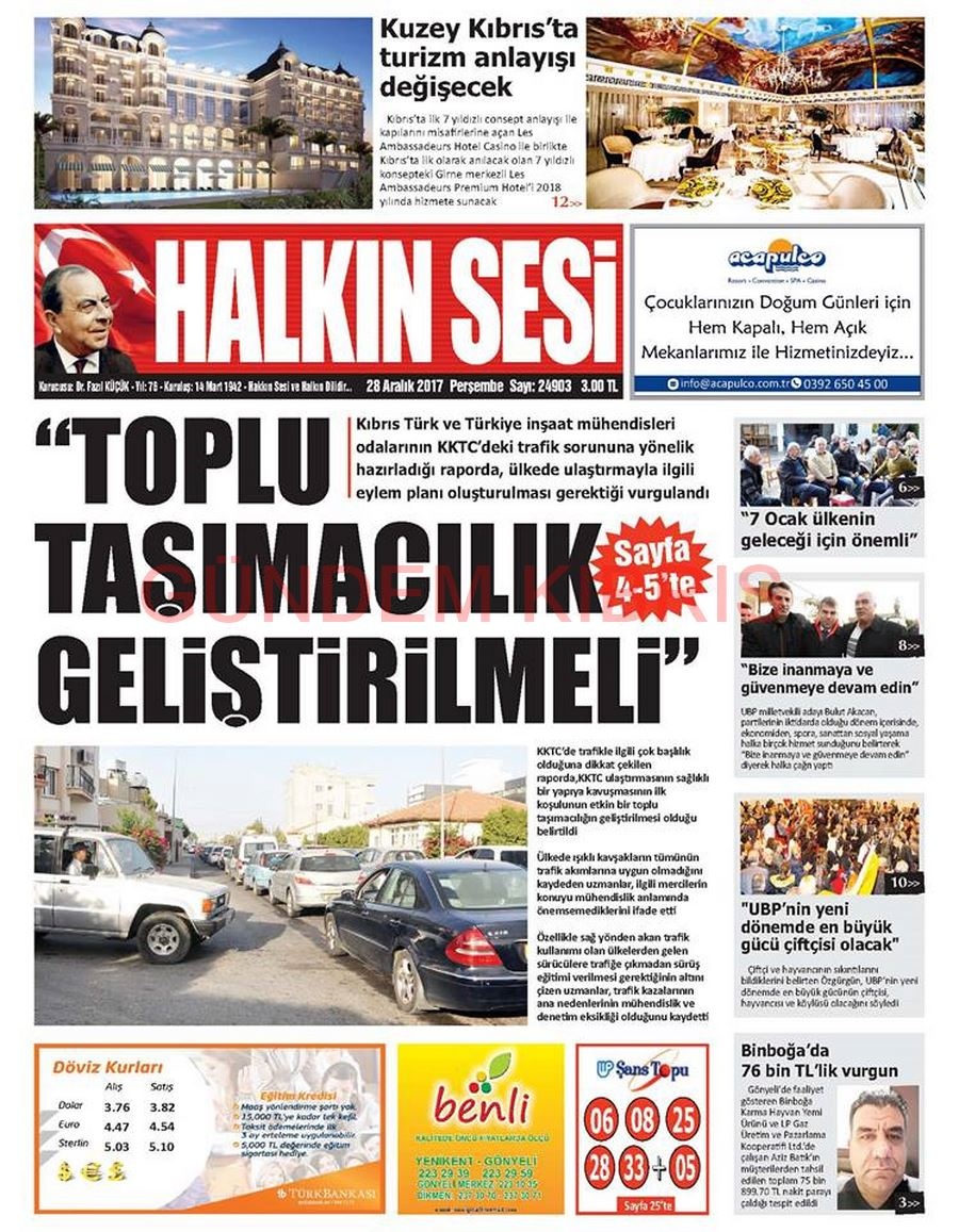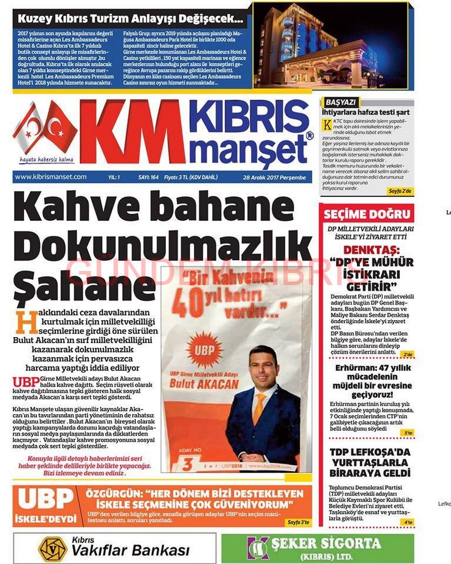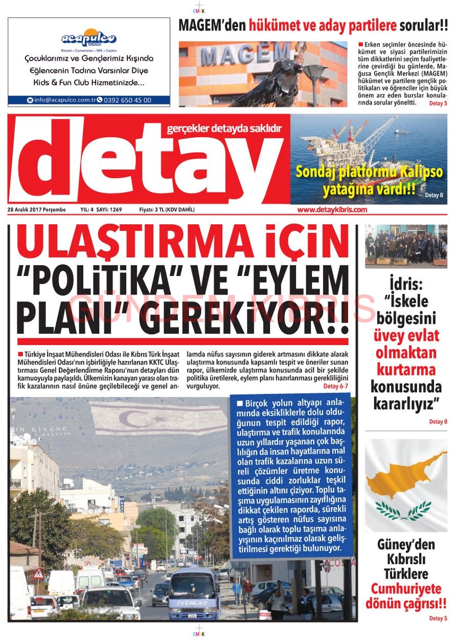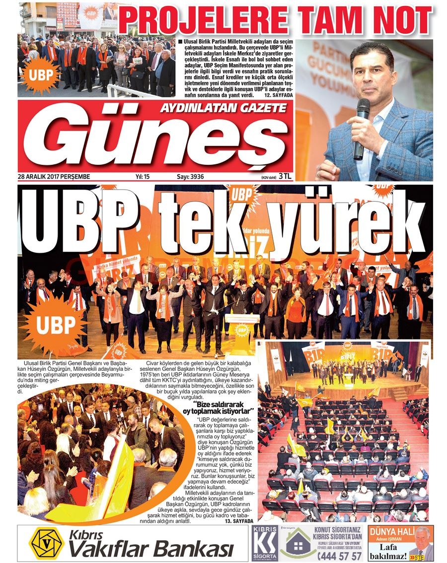 KKTC Gazete Manşetleri 28 Aralık 2017