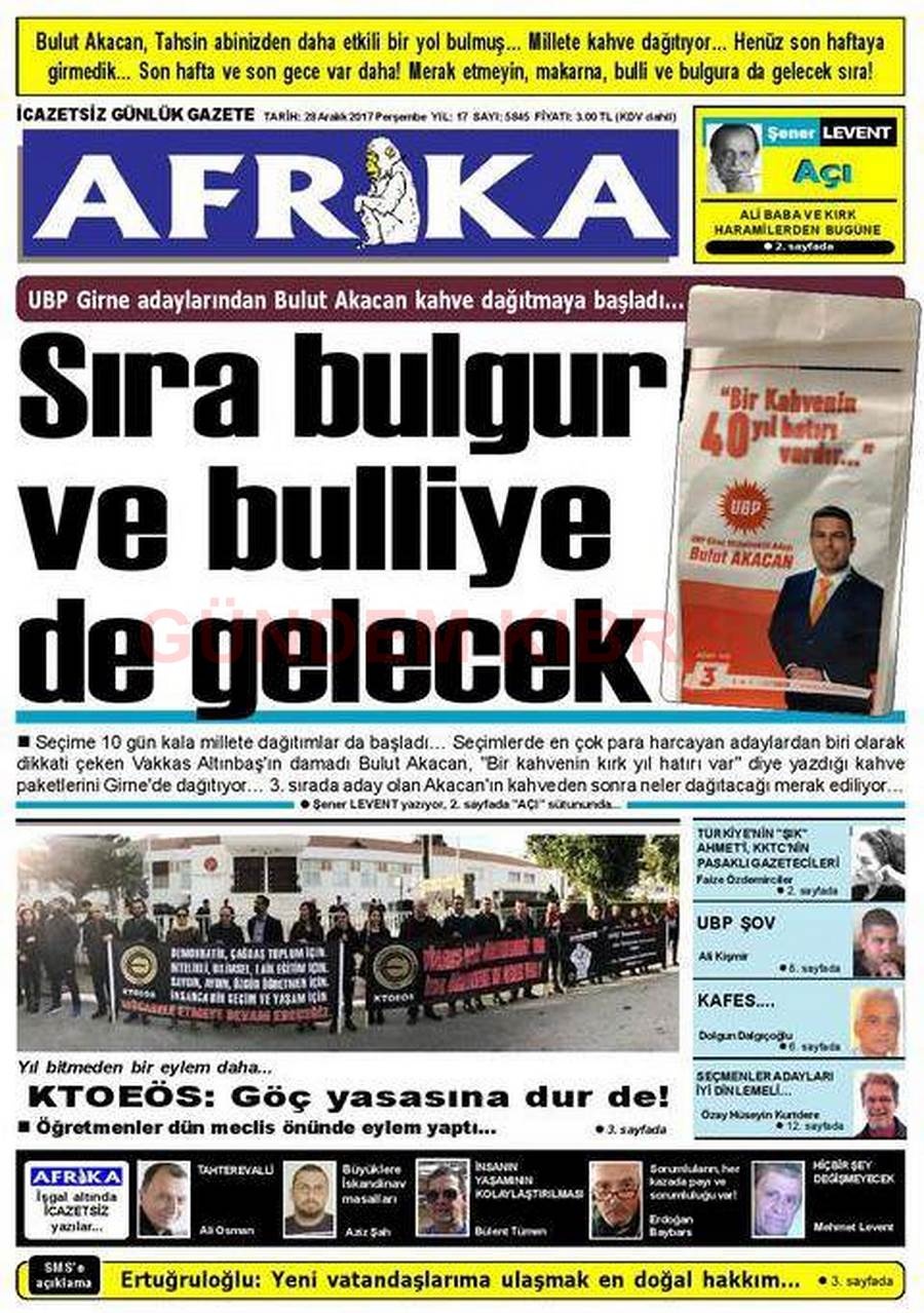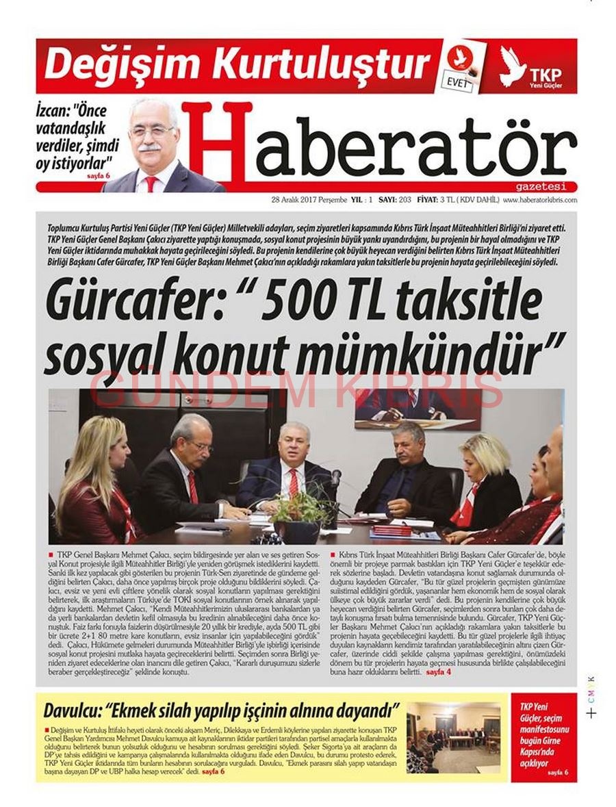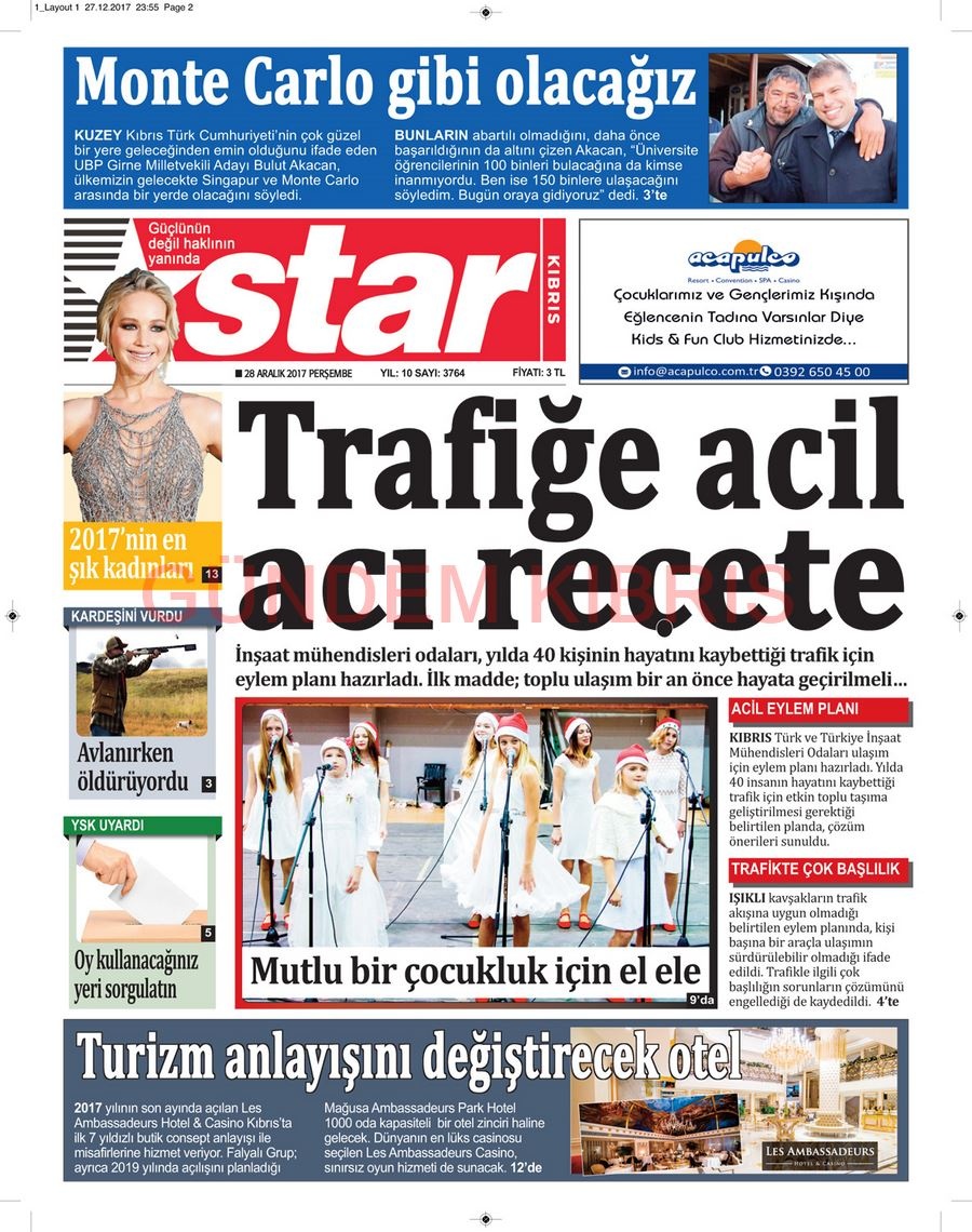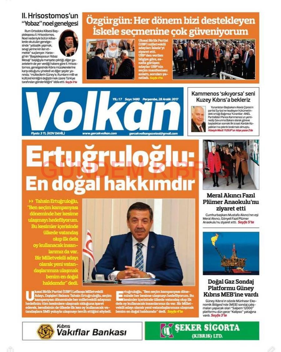 KKTC Gazete Manşetleri 28 Aralık 2017