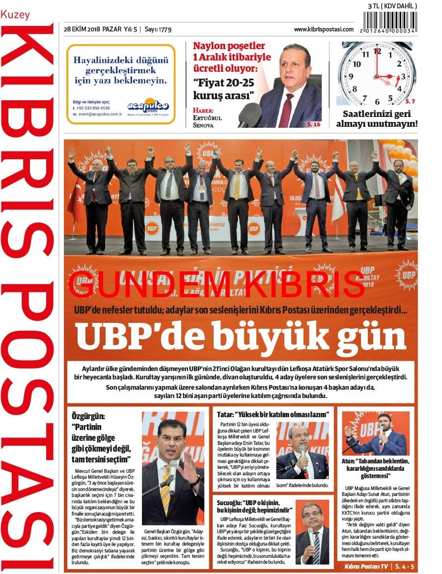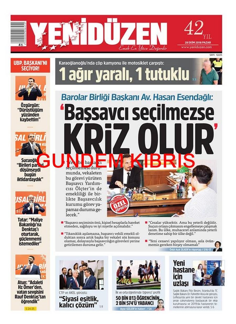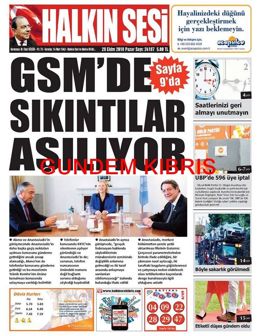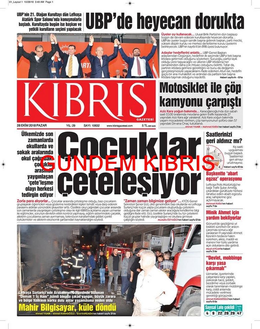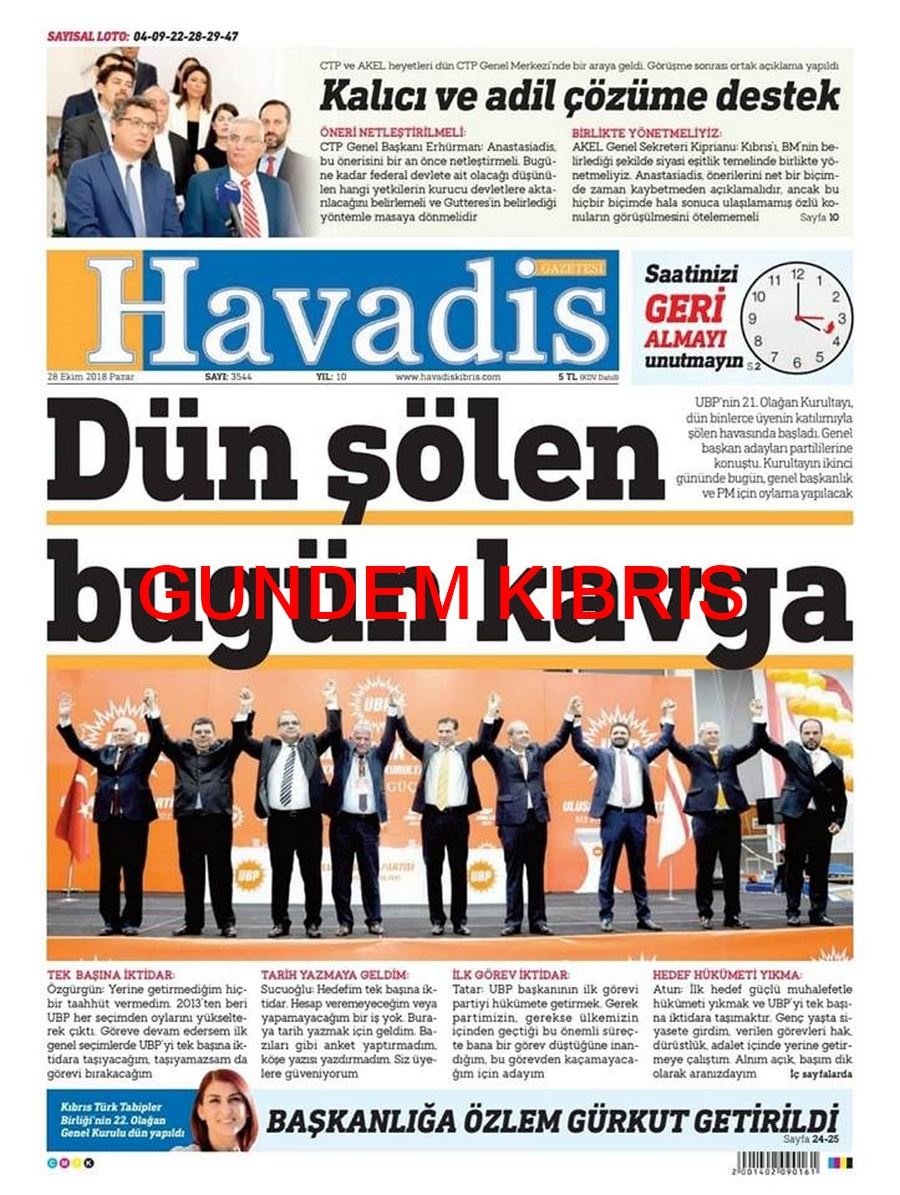 KKTC Gazete Manşetleri 28 Ekim 2018