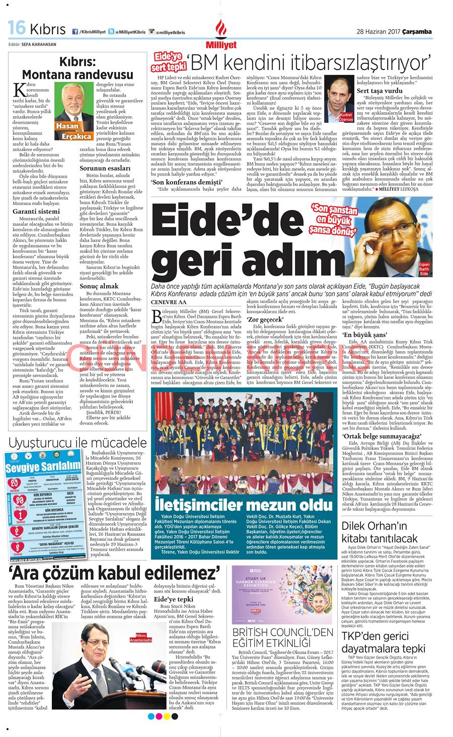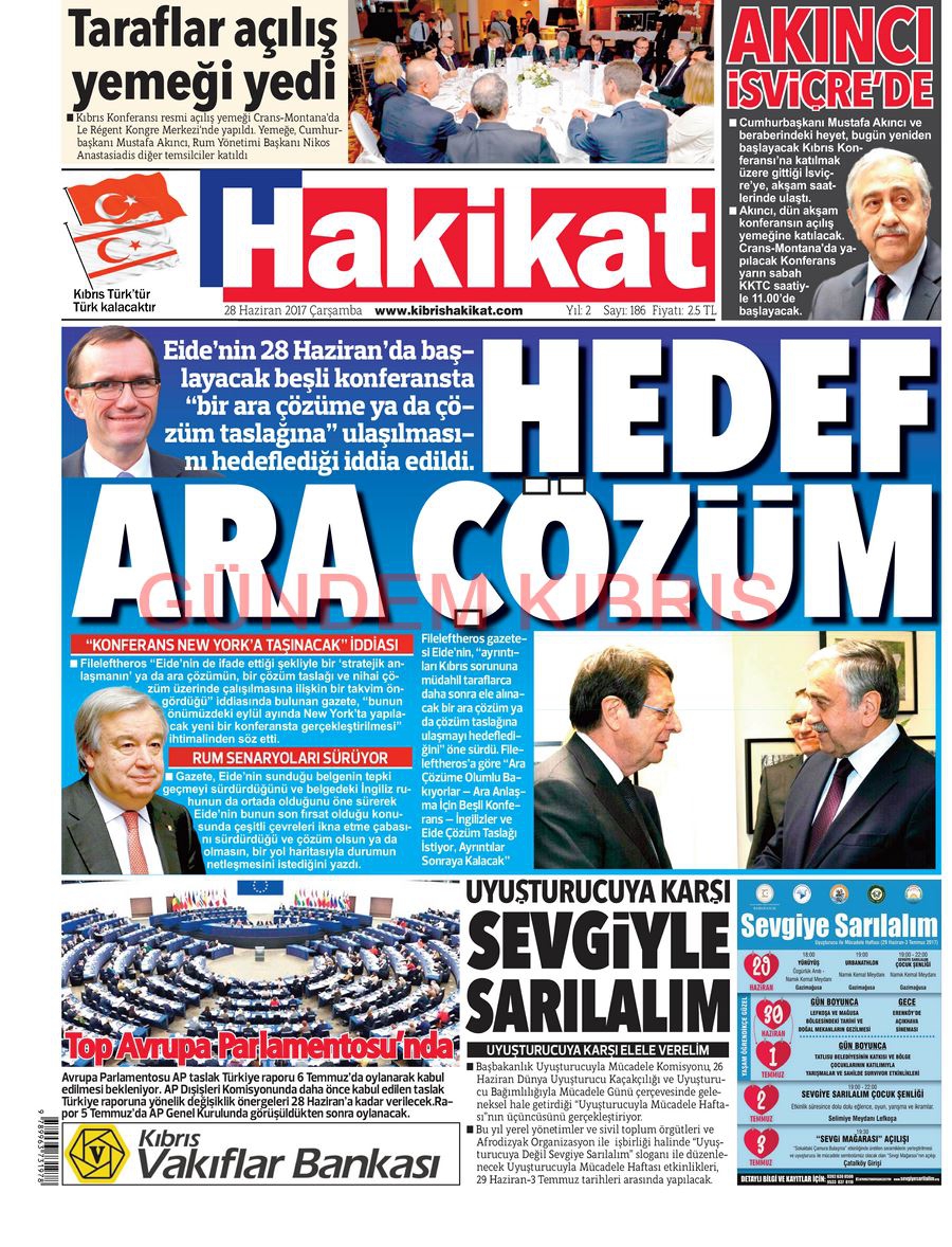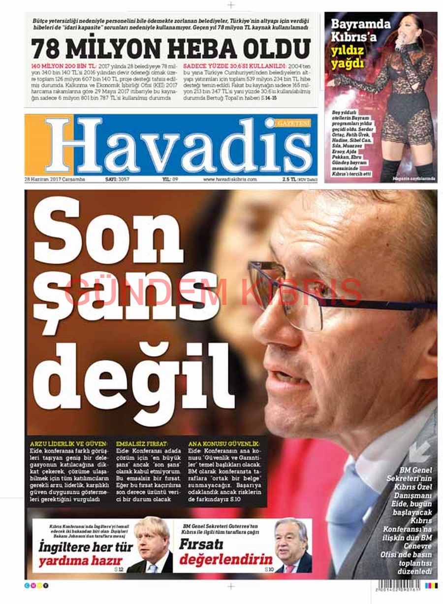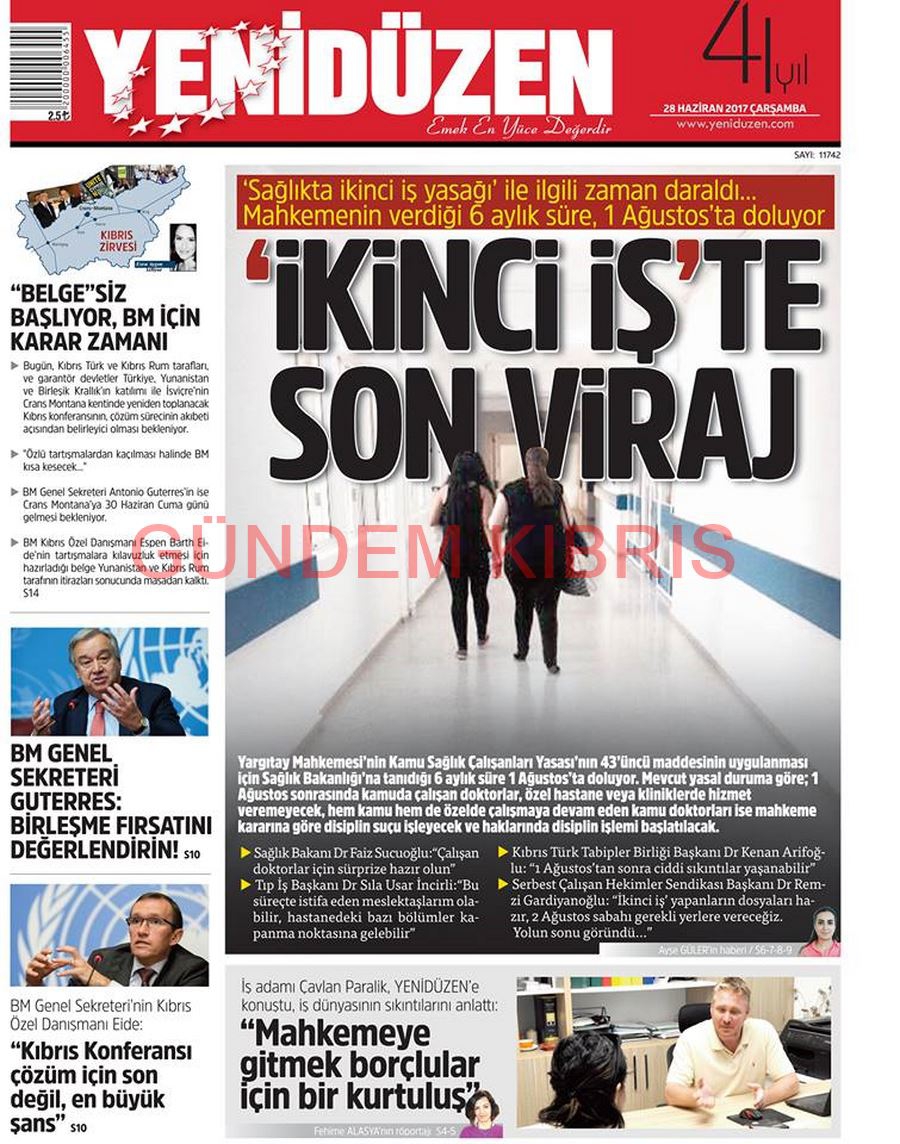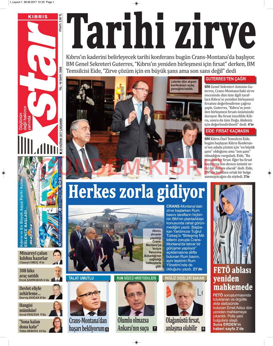 KKTC Gazete Manşetleri 28 Haziran 2017