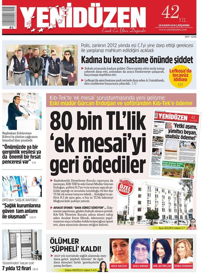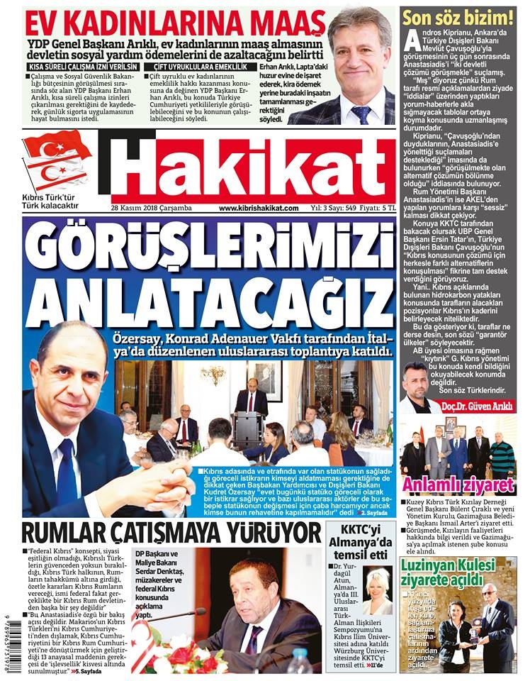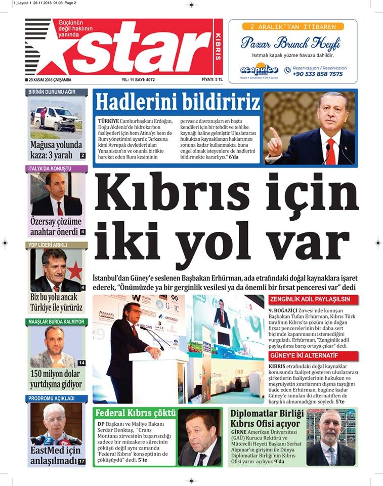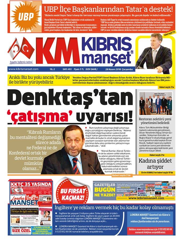 KKTC Gazete Manşetleri 28 Kasım 2018