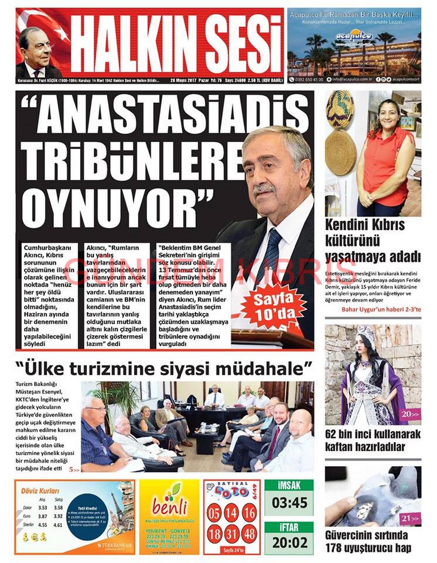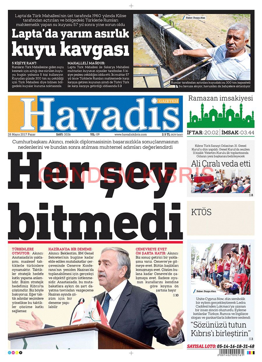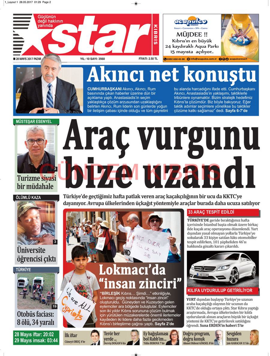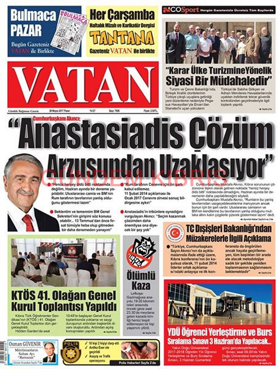KKTC Gazete Manşetleri 28 Mayıs 2017