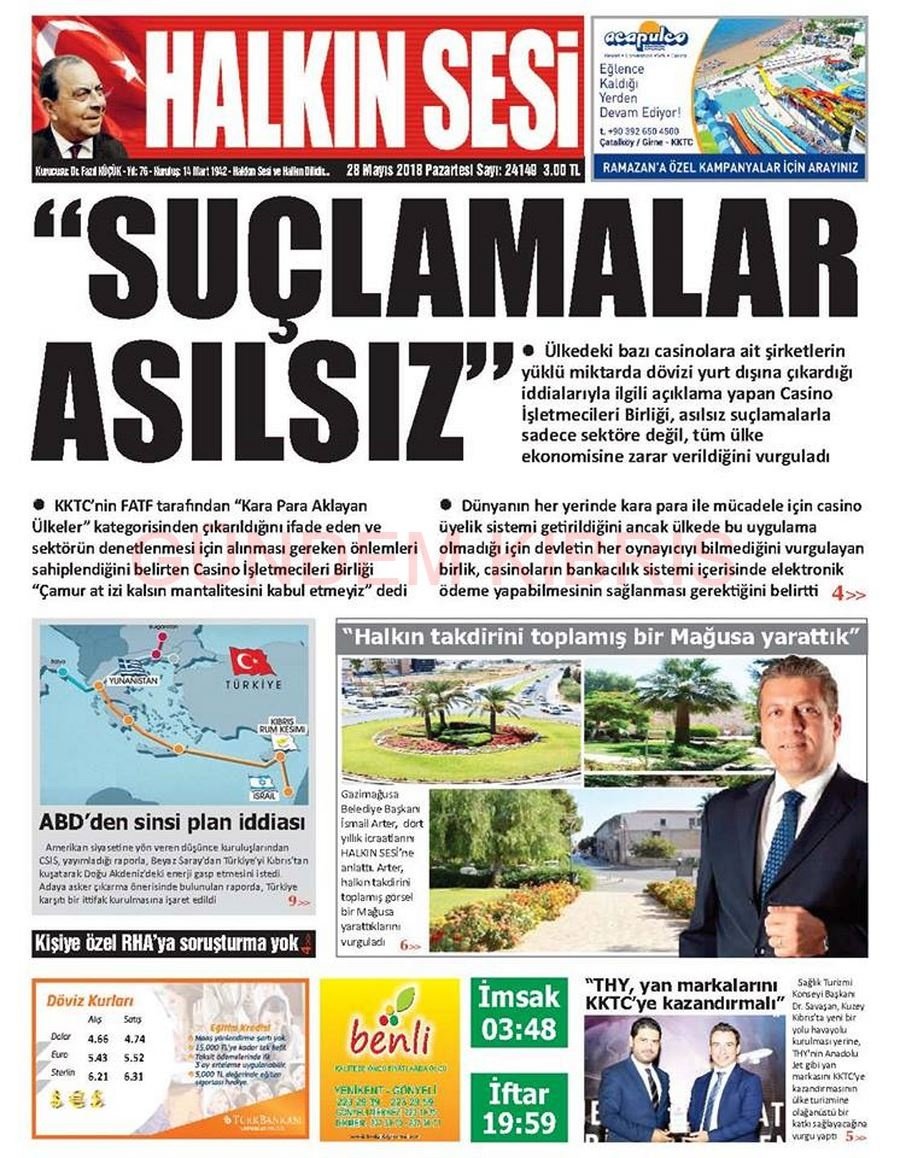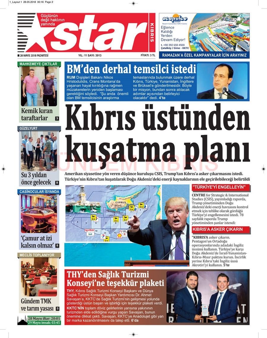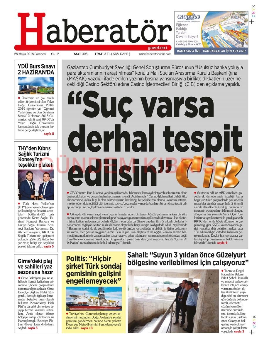 KKTC Gazete Manşetleri 28 Mayıs 2018