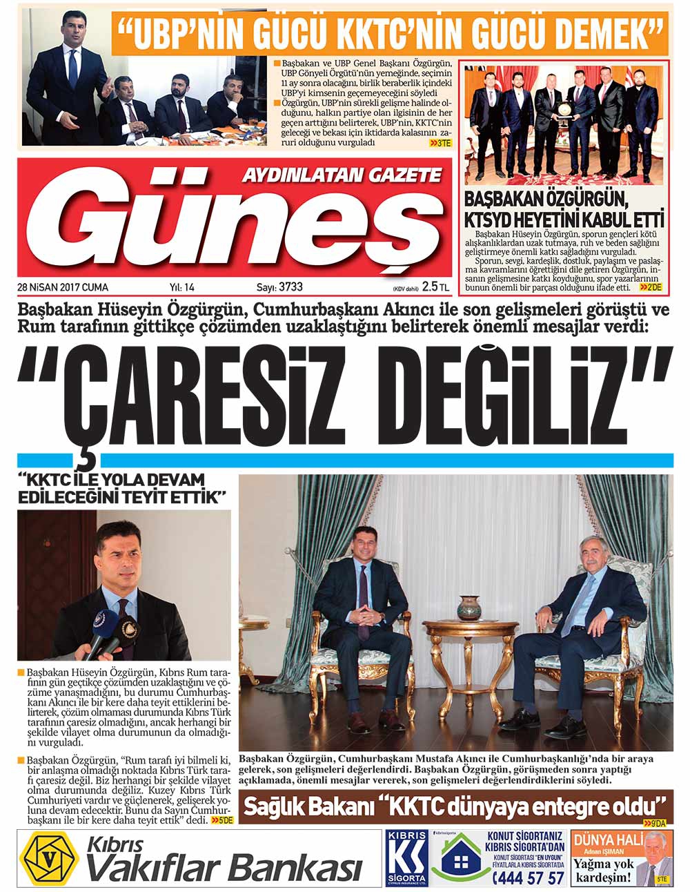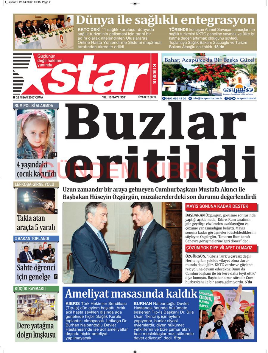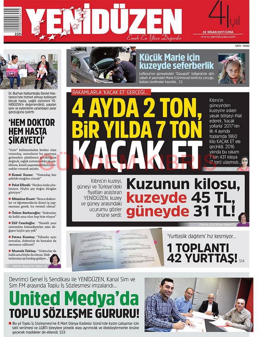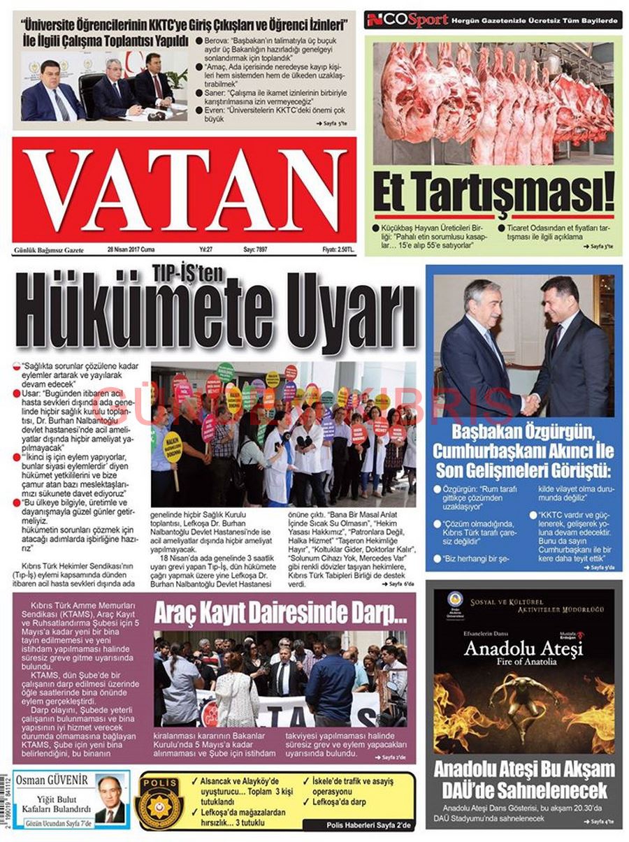 KKTC Gazete Manşetleri 28 Nisan 2017