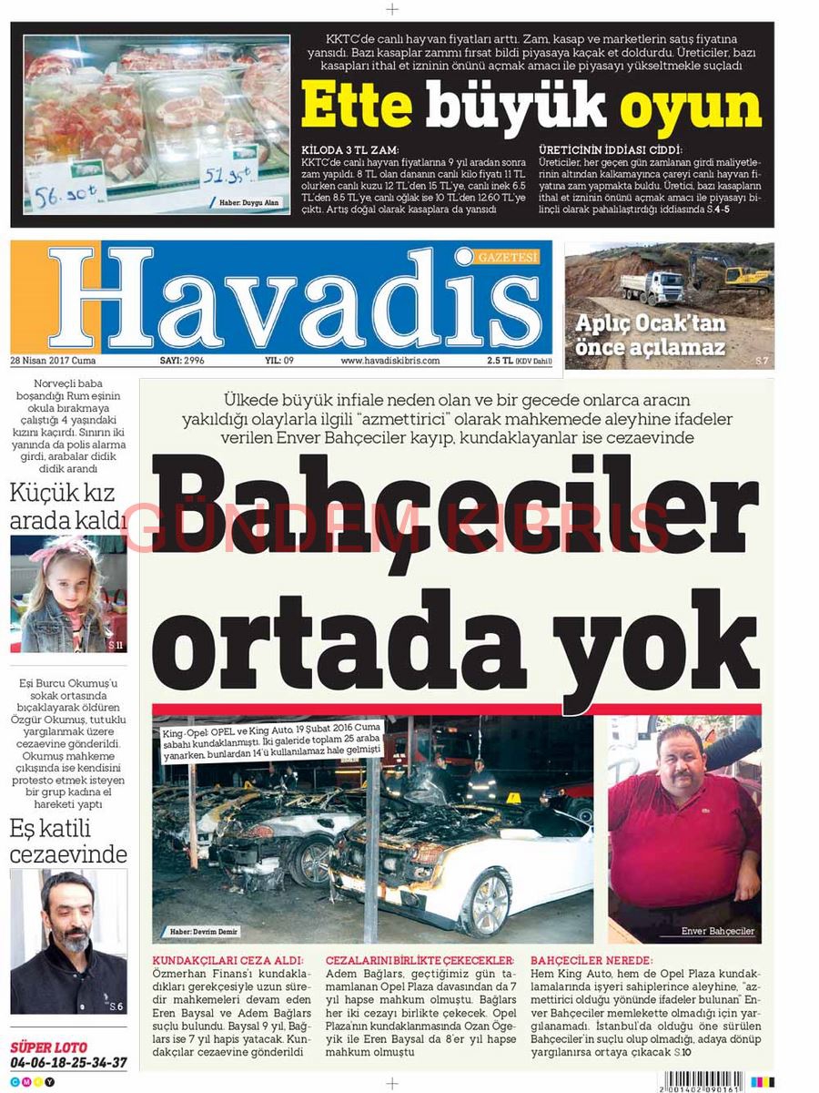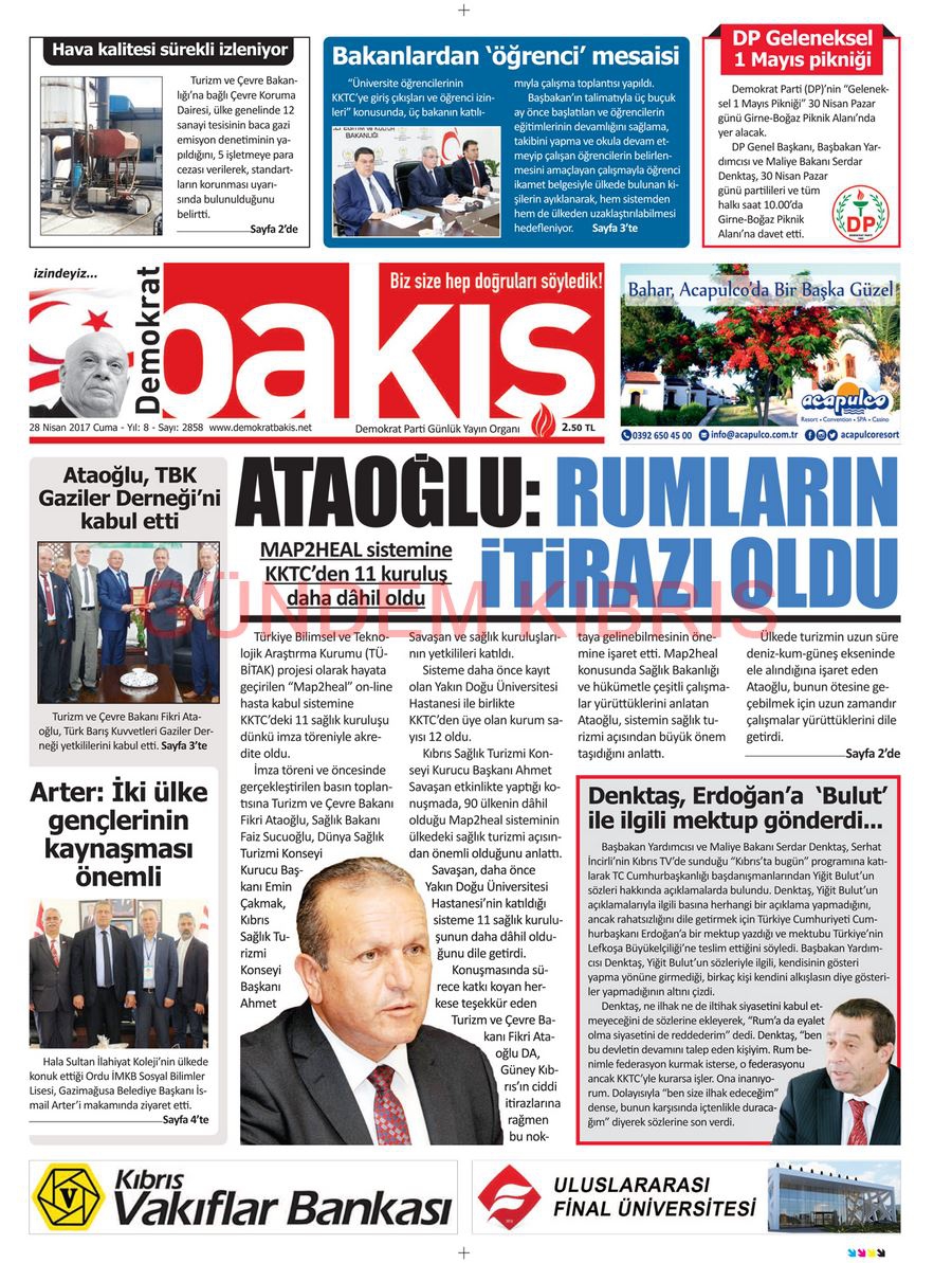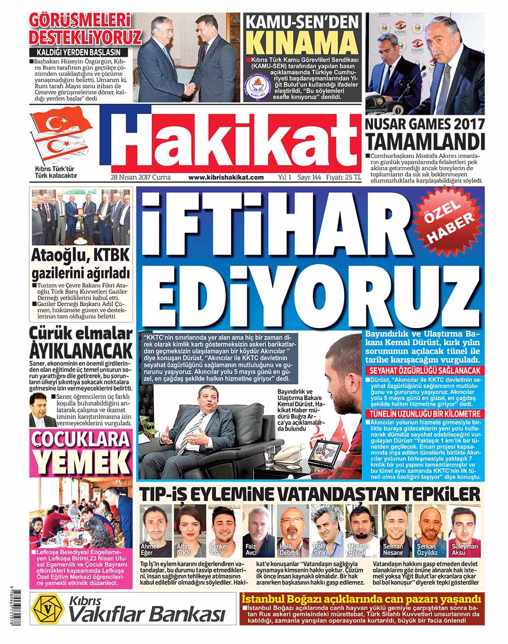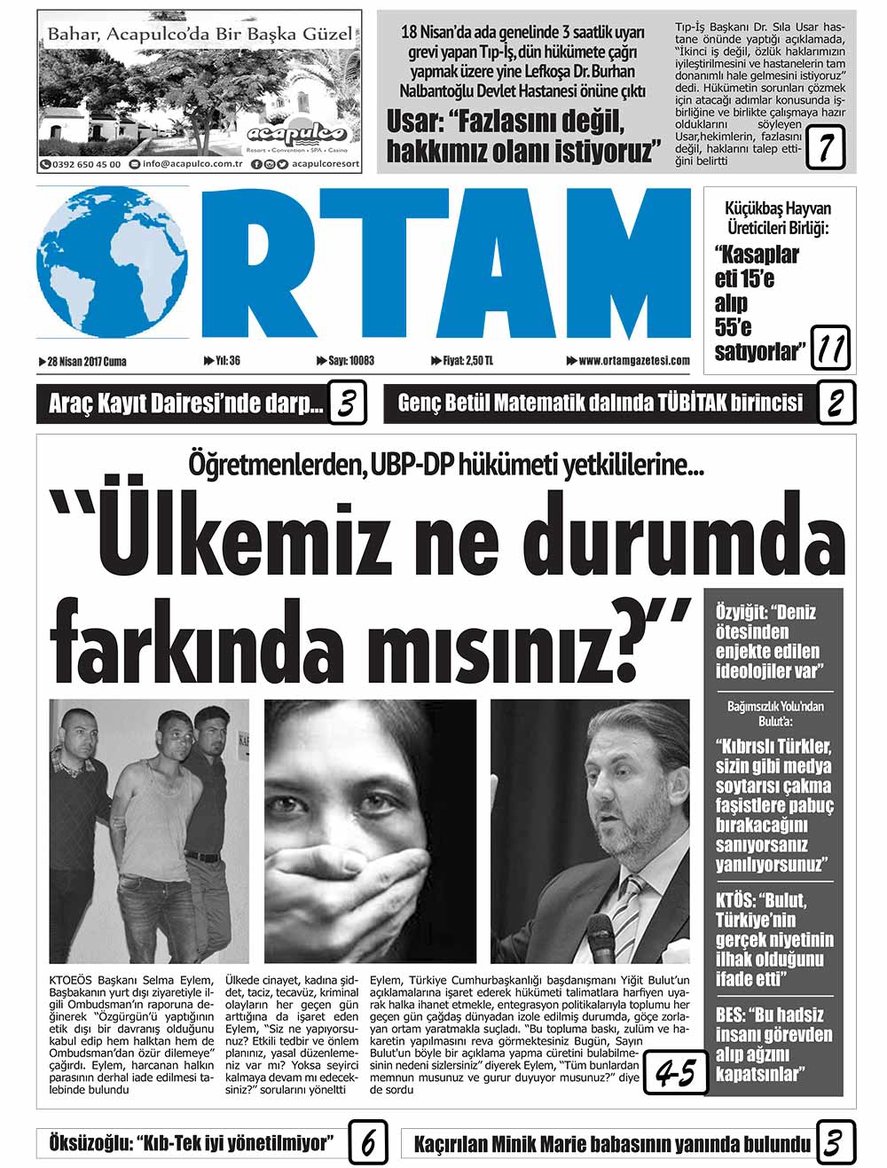 KKTC Gazete Manşetleri 28 Nisan 2017