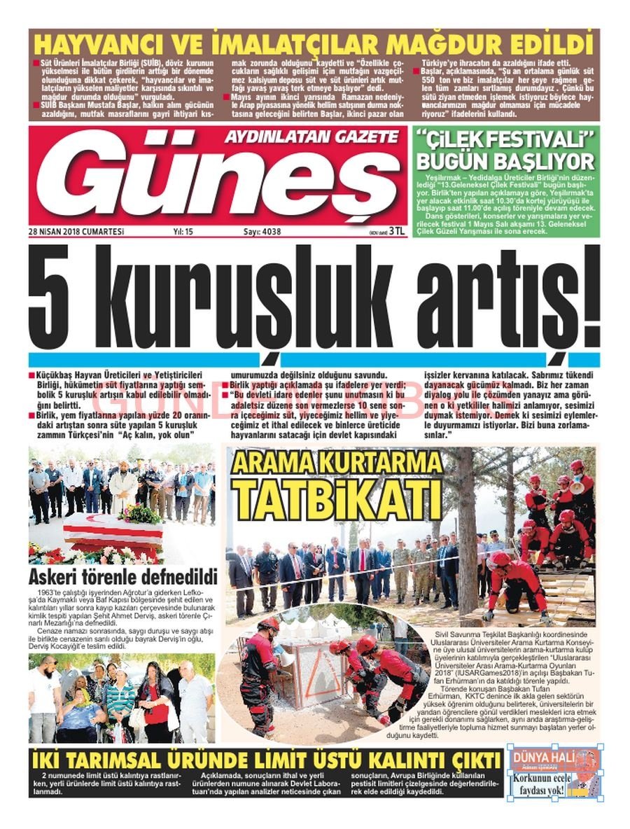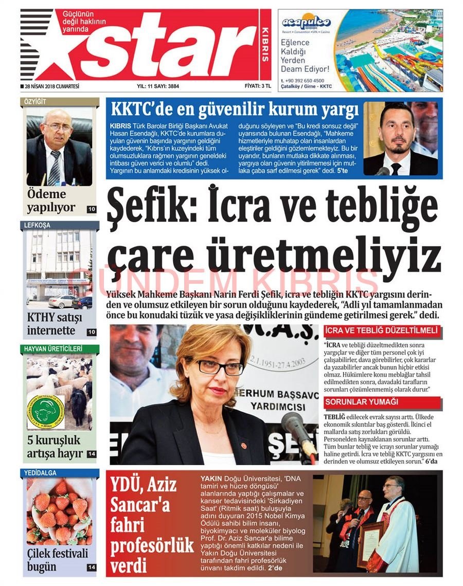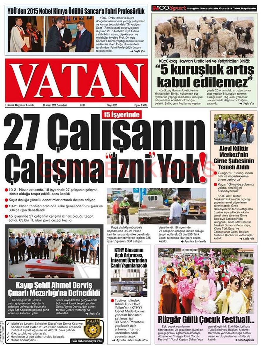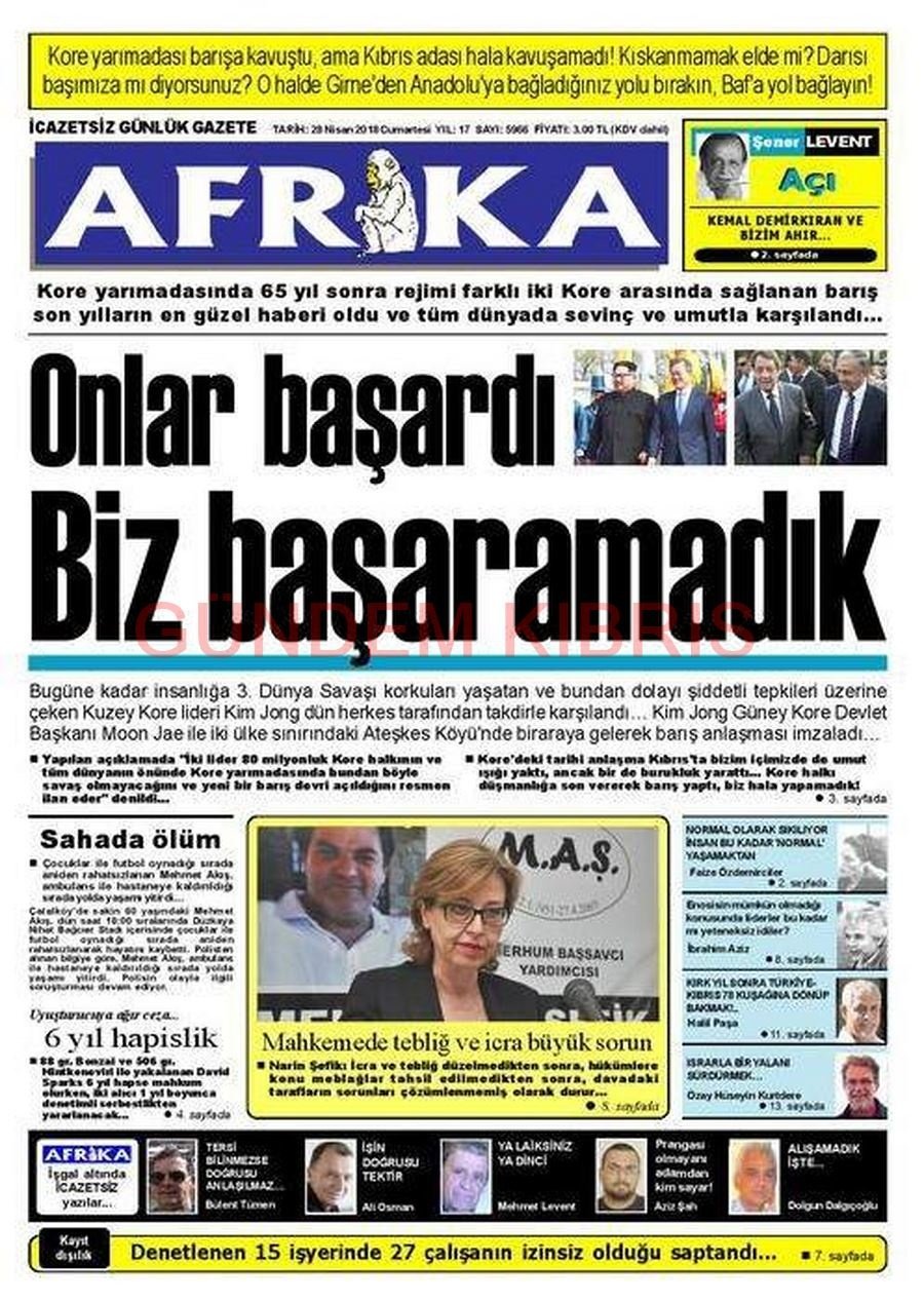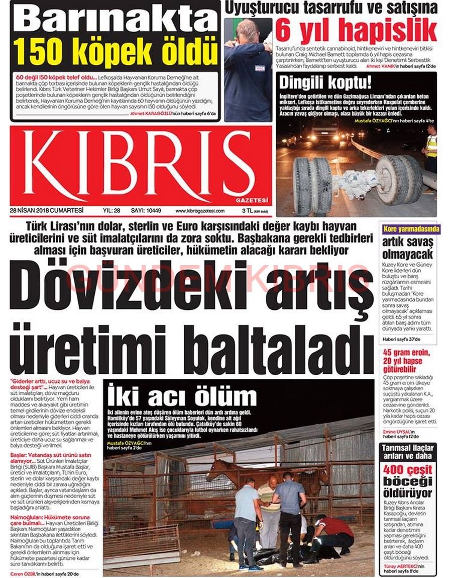 KKTC Gazete Manşetleri 28 Nisan 2018