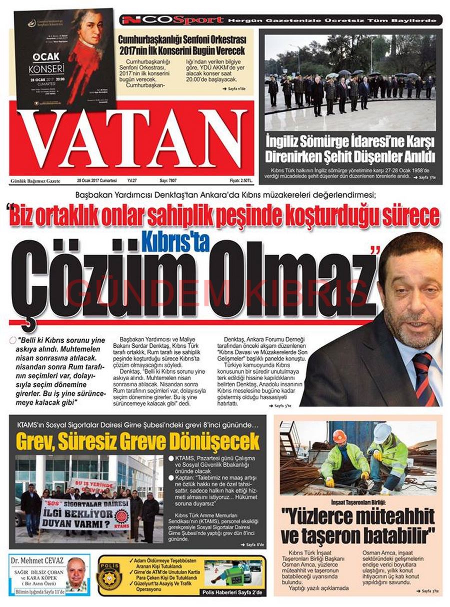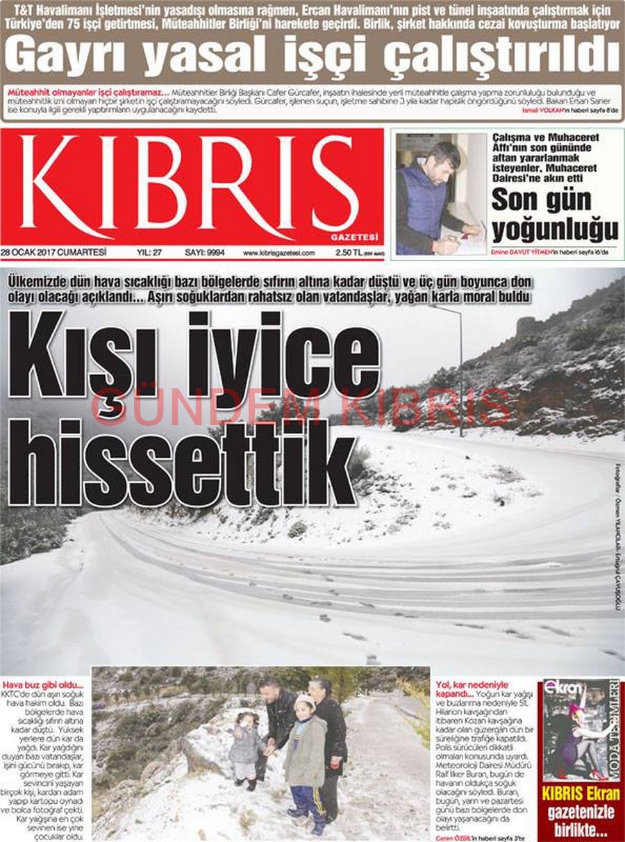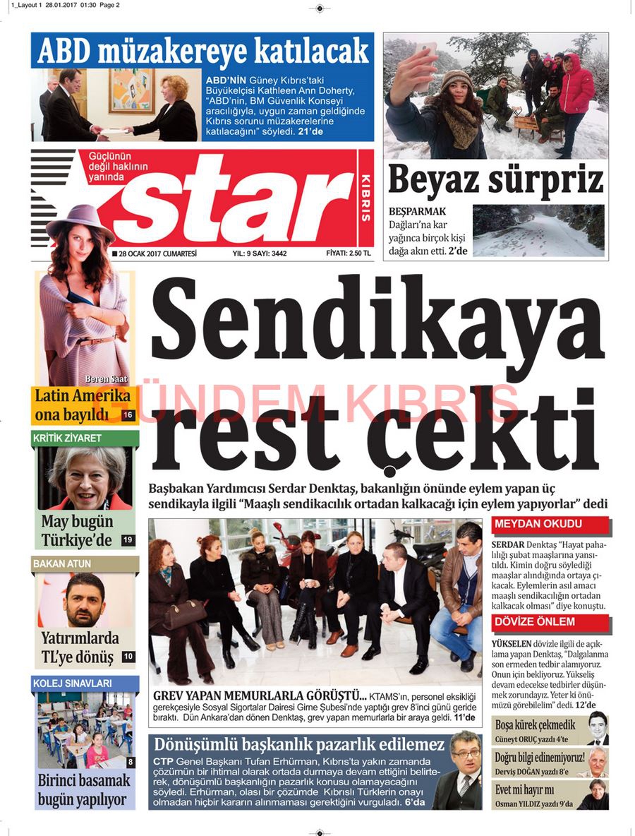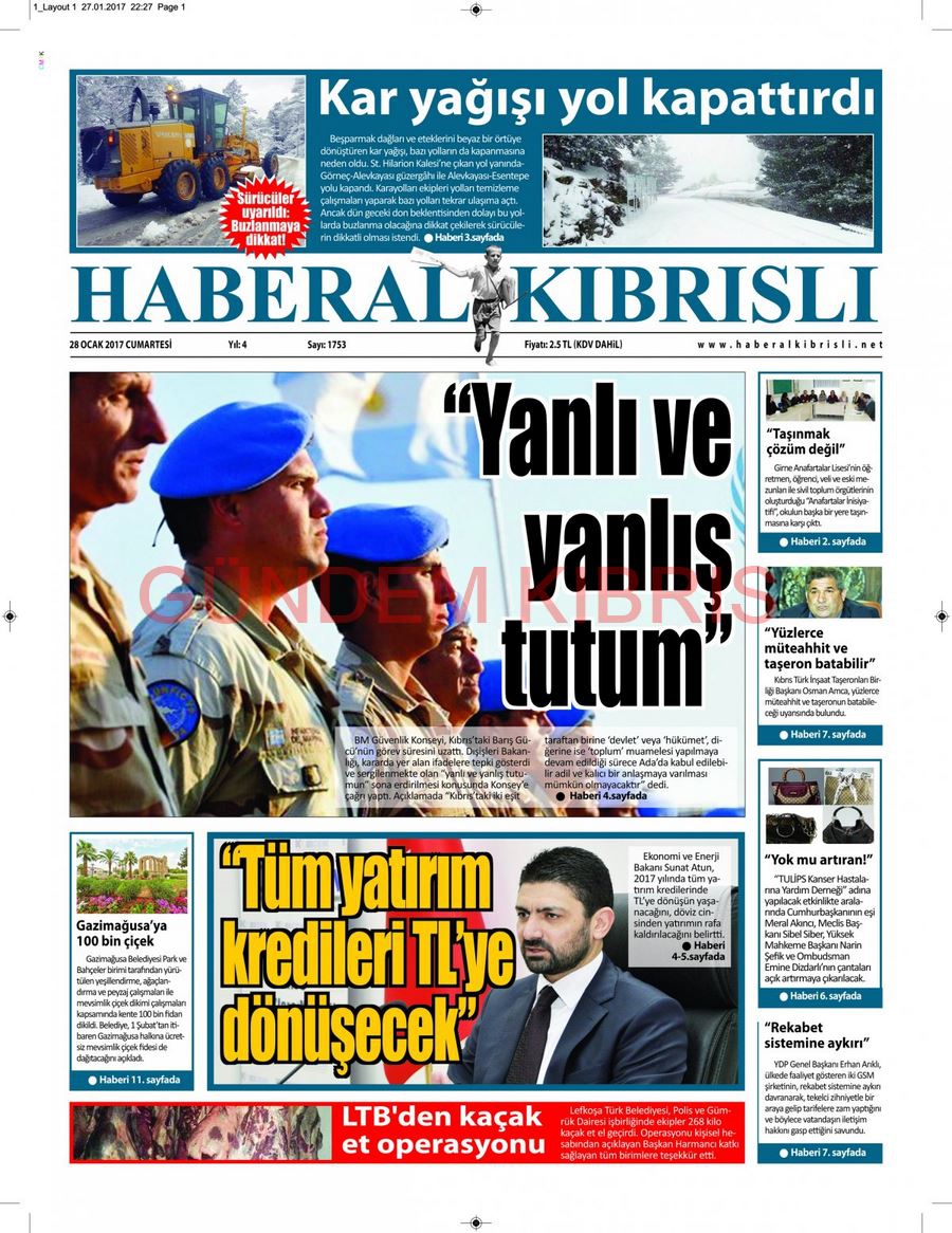 KKTC Gazete Manşetleri 28 Ocak 2017