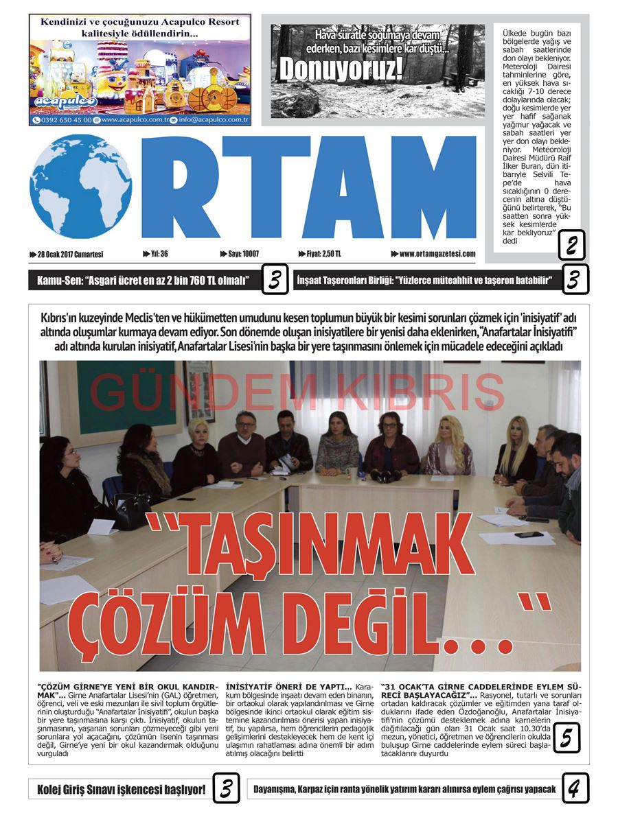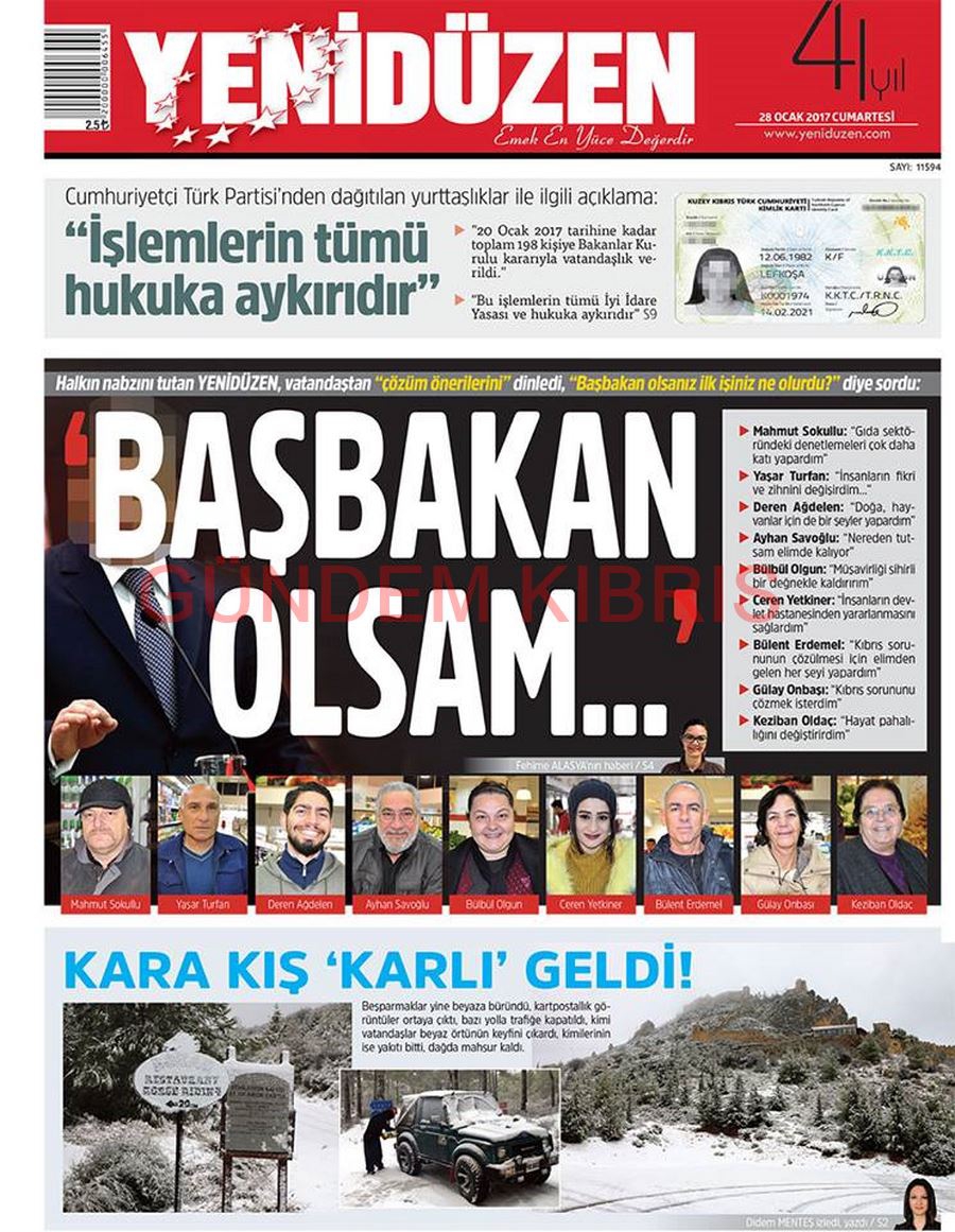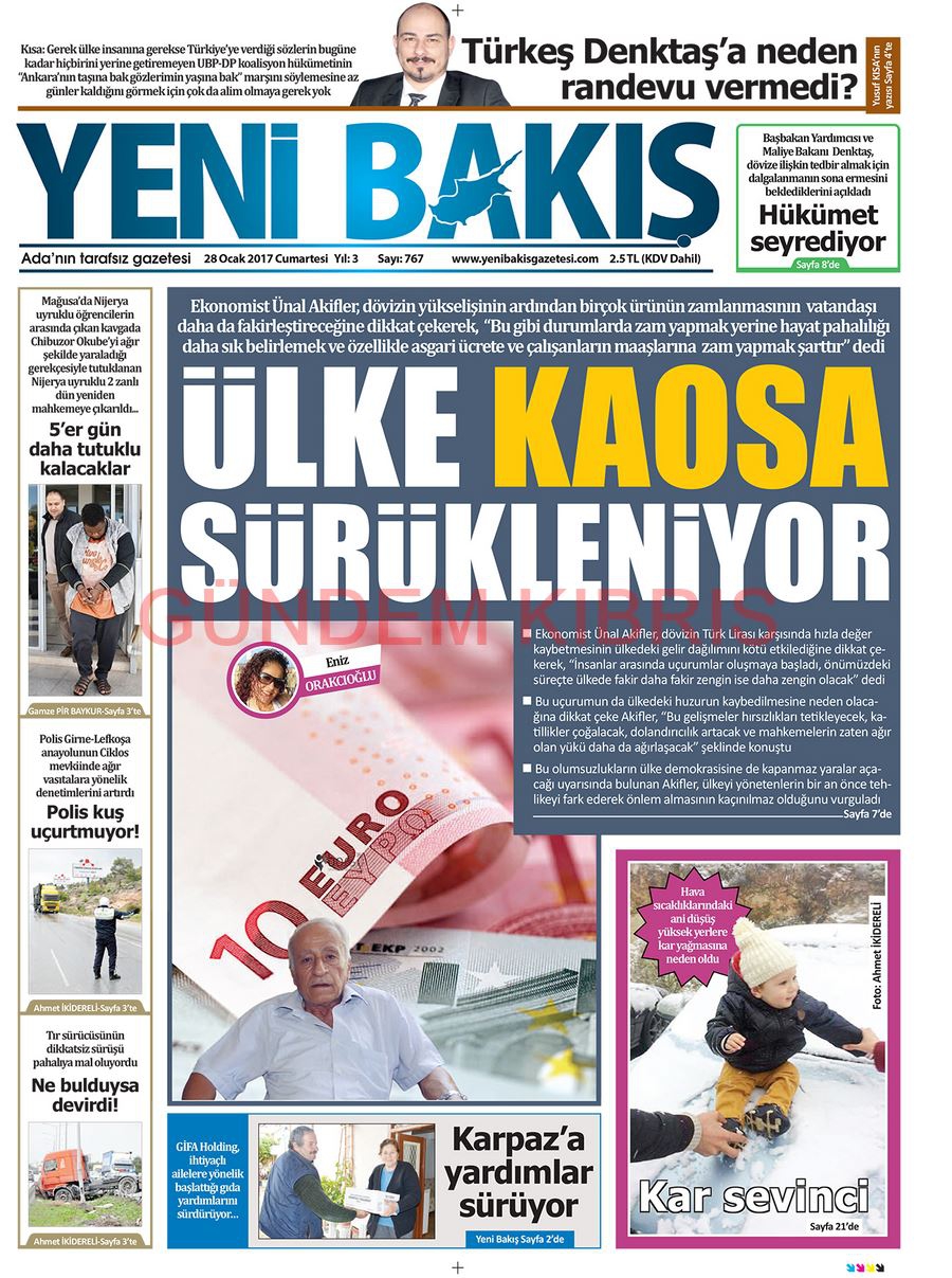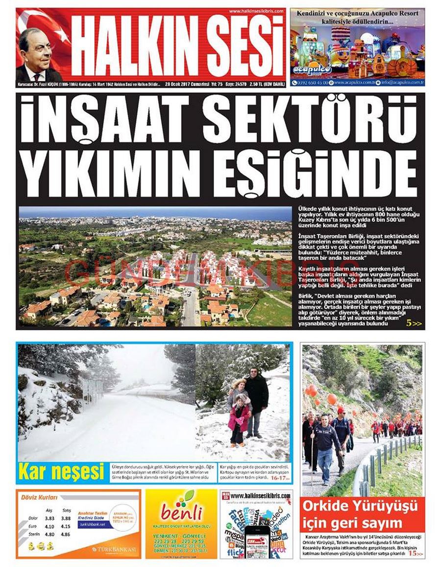 KKTC Gazete Manşetleri 28 Ocak 2017