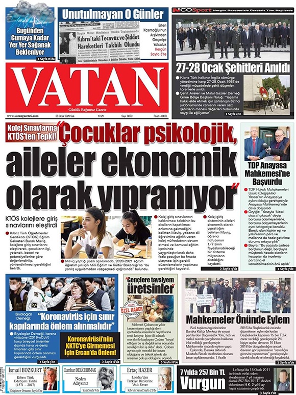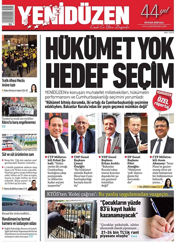 KKTC Gazete Manşetleri 28 Ocak 2020