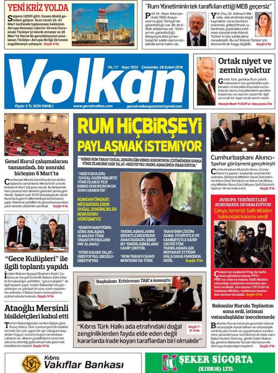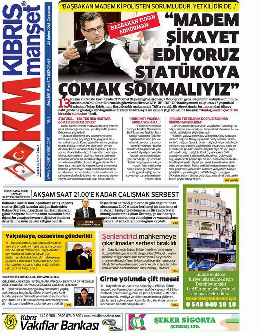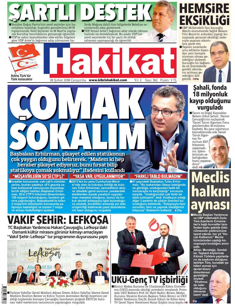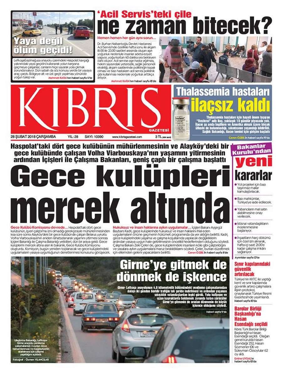 KKTC Gazete Manşetleri 28 Şubat 2018