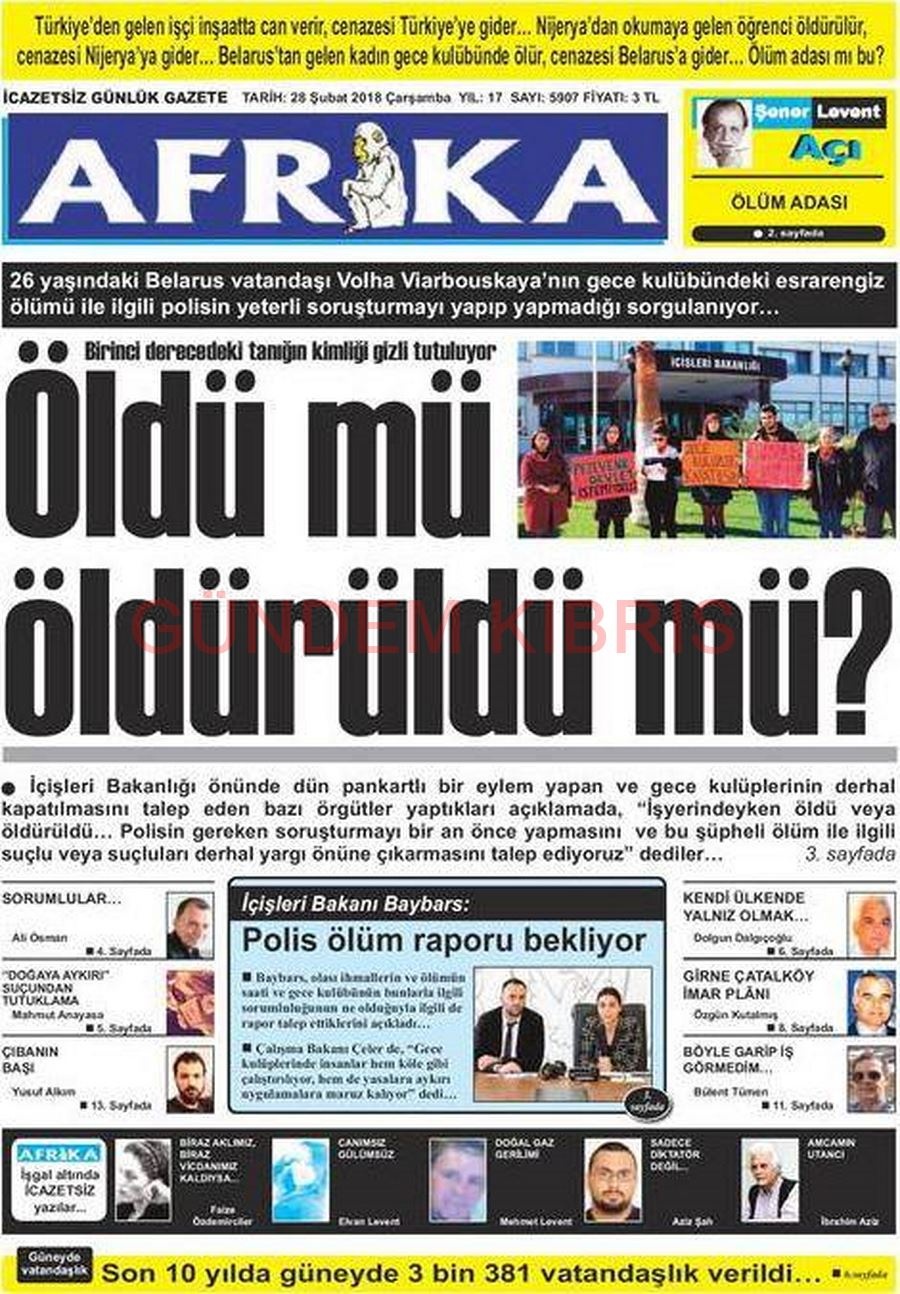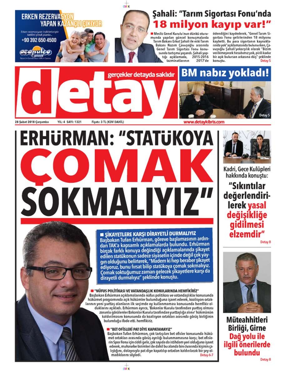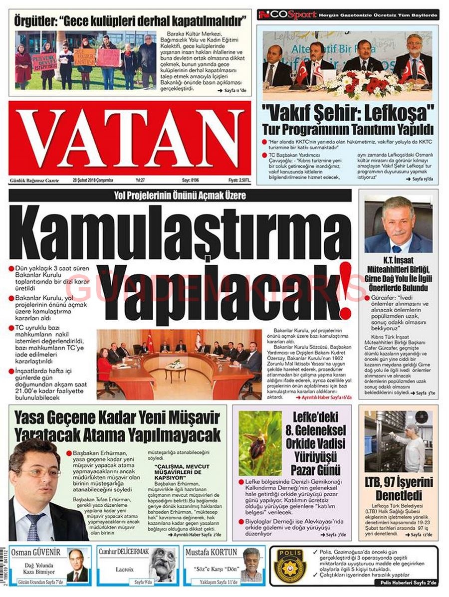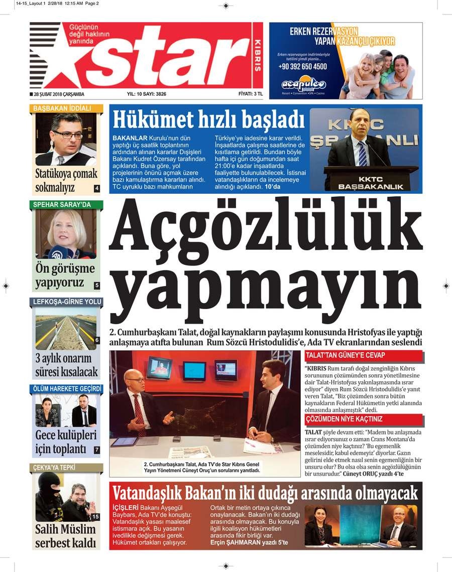 KKTC Gazete Manşetleri 28 Şubat 2018