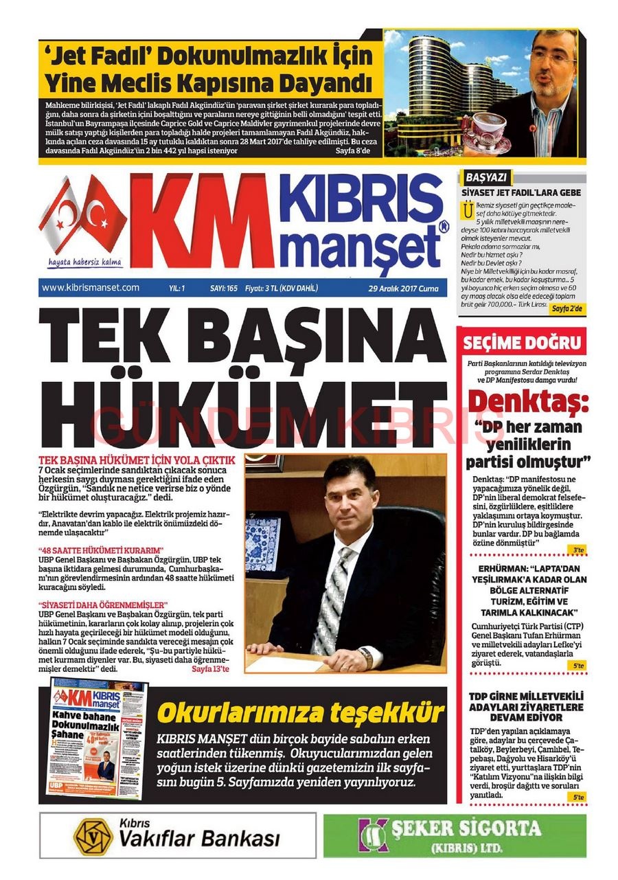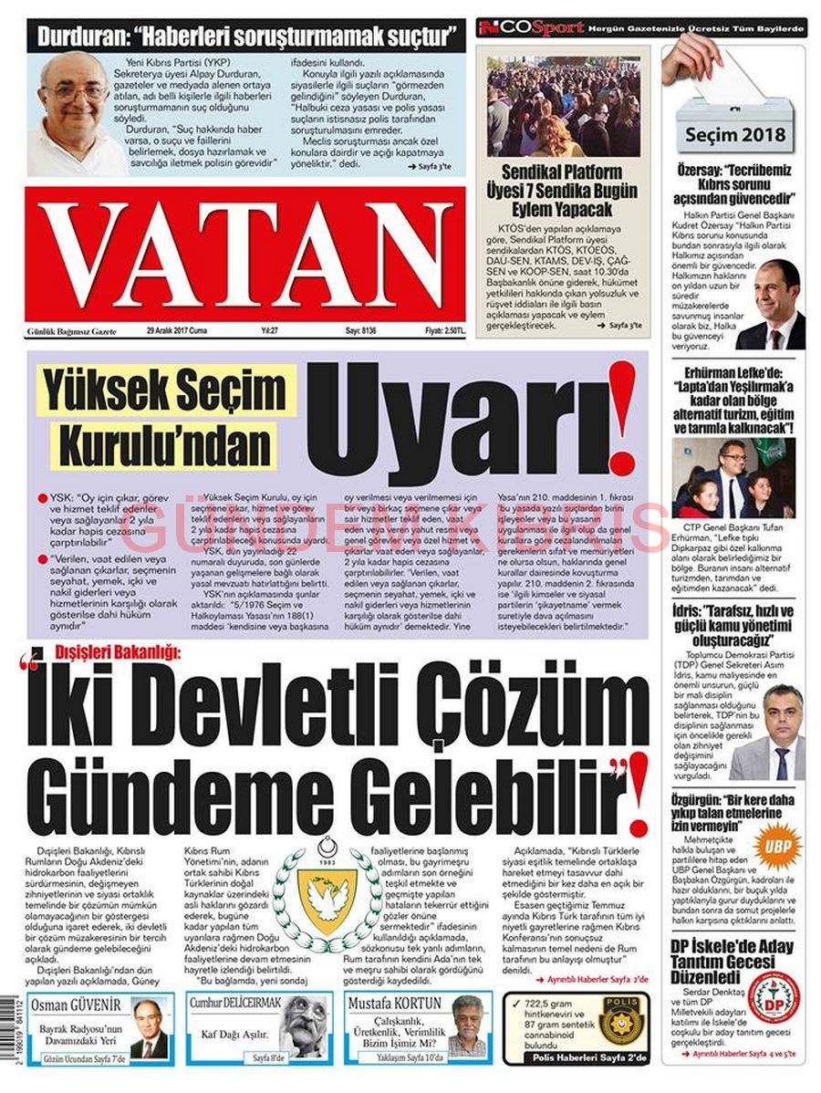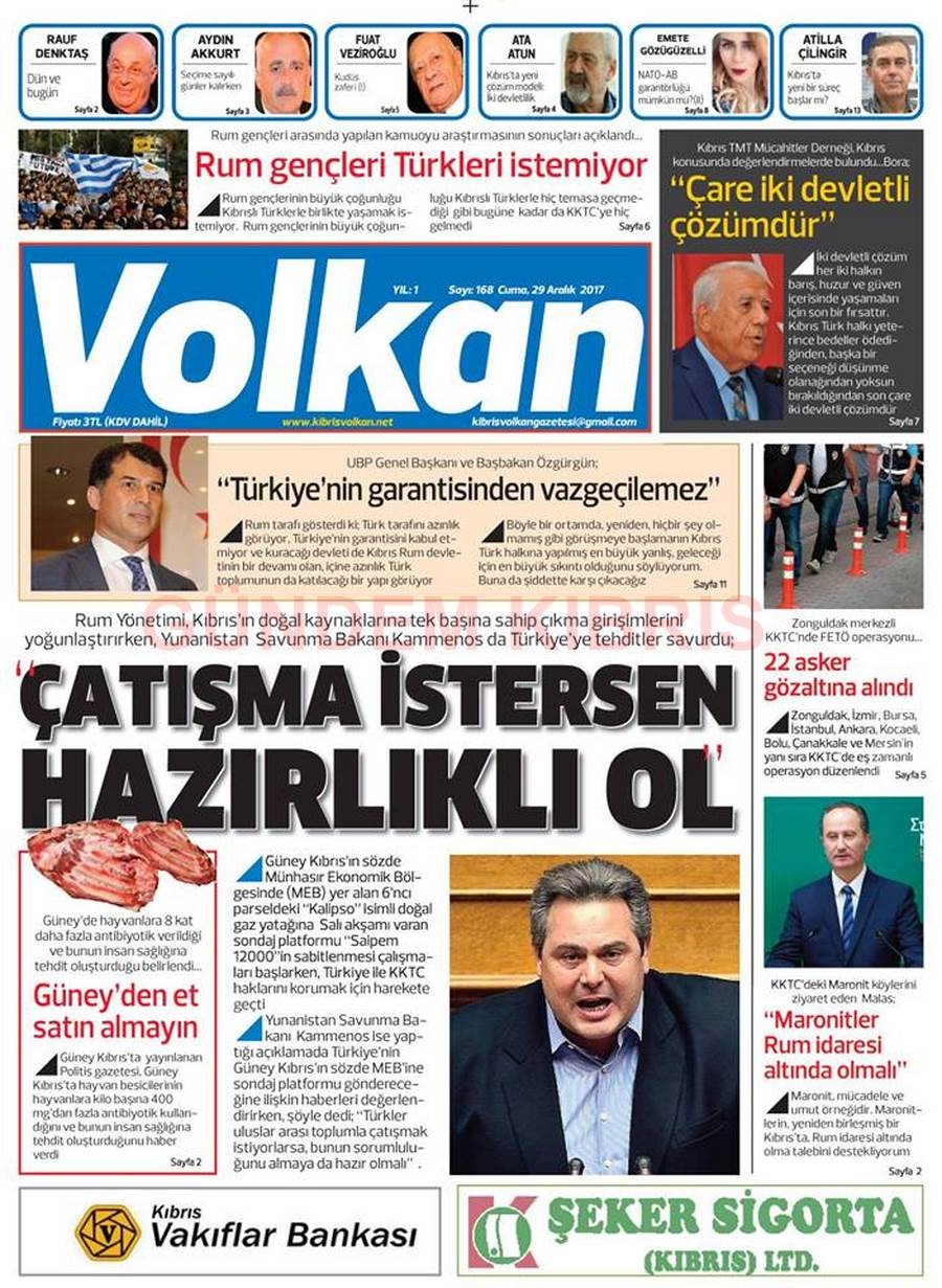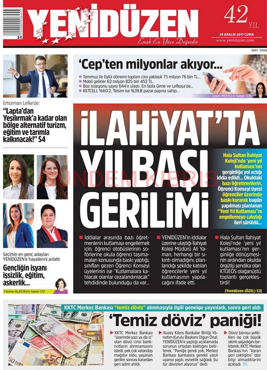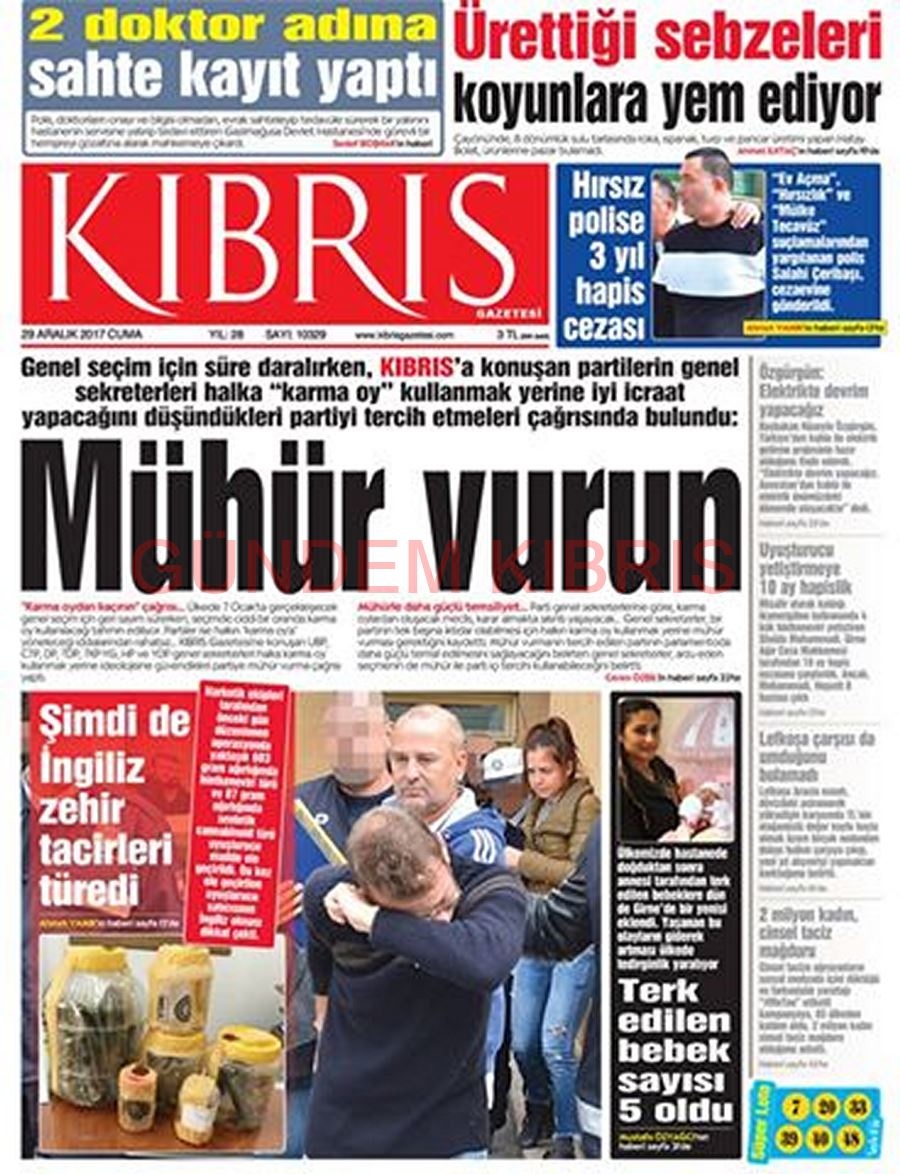 KKTC Gazete Manşetleri 29 Aralık 2017