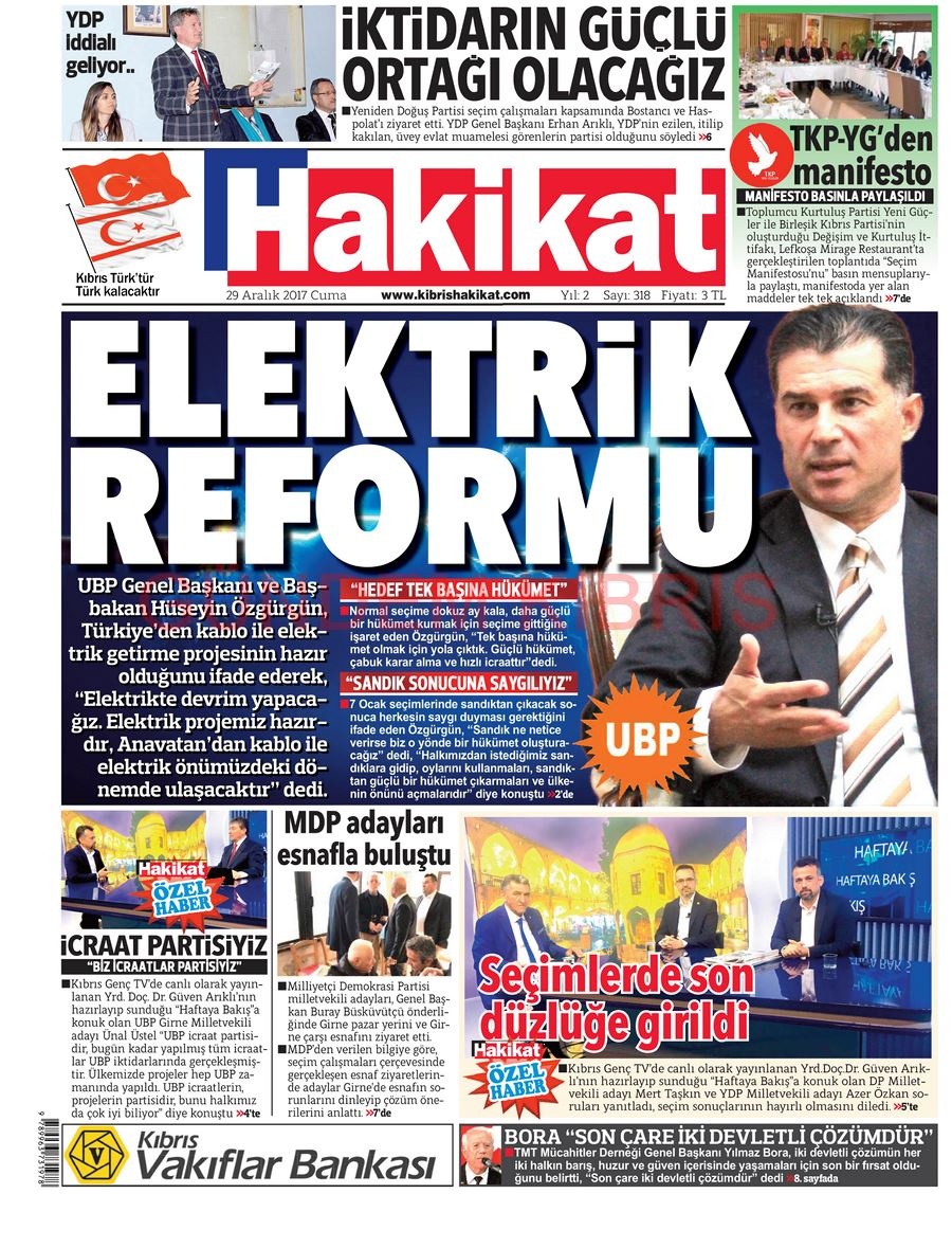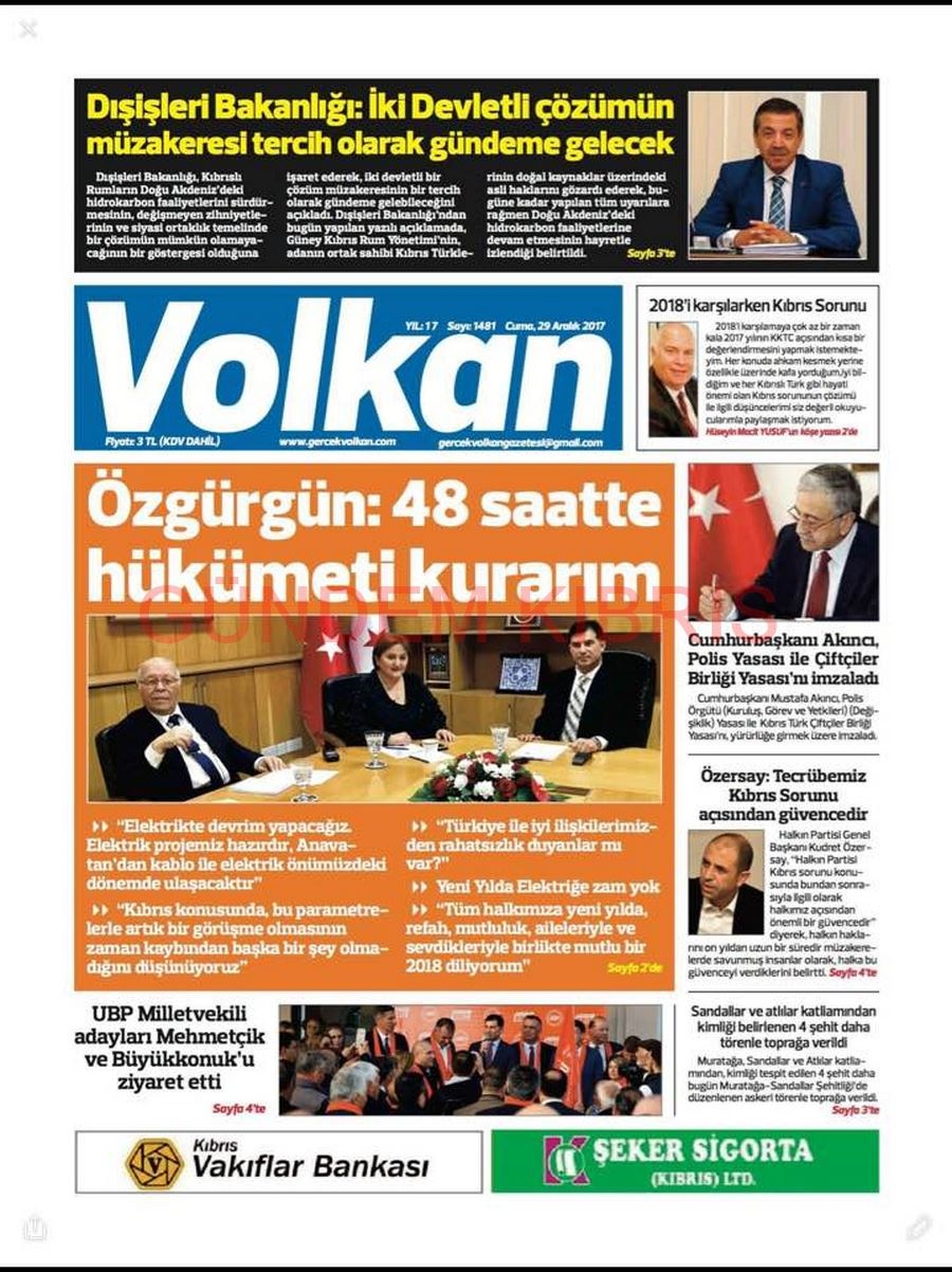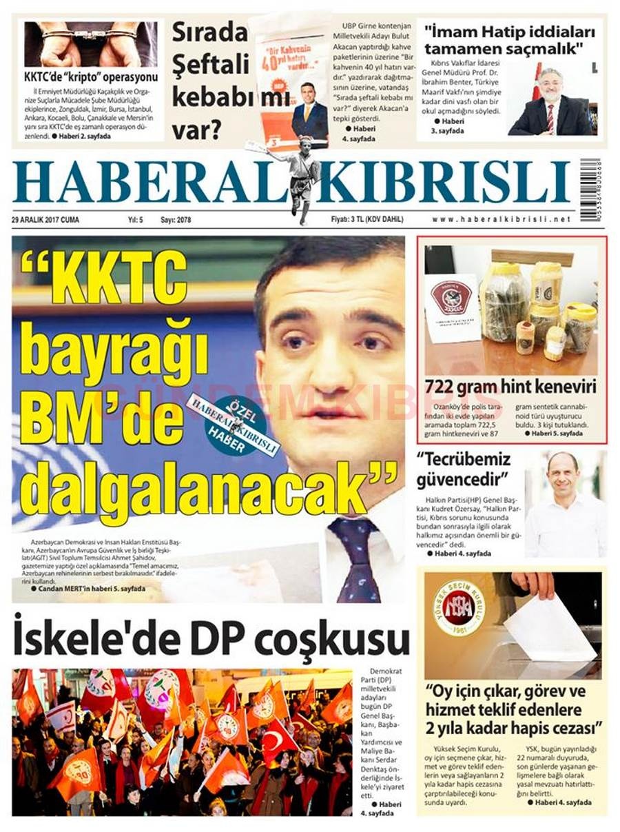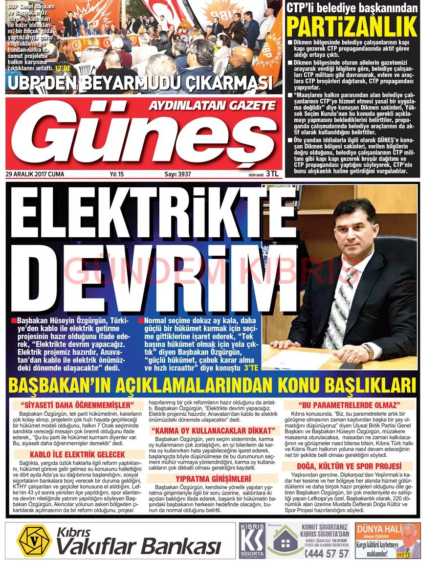 KKTC Gazete Manşetleri 29 Aralık 2017