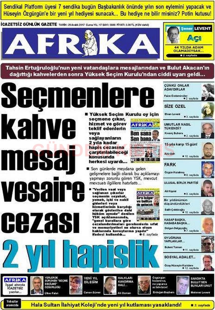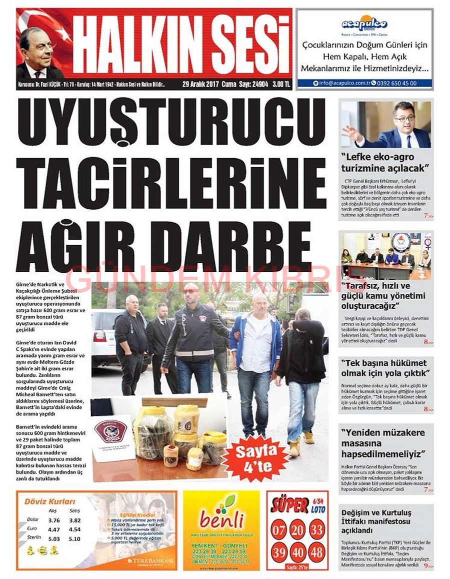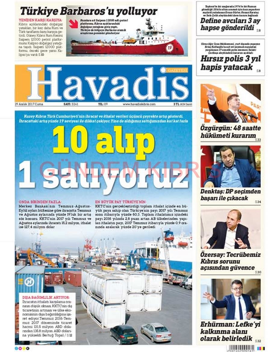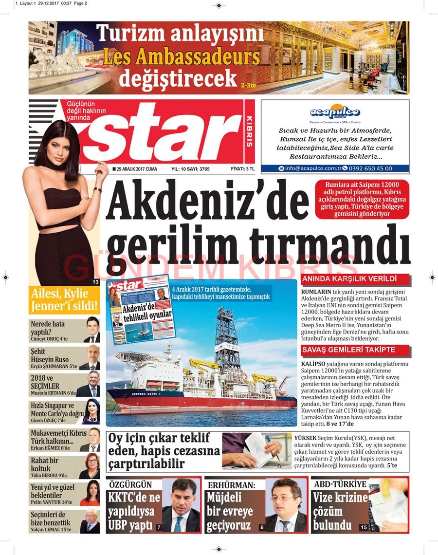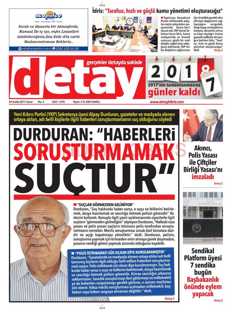 KKTC Gazete Manşetleri 29 Aralık 2017
