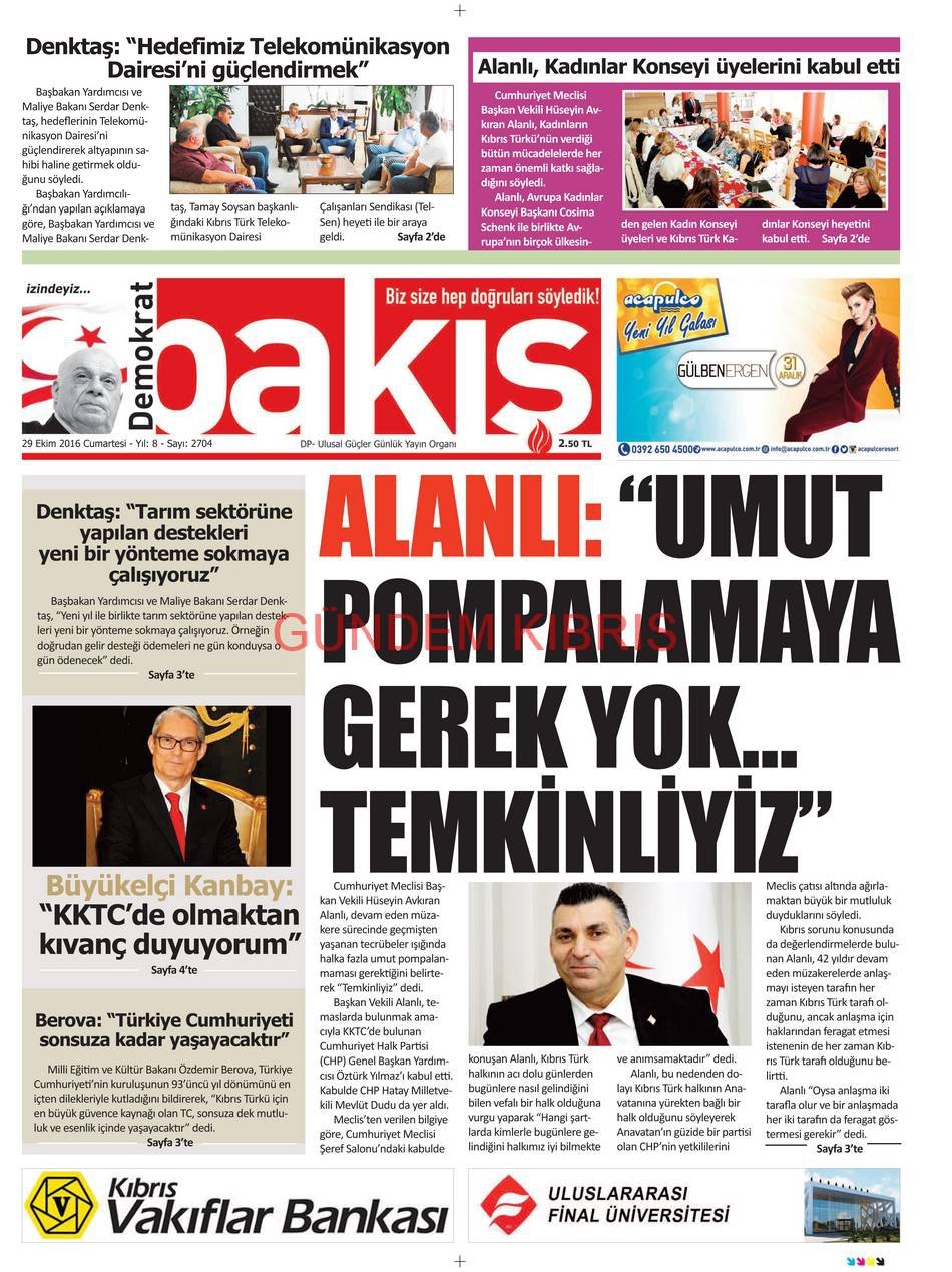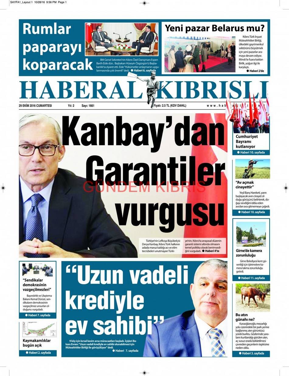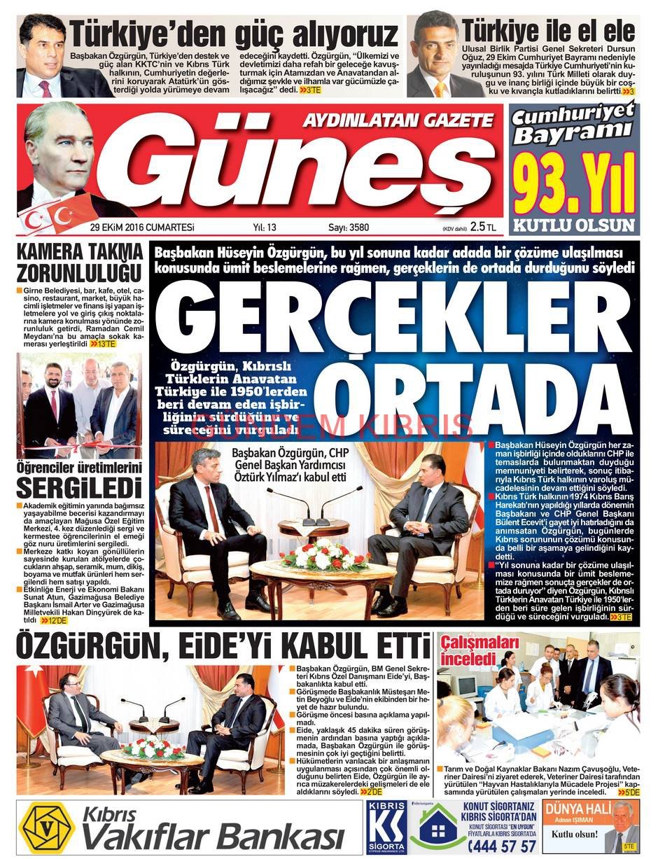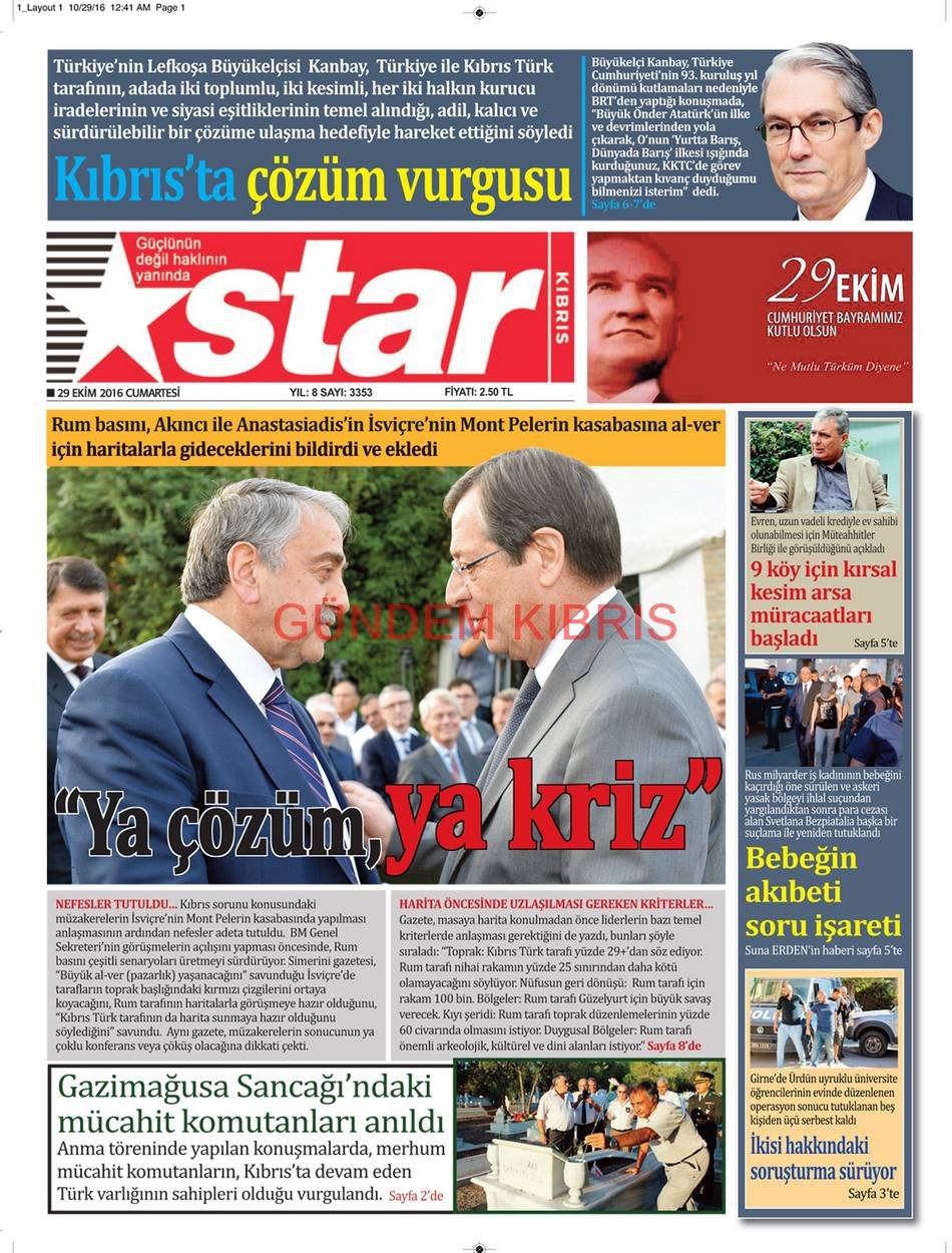KKTC Gazete Manşetleri 29 Ekim 2016