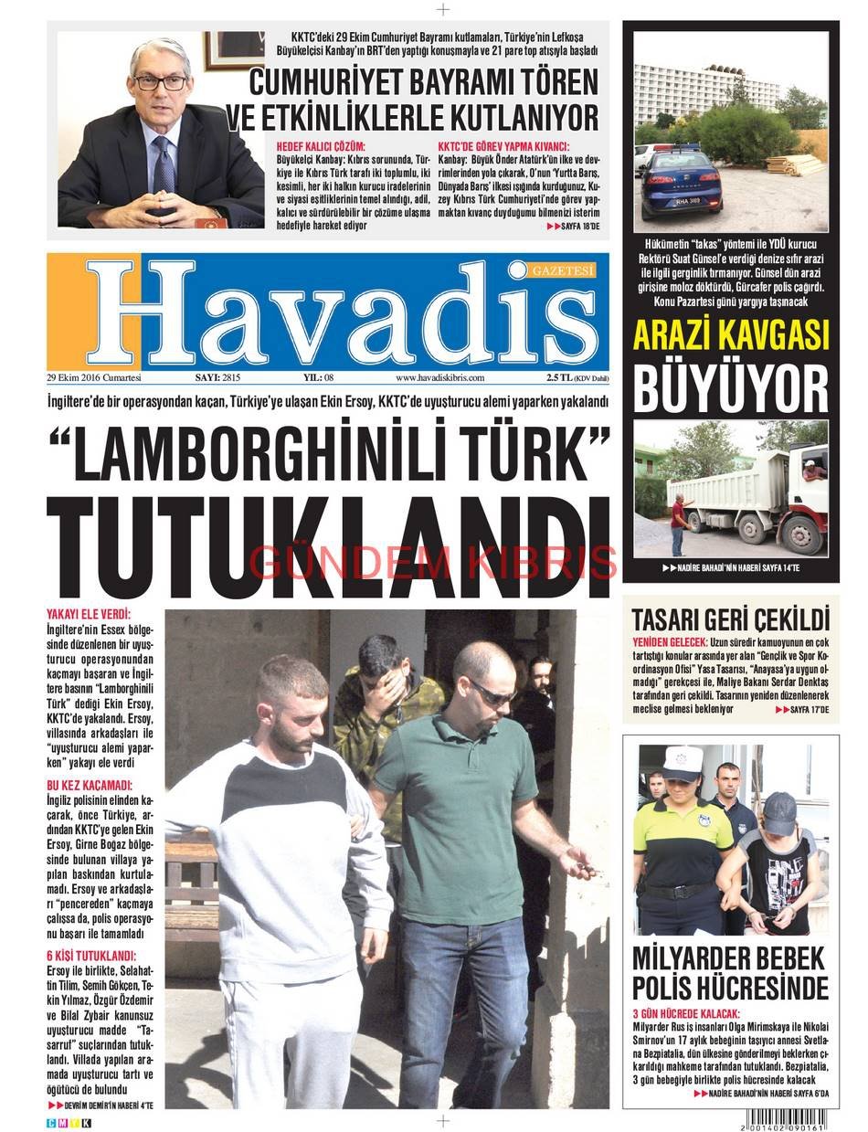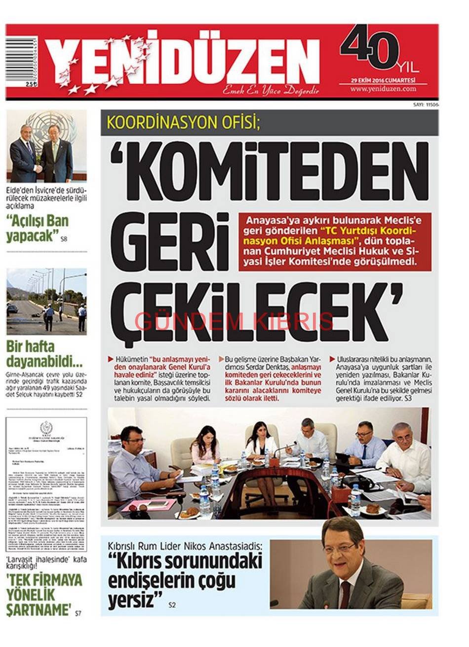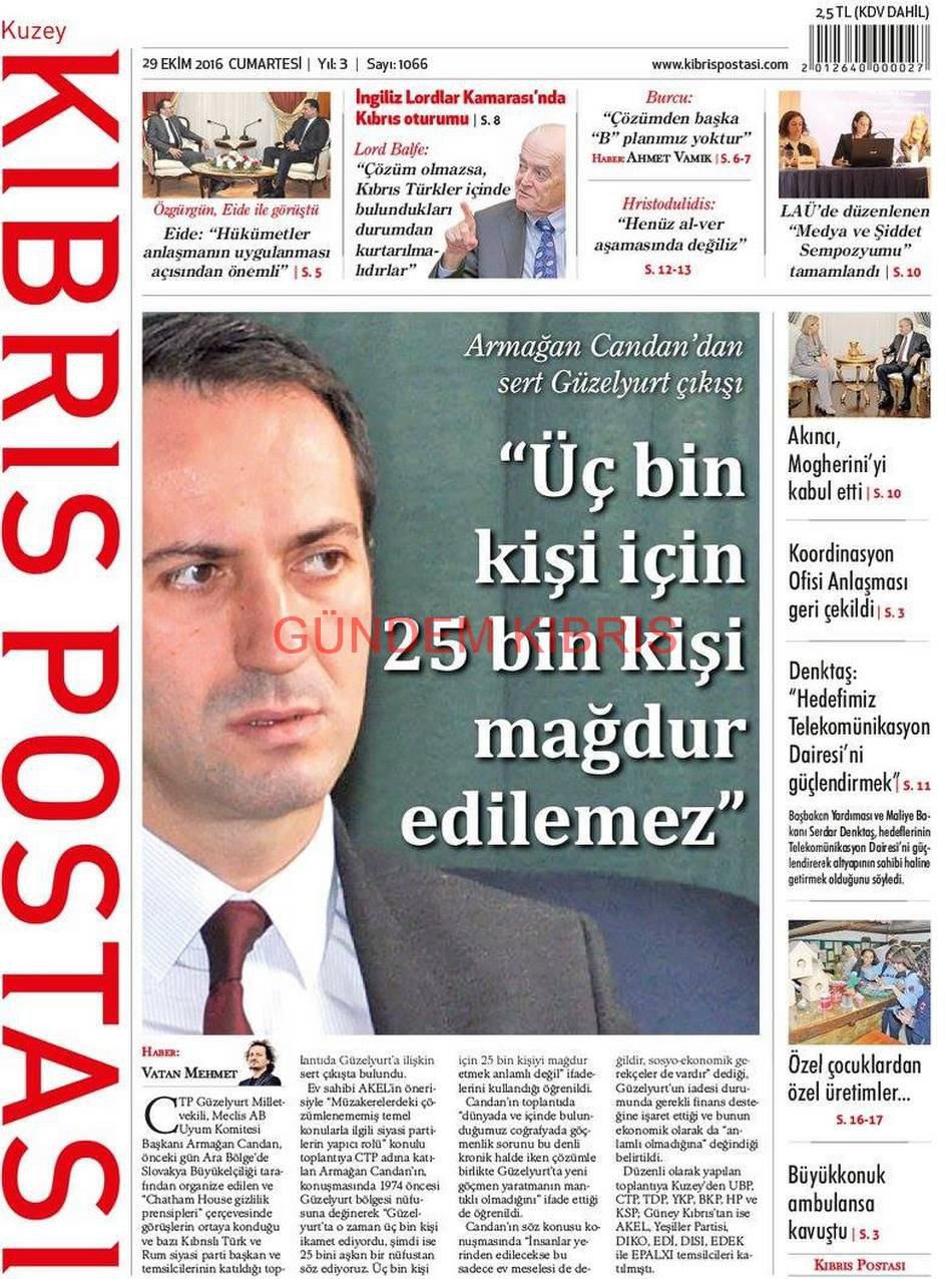 KKTC Gazete Manşetleri 29 Ekim 2016
