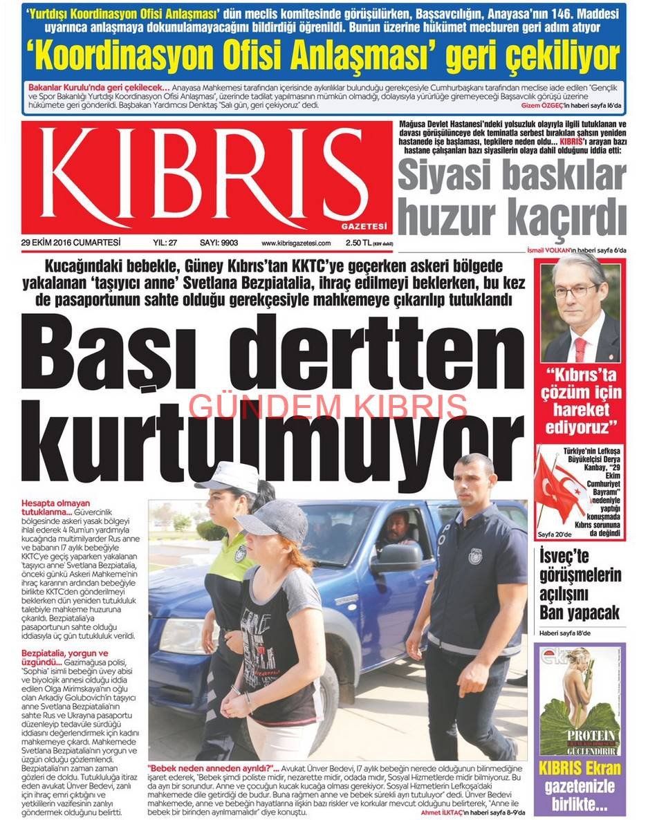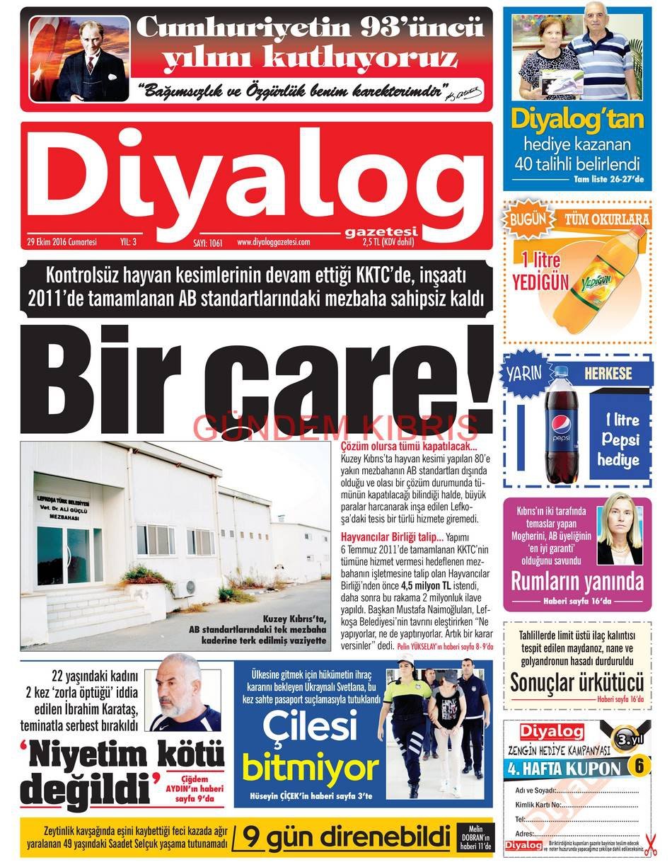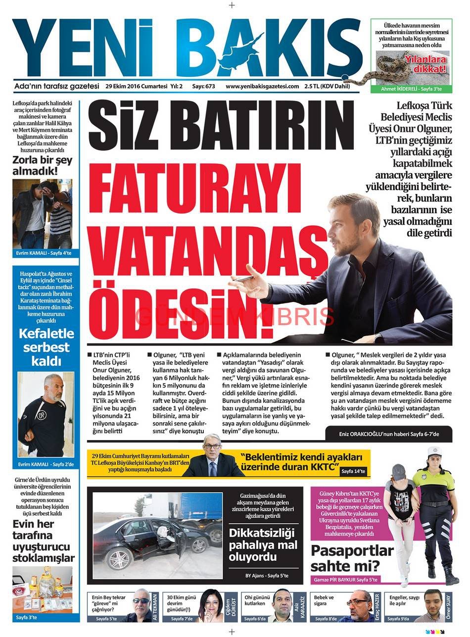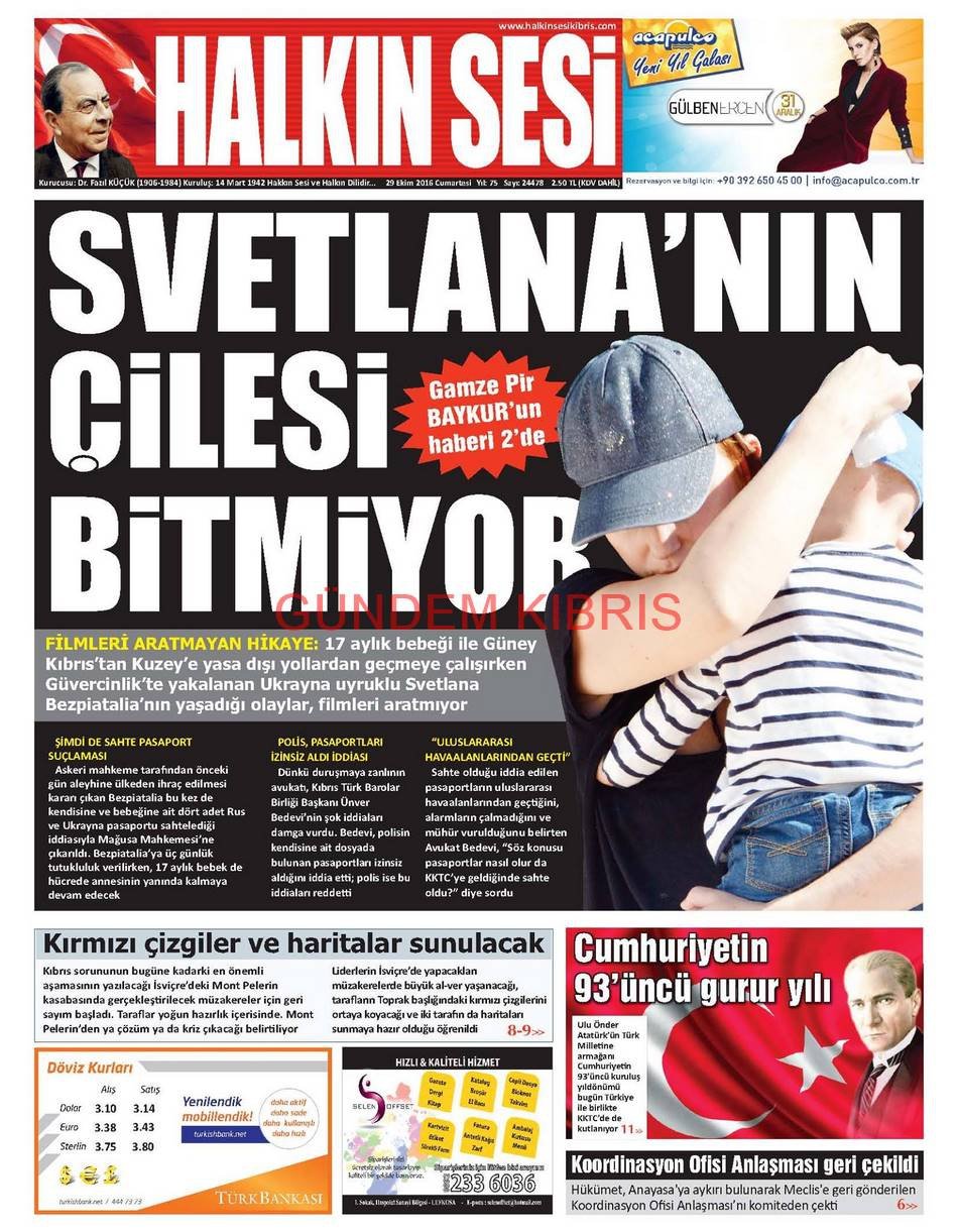 KKTC Gazete Manşetleri 29 Ekim 2016