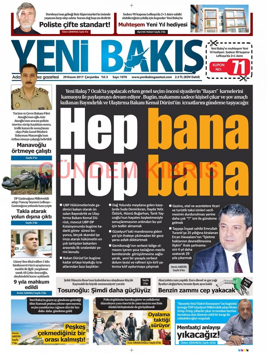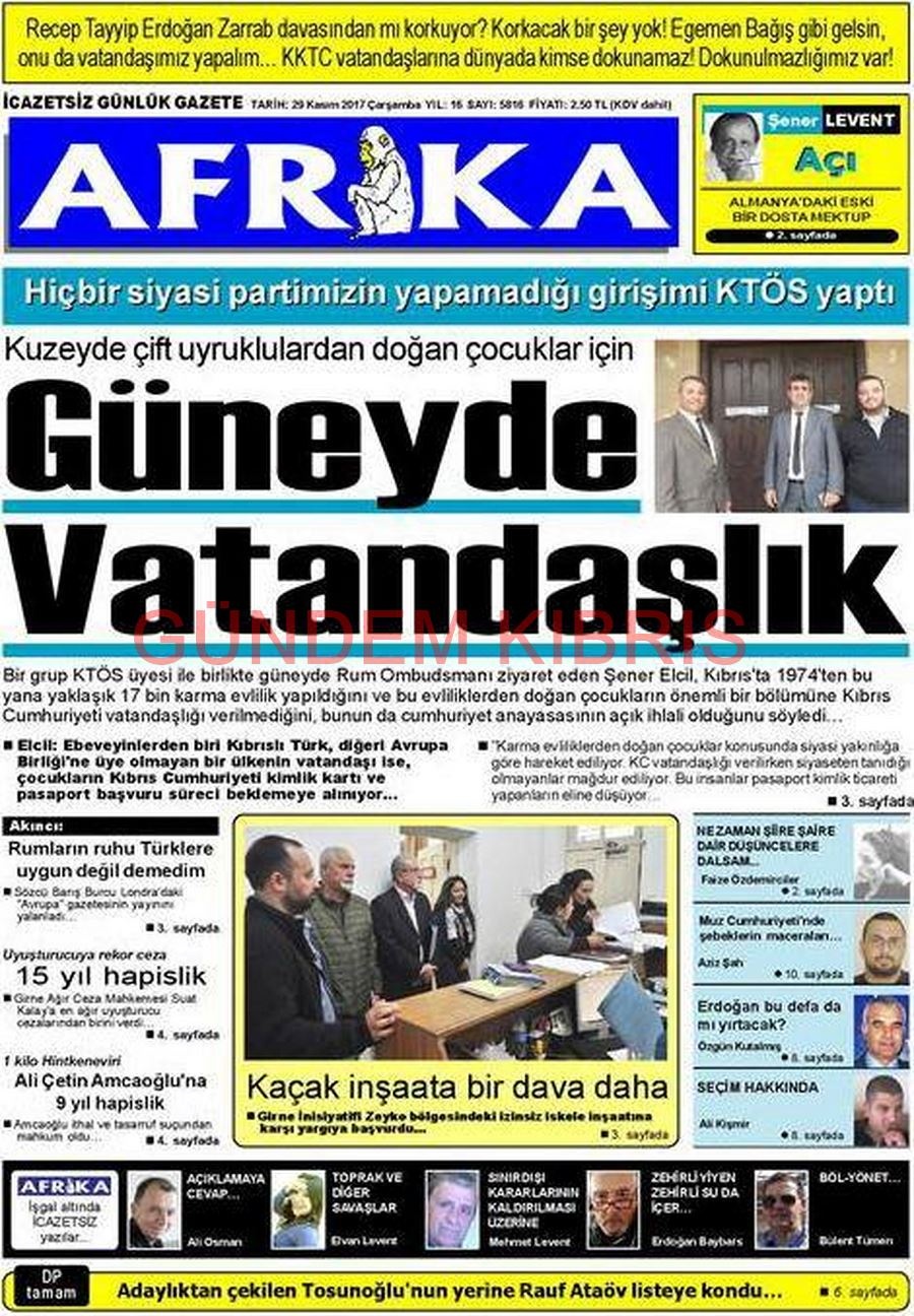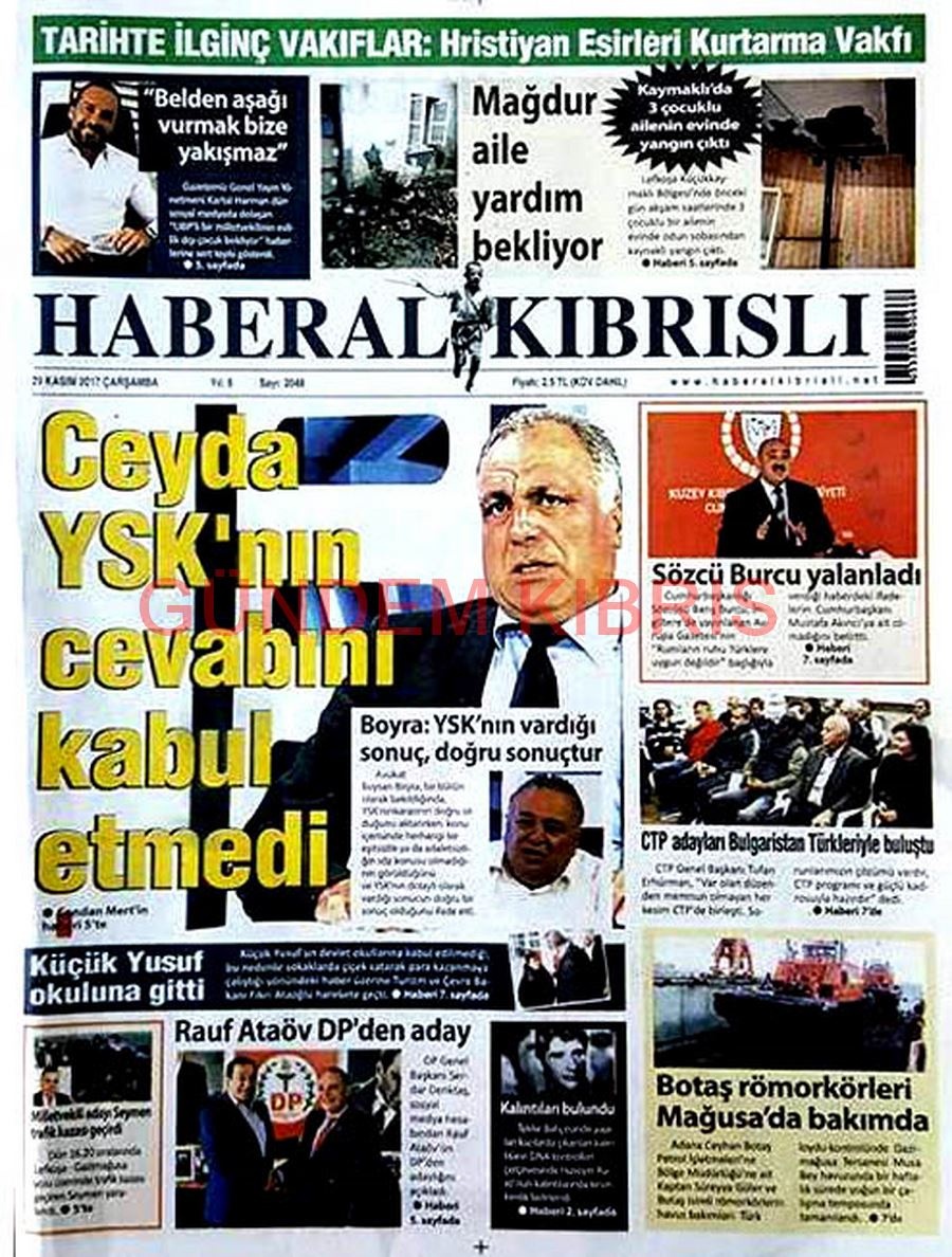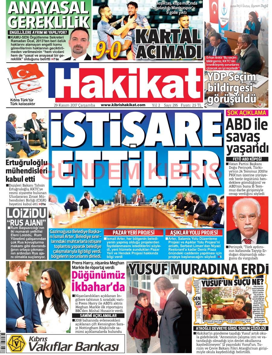KKTC Gazete Manşetleri 29 Kasım 2017