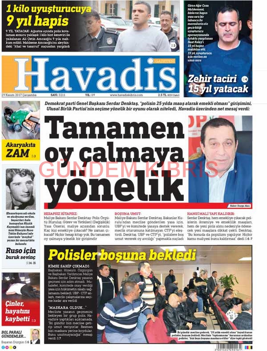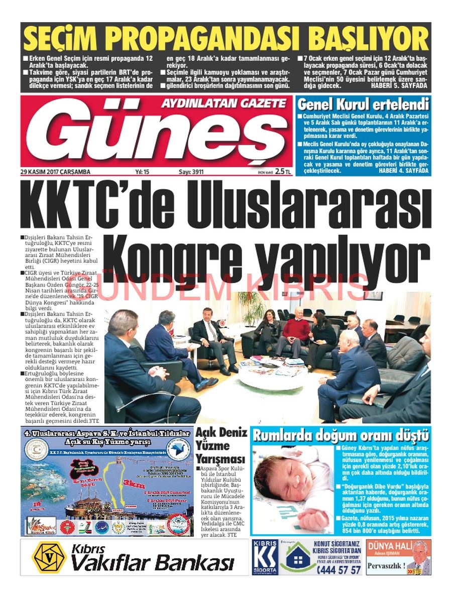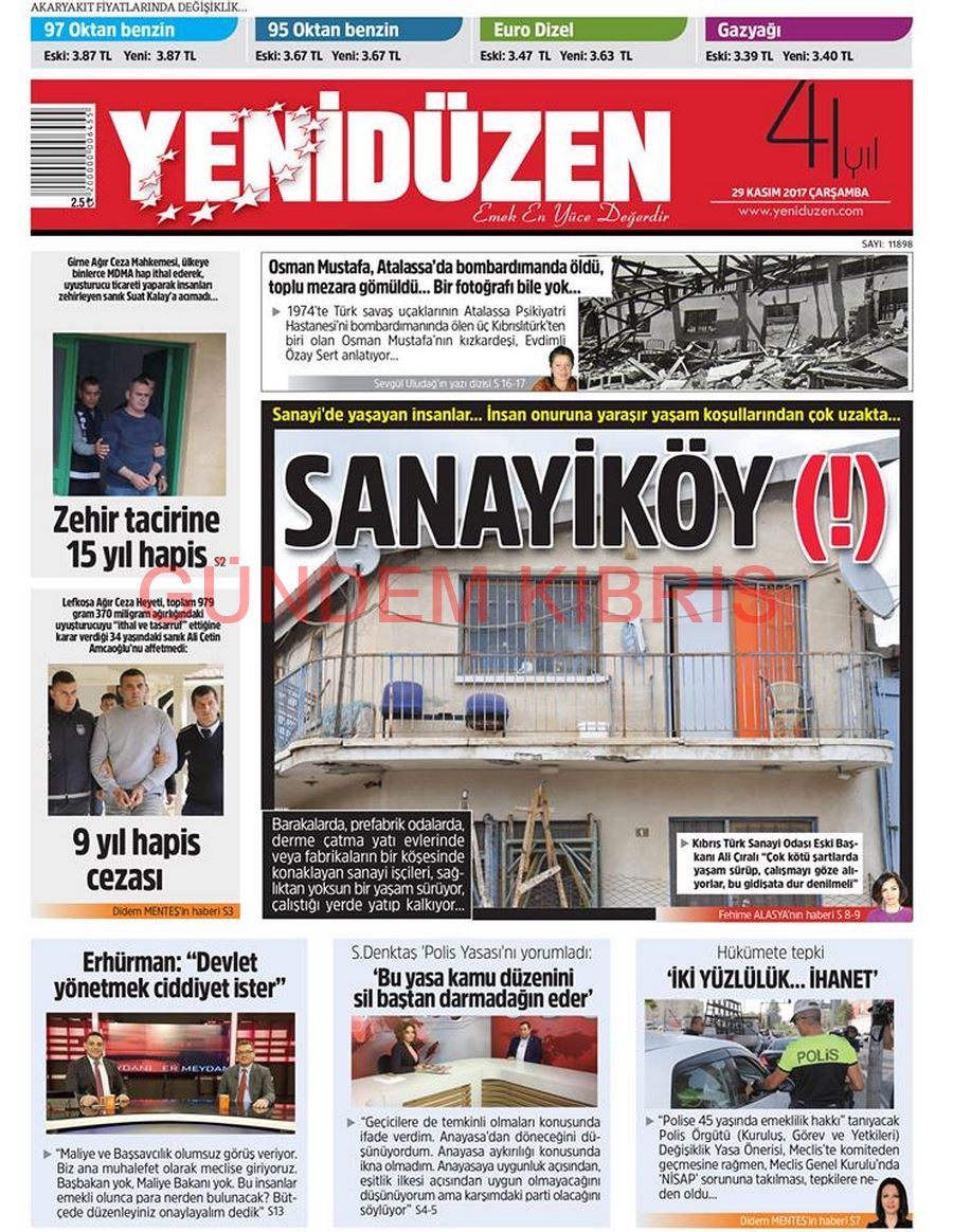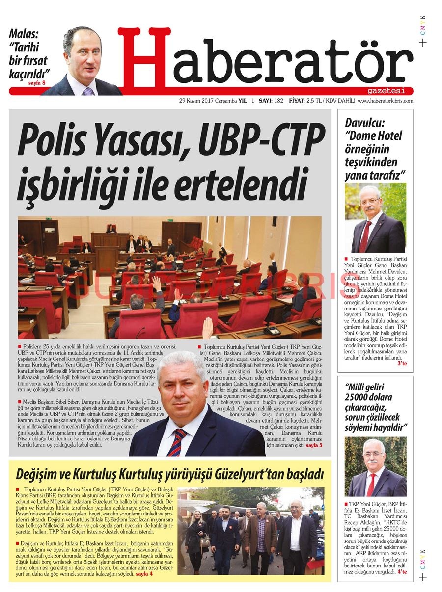 KKTC Gazete Manşetleri 29 Kasım 2017