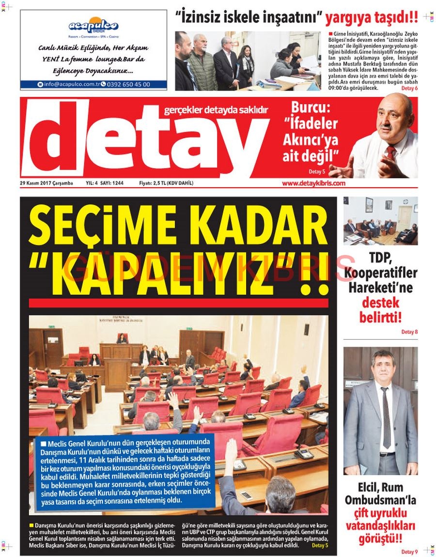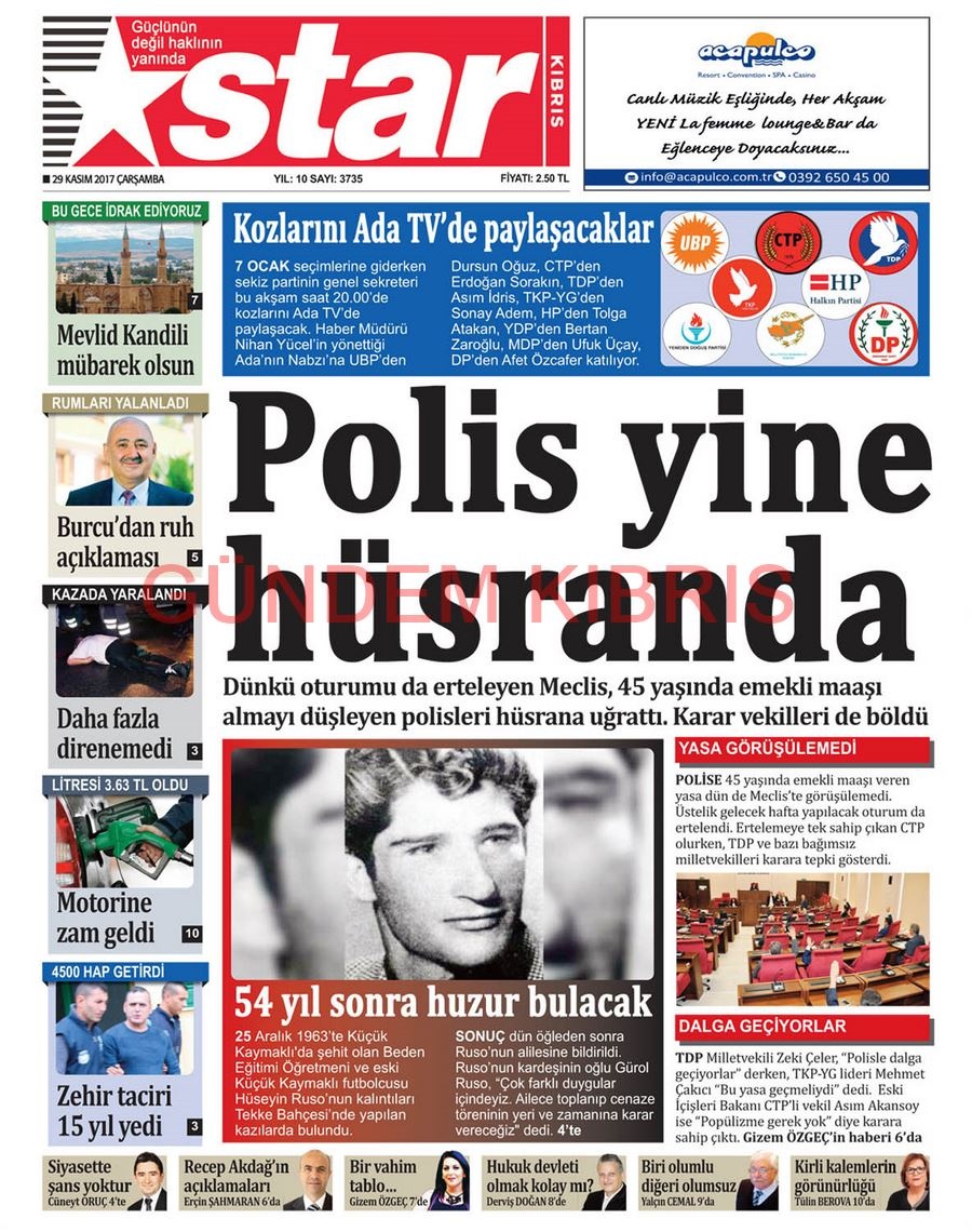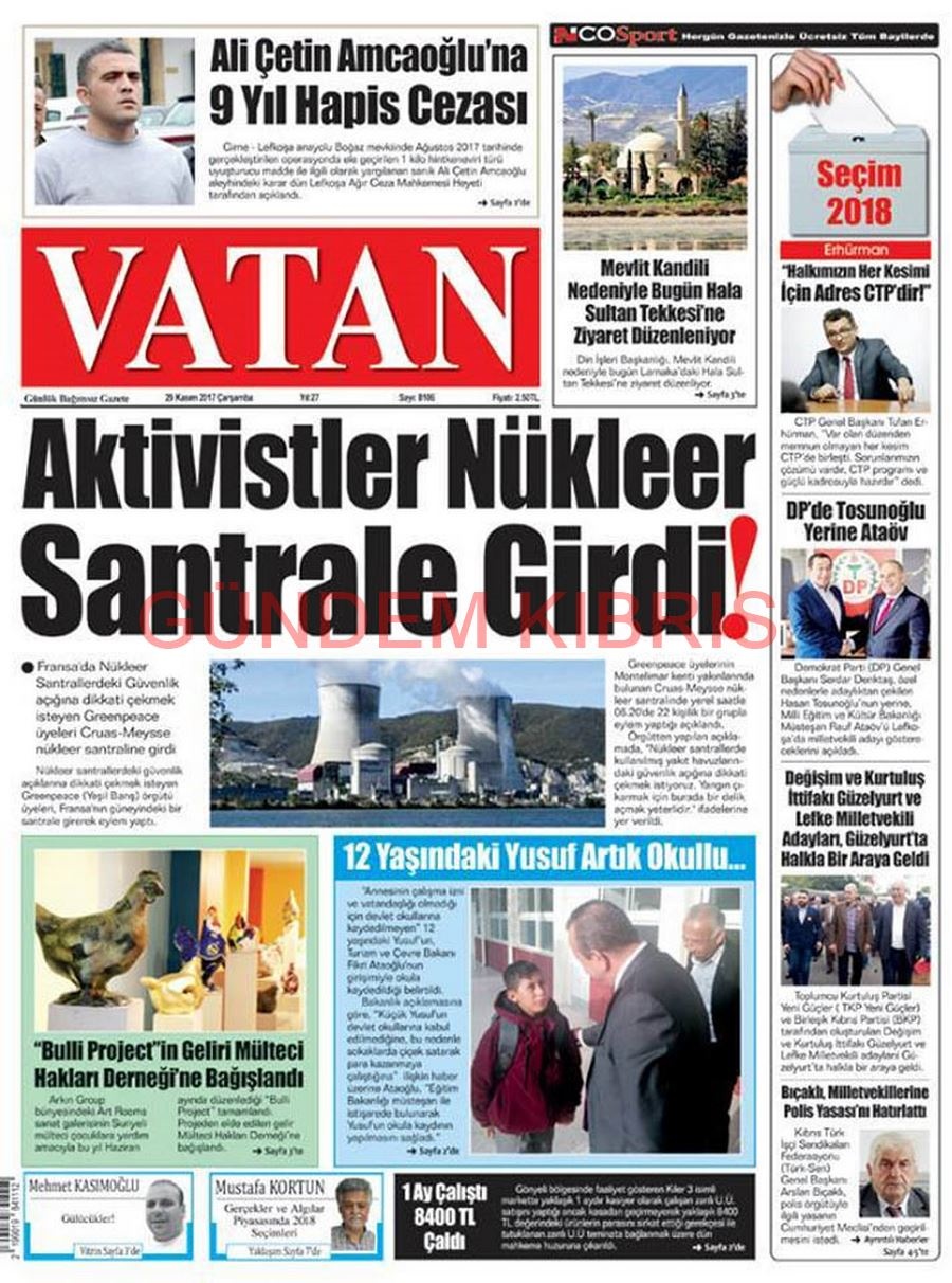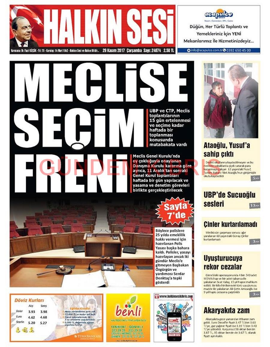 KKTC Gazete Manşetleri 29 Kasım 2017