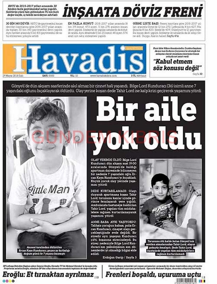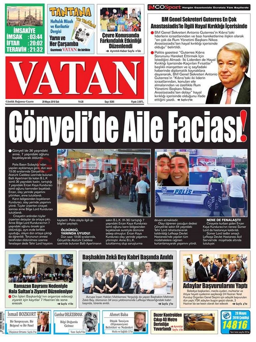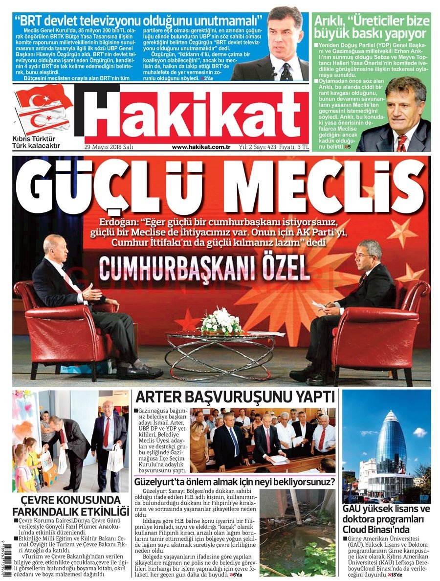 KKTC Gazete Manşetleri 29 Mayıs 2018