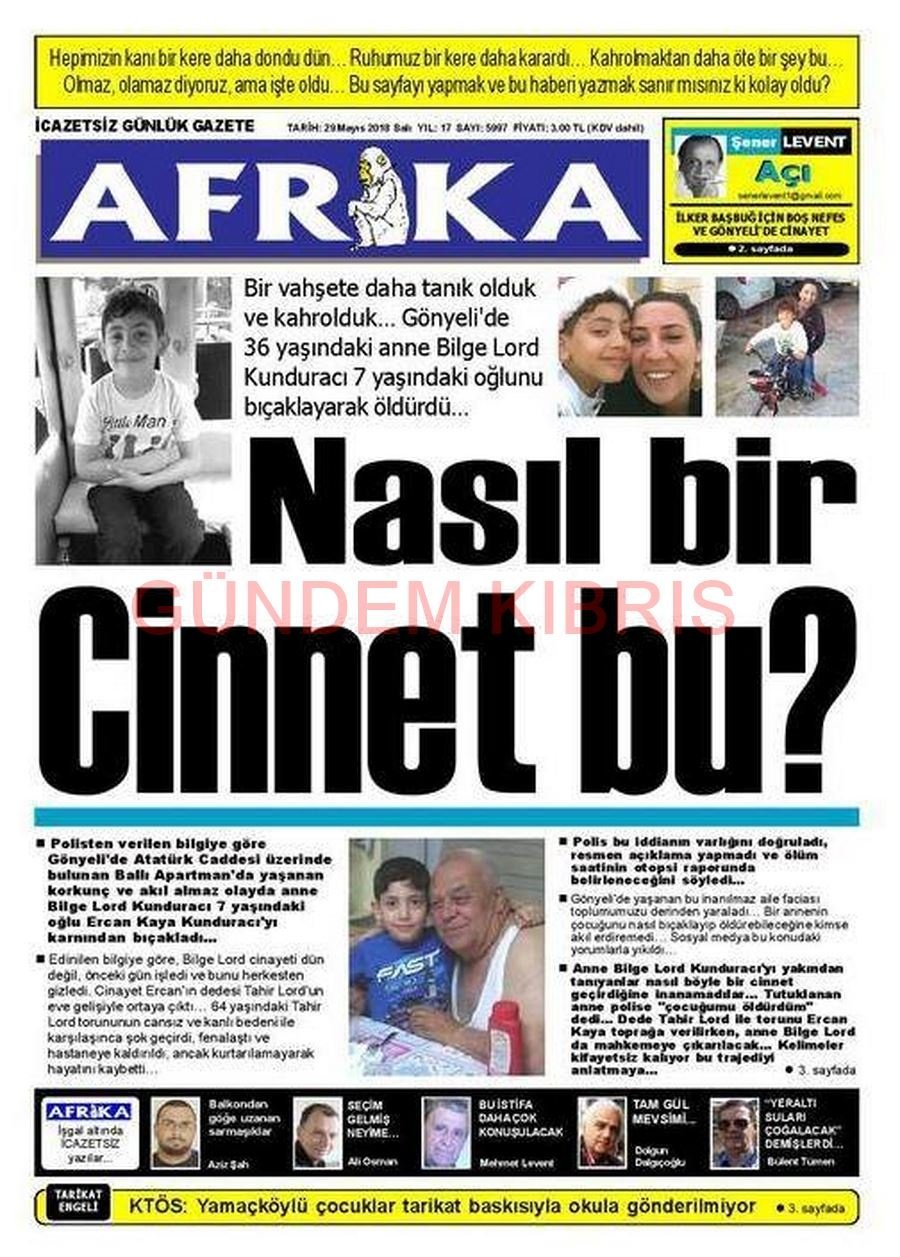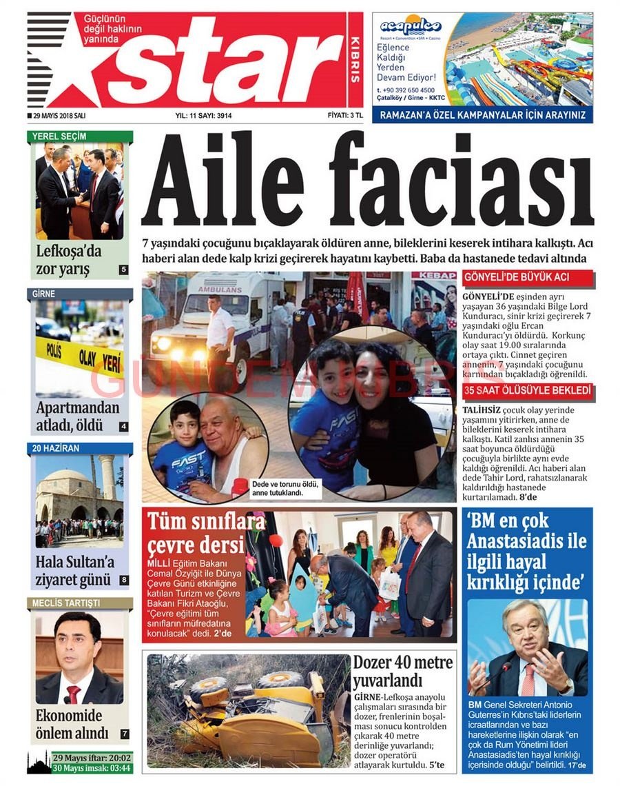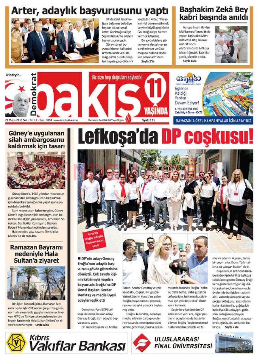 KKTC Gazete Manşetleri 29 Mayıs 2018