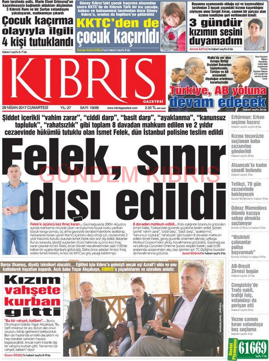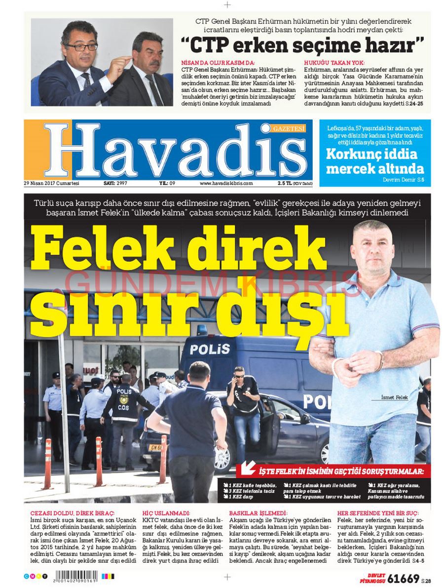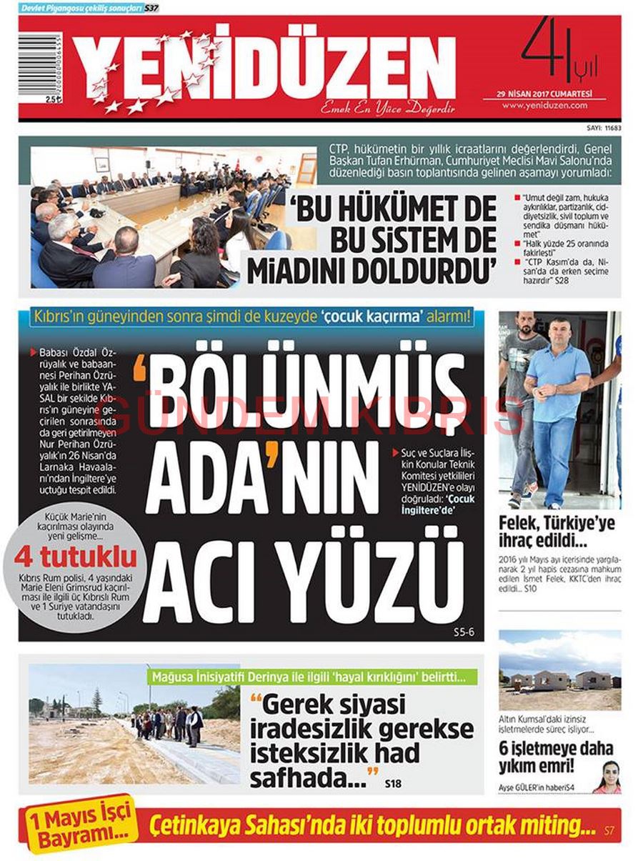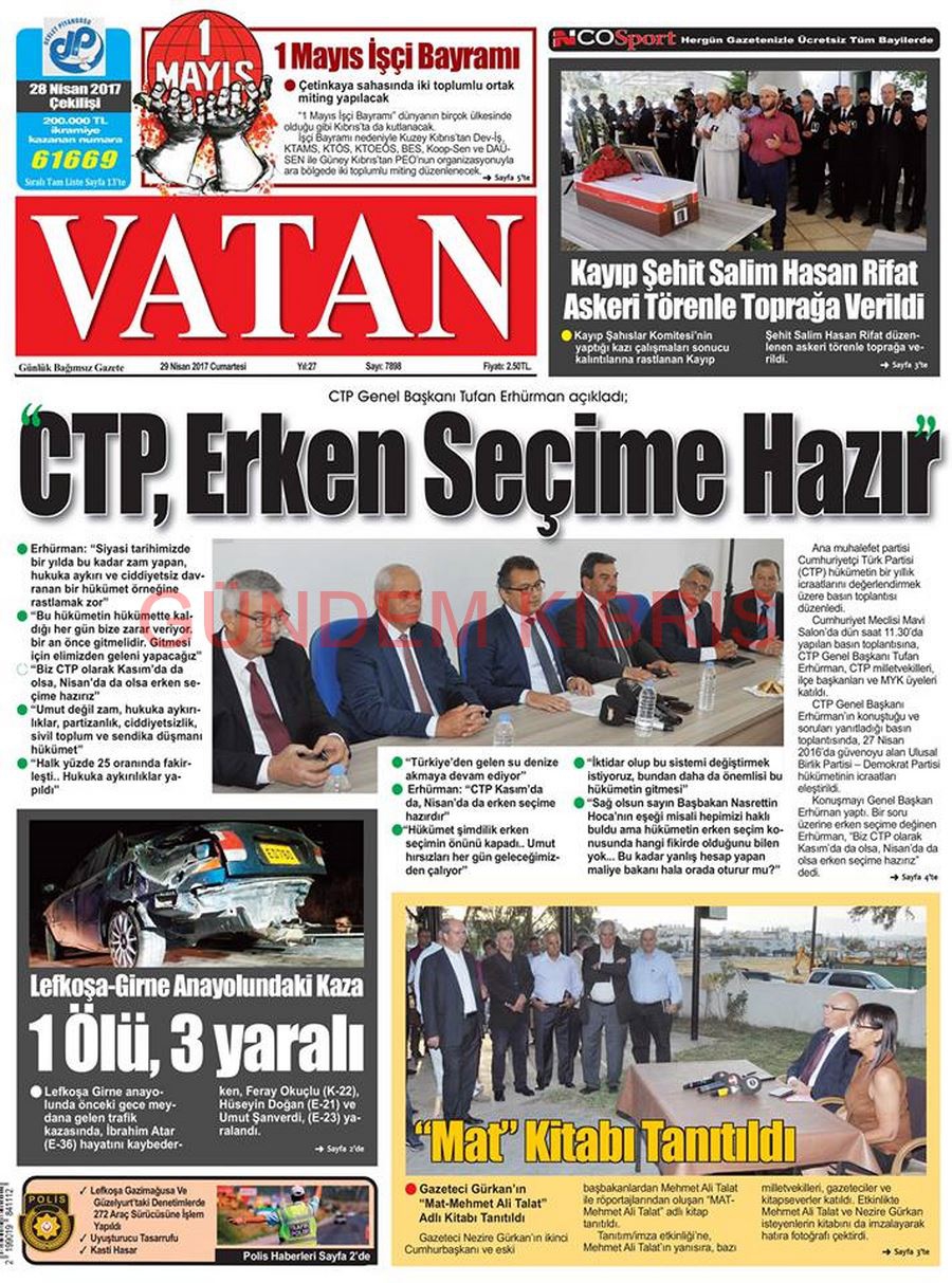 KKTC Gazete Manşetleri 29 Nisan 2017