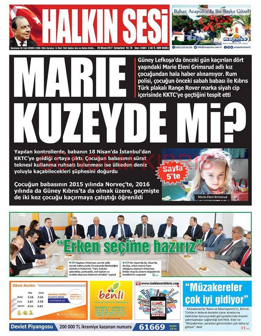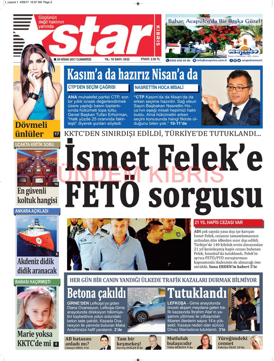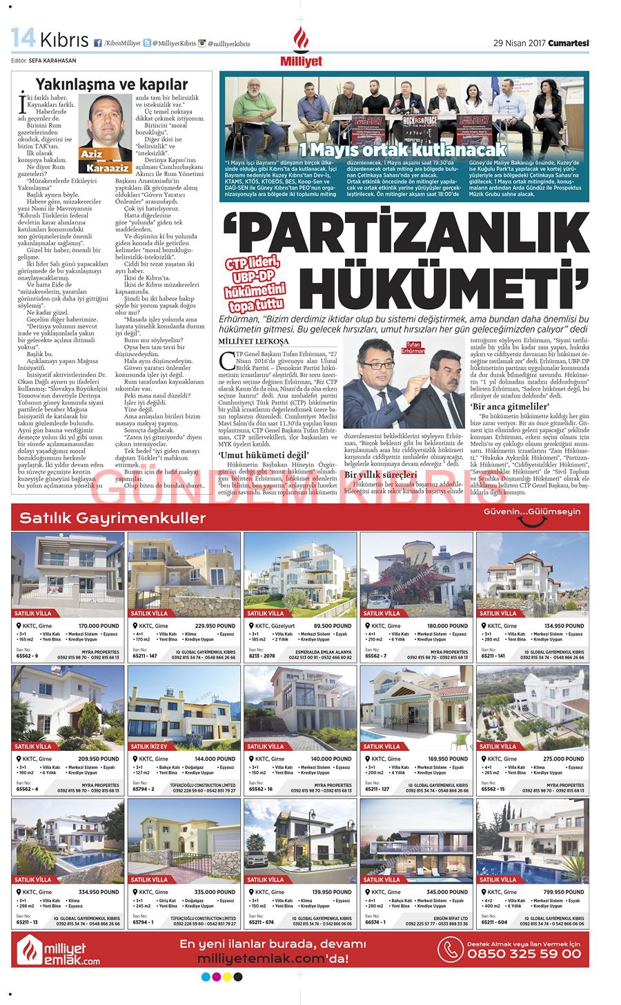 KKTC Gazete Manşetleri 29 Nisan 2017