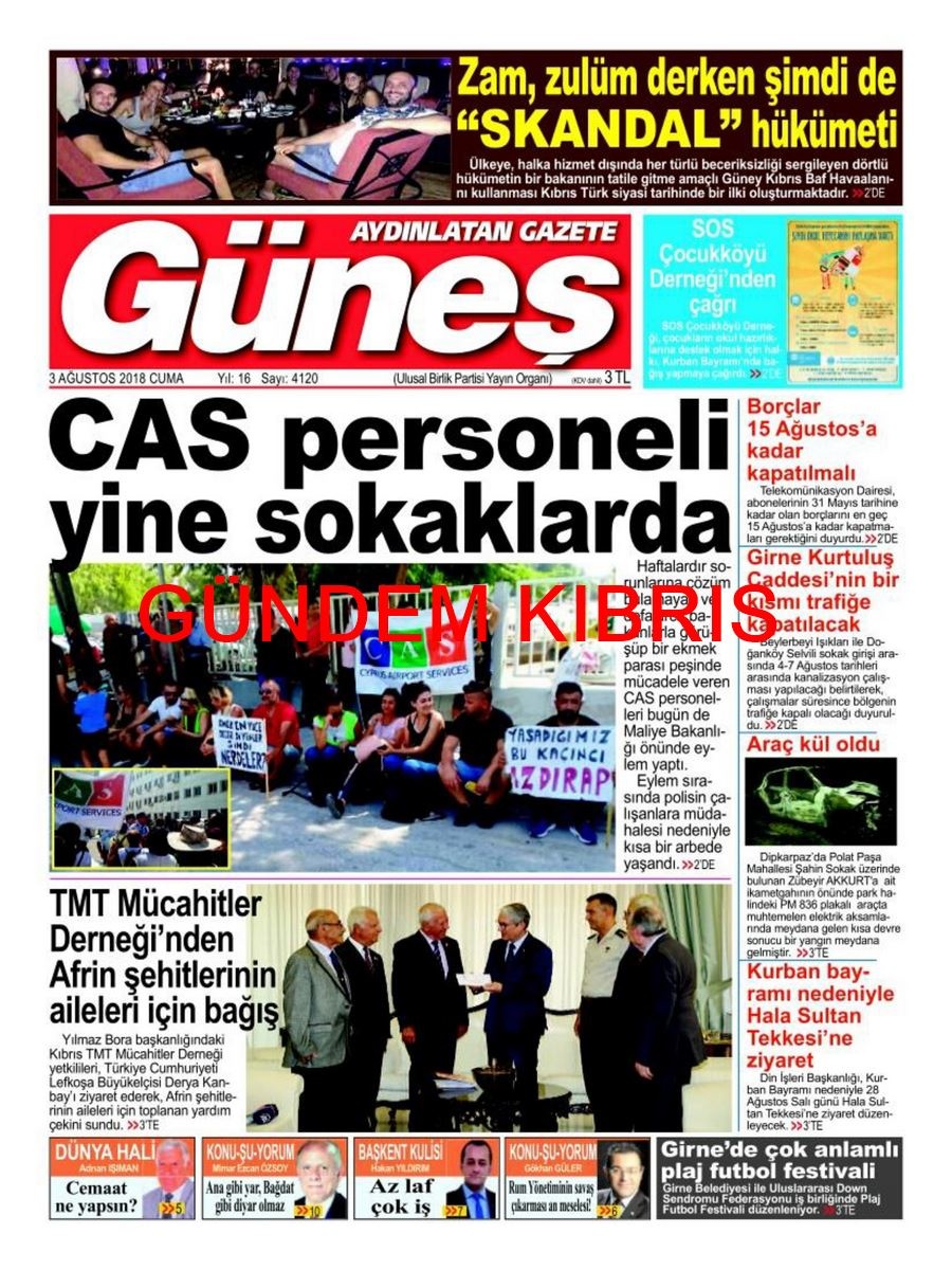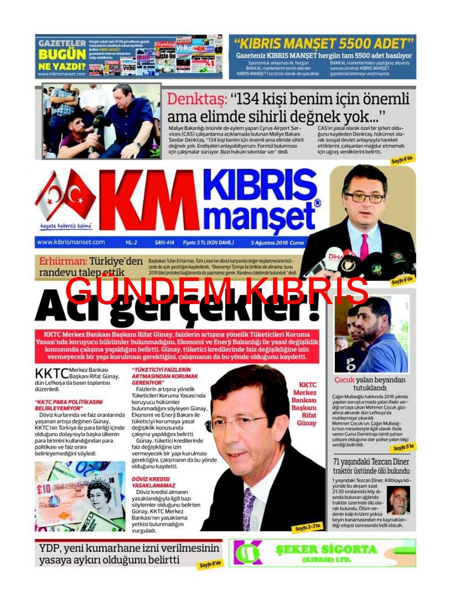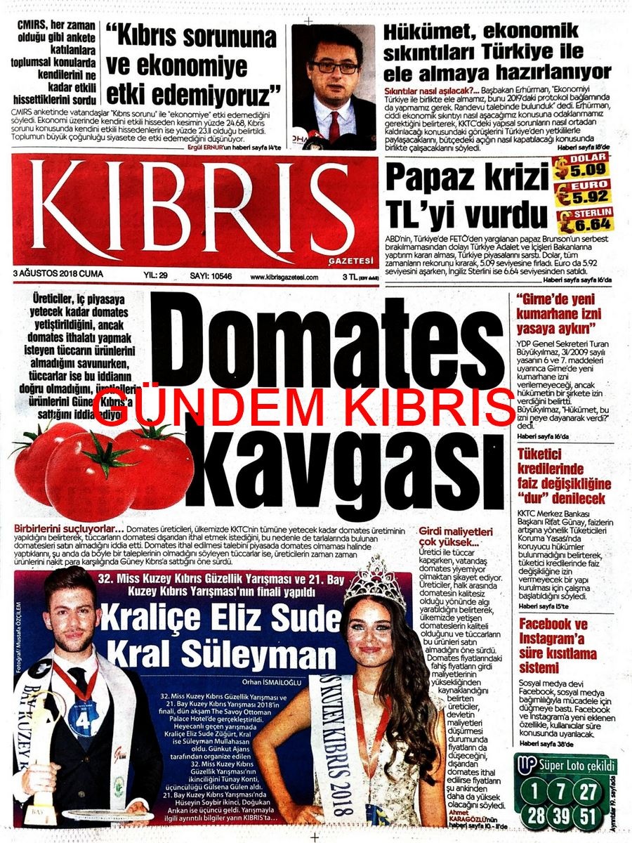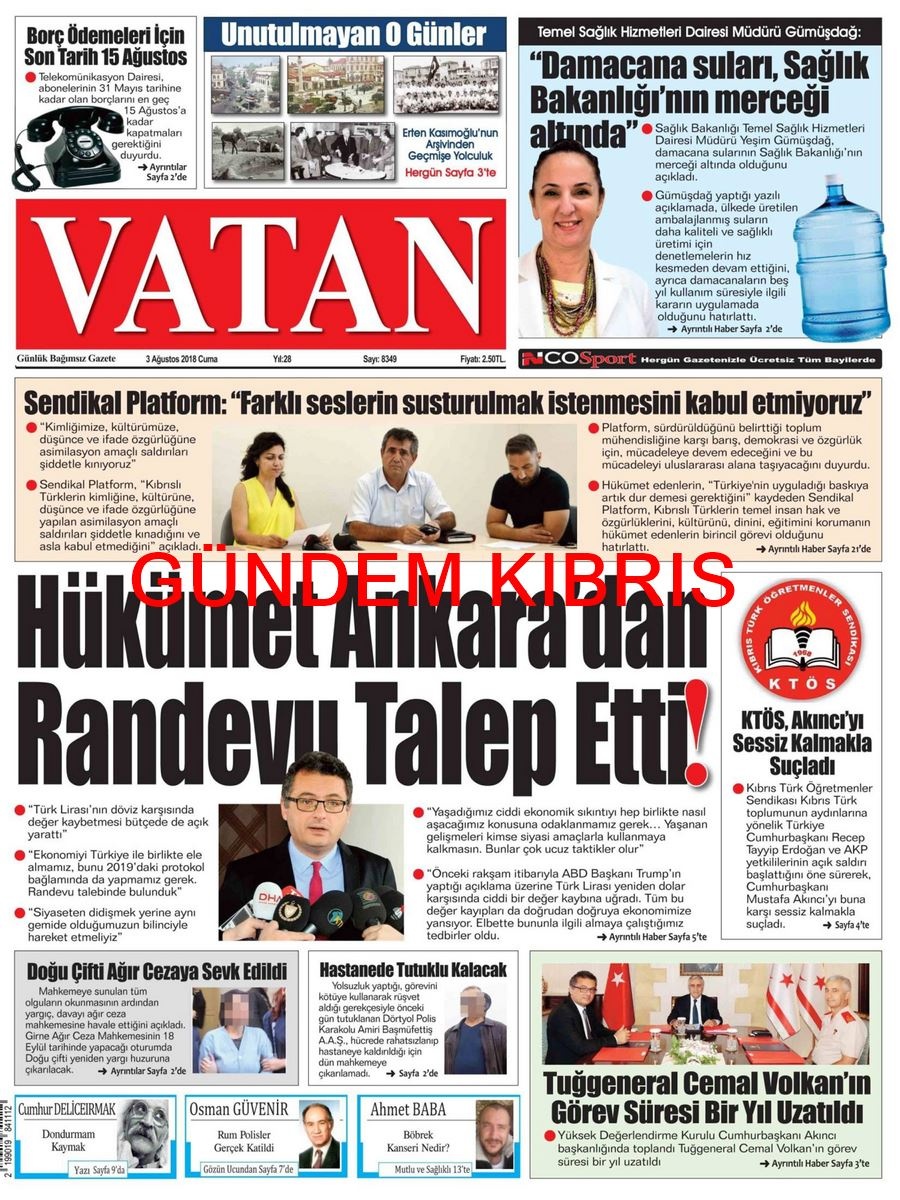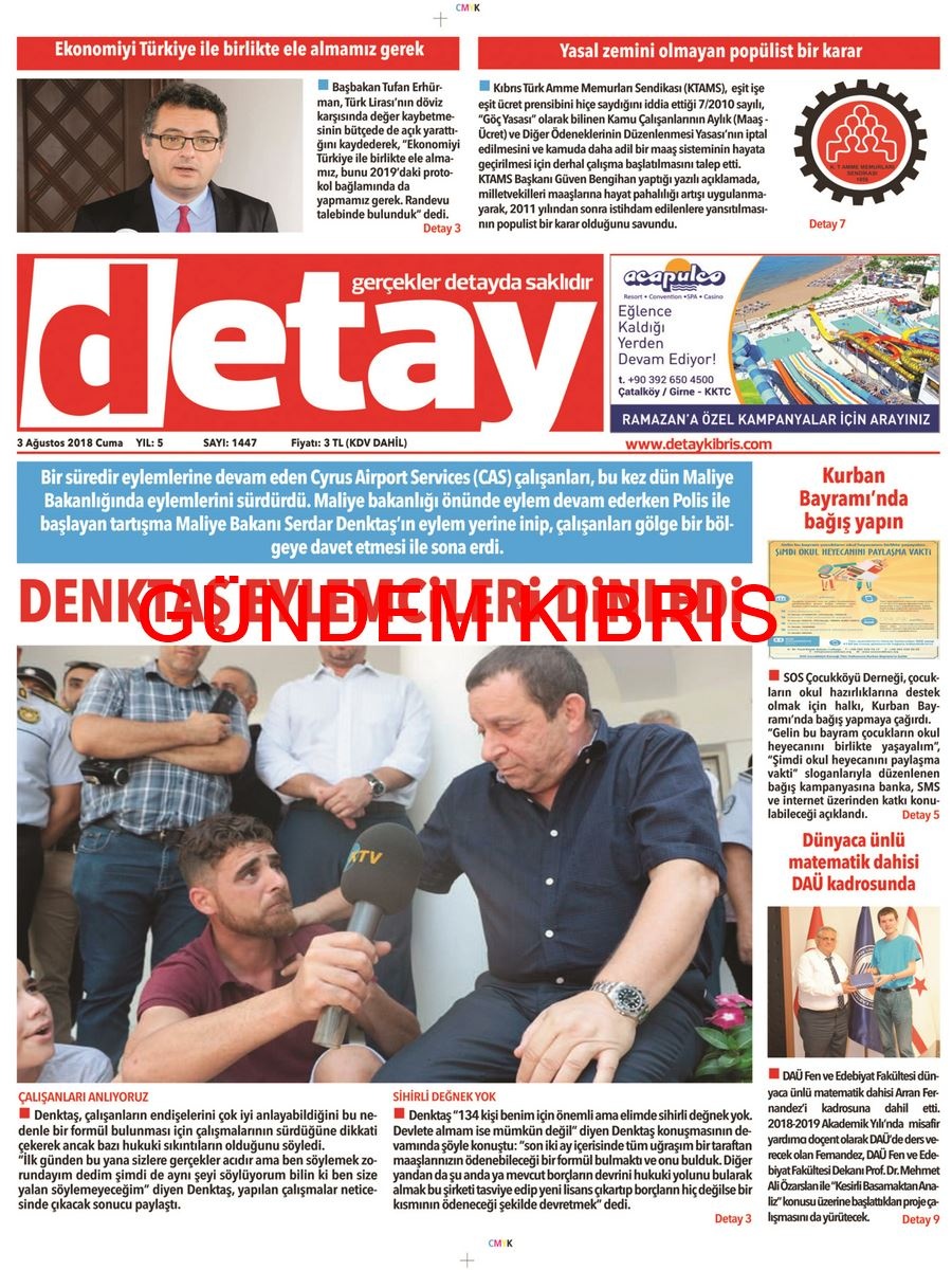 KKTC Gazete Manşetleri 3 Ağustos 2018