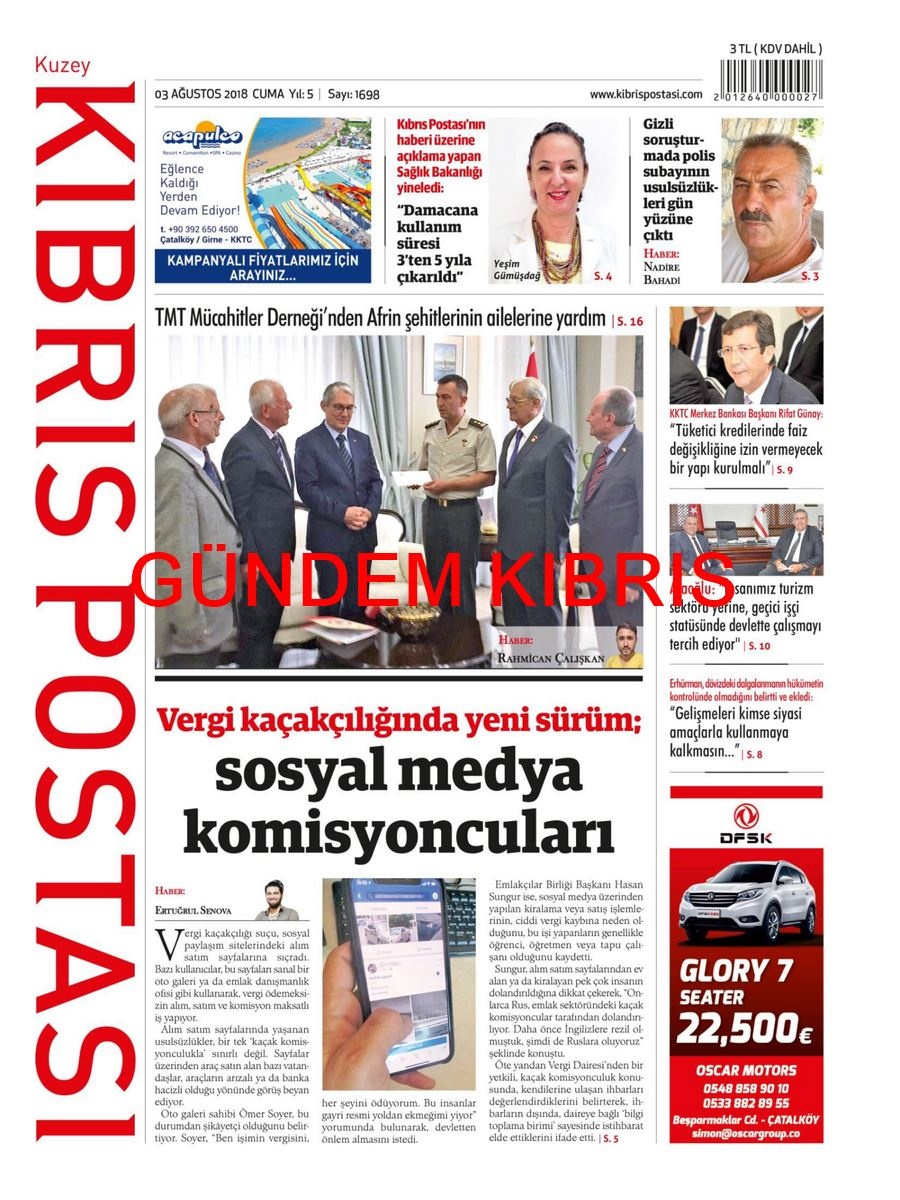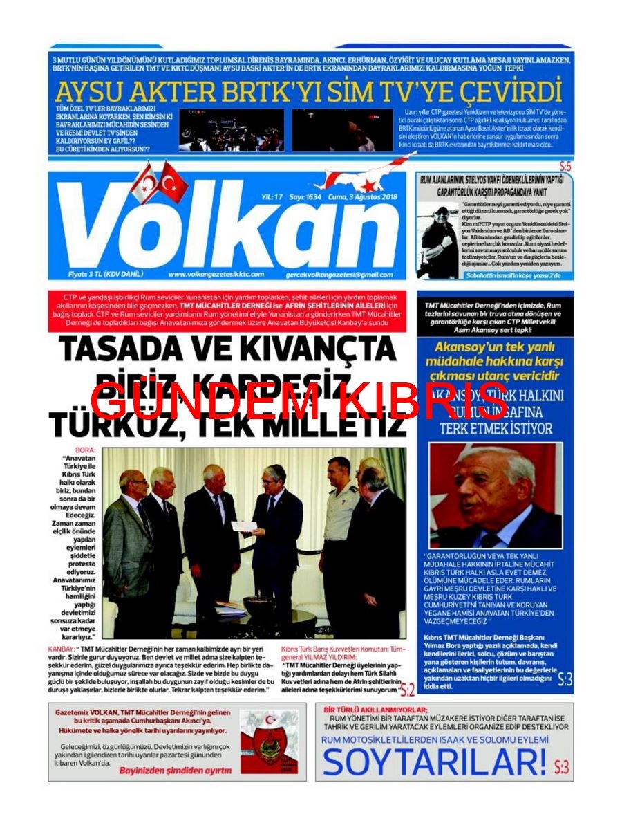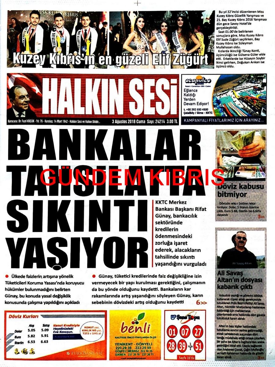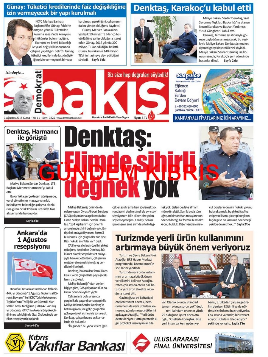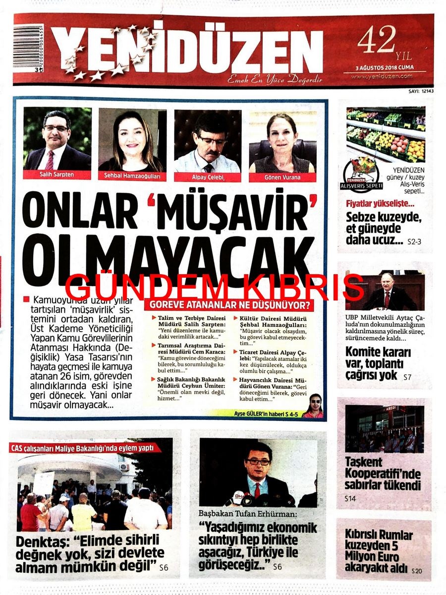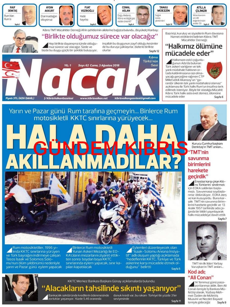 KKTC Gazete Manşetleri 3 Ağustos 2018
