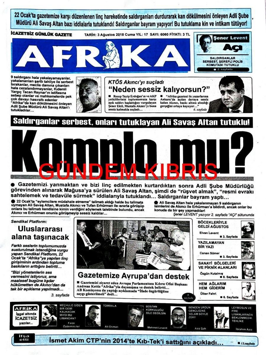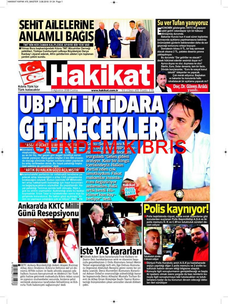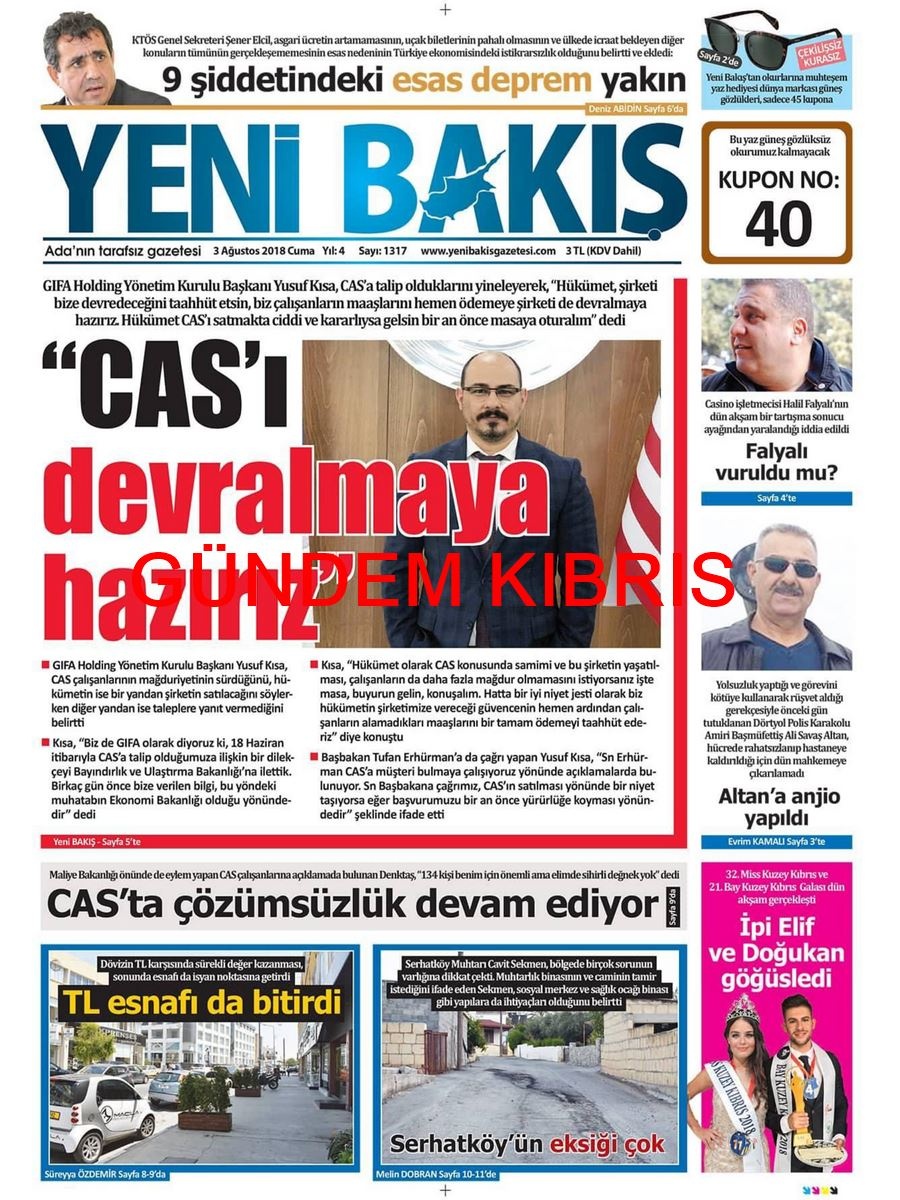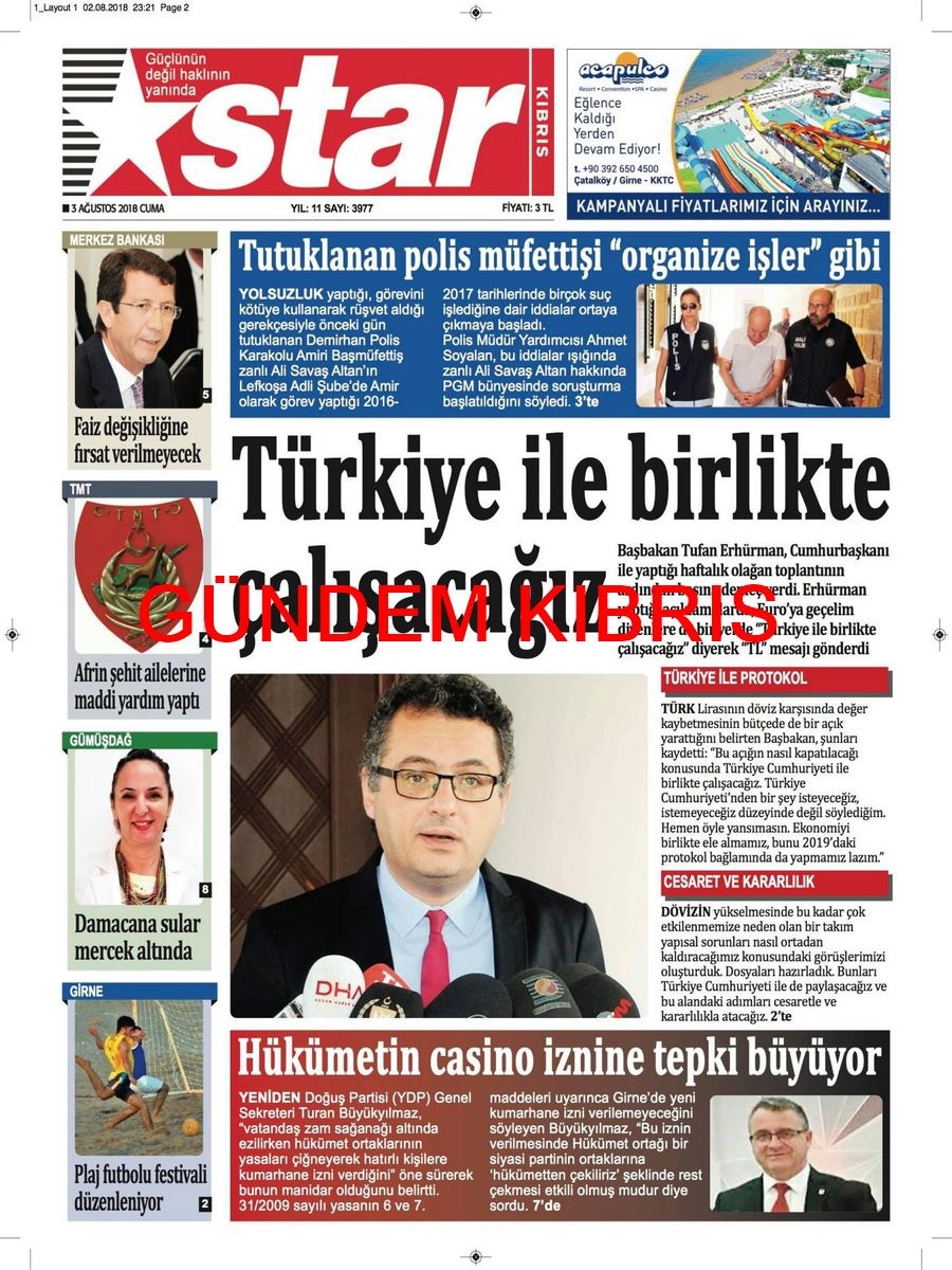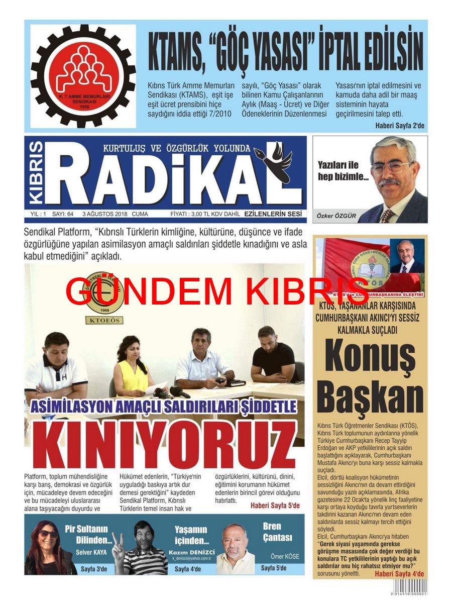 KKTC Gazete Manşetleri 3 Ağustos 2018