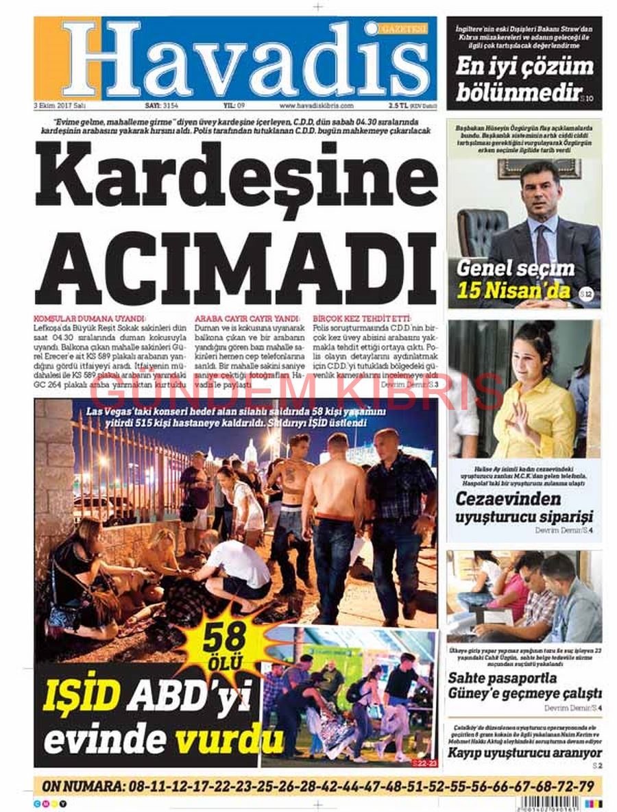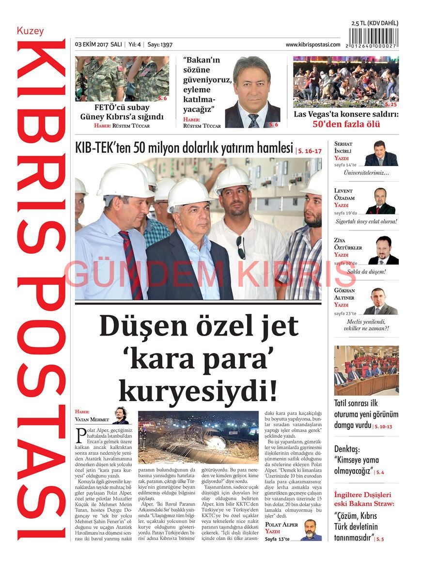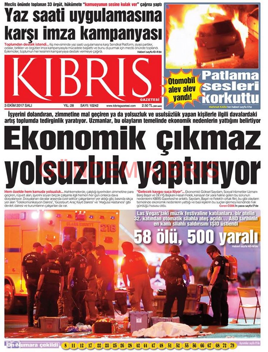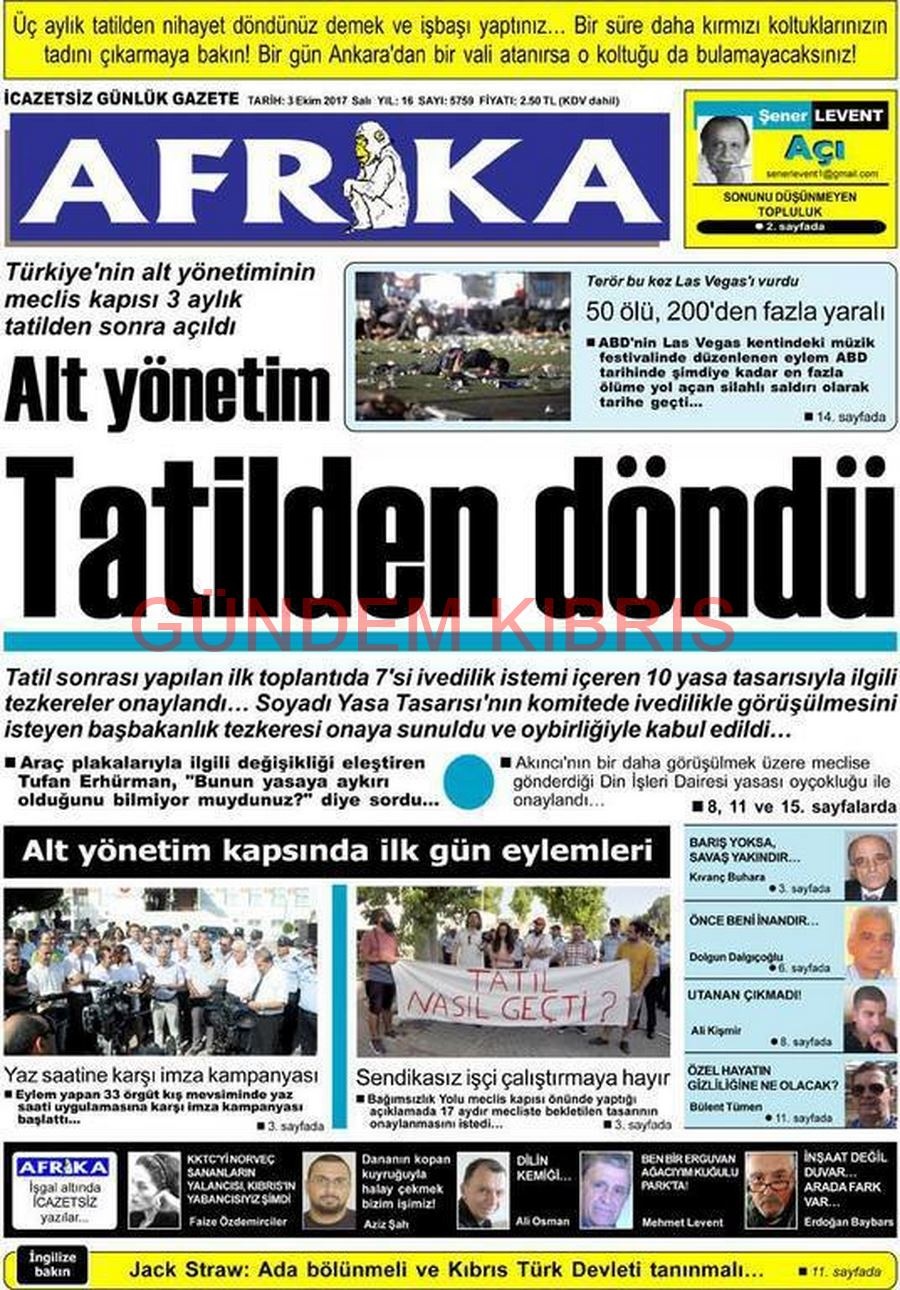 KKTC Gazete Manşetleri 3 Ekim 2017